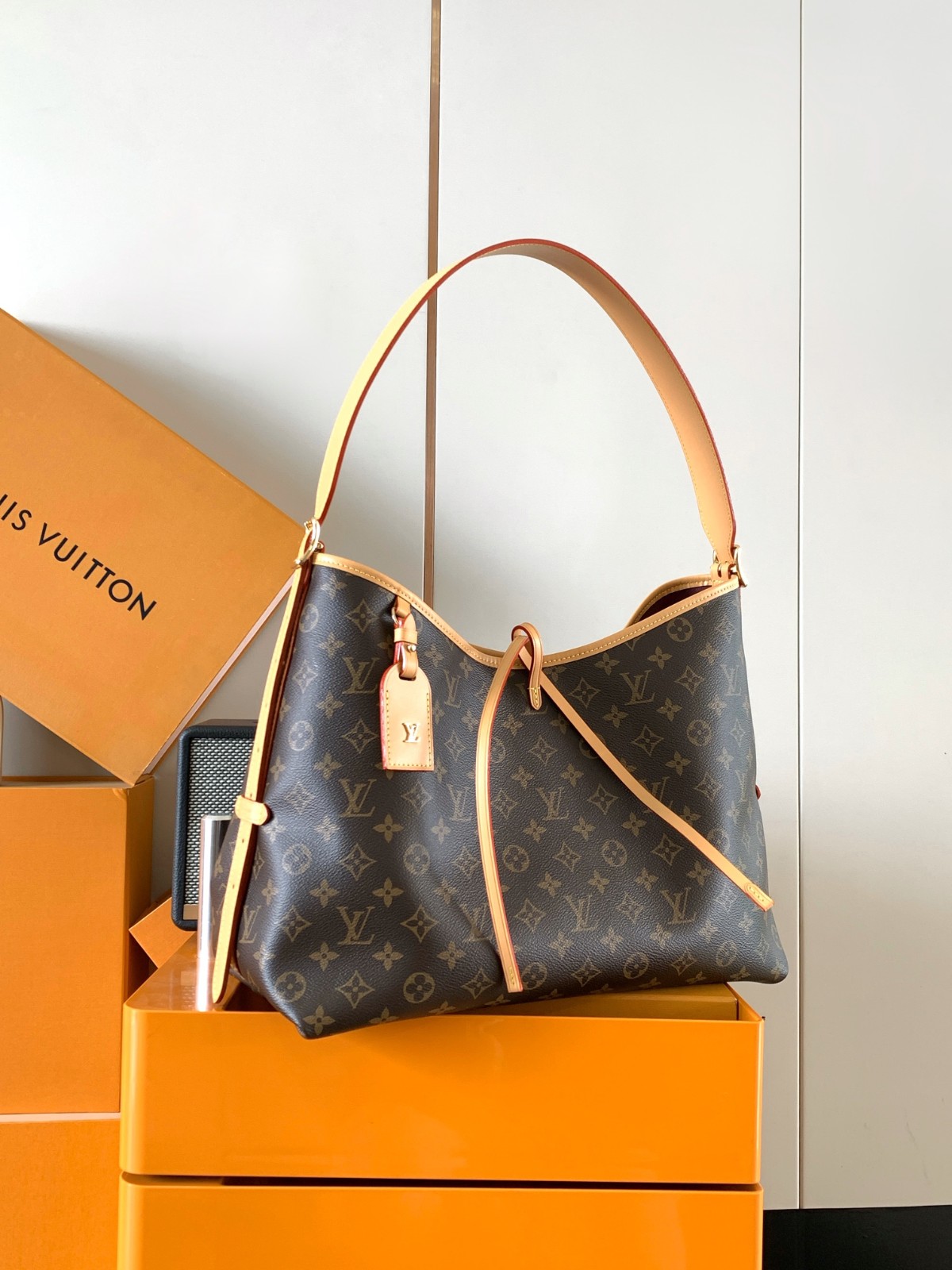 M46197 LV CARRYALL Medium Handbag Spacious interior with a zippered pocket, and a detachable zippered clutch adds more functional elements. The buckle allows adjustment of the handle length.30 x 15 x 39 cm