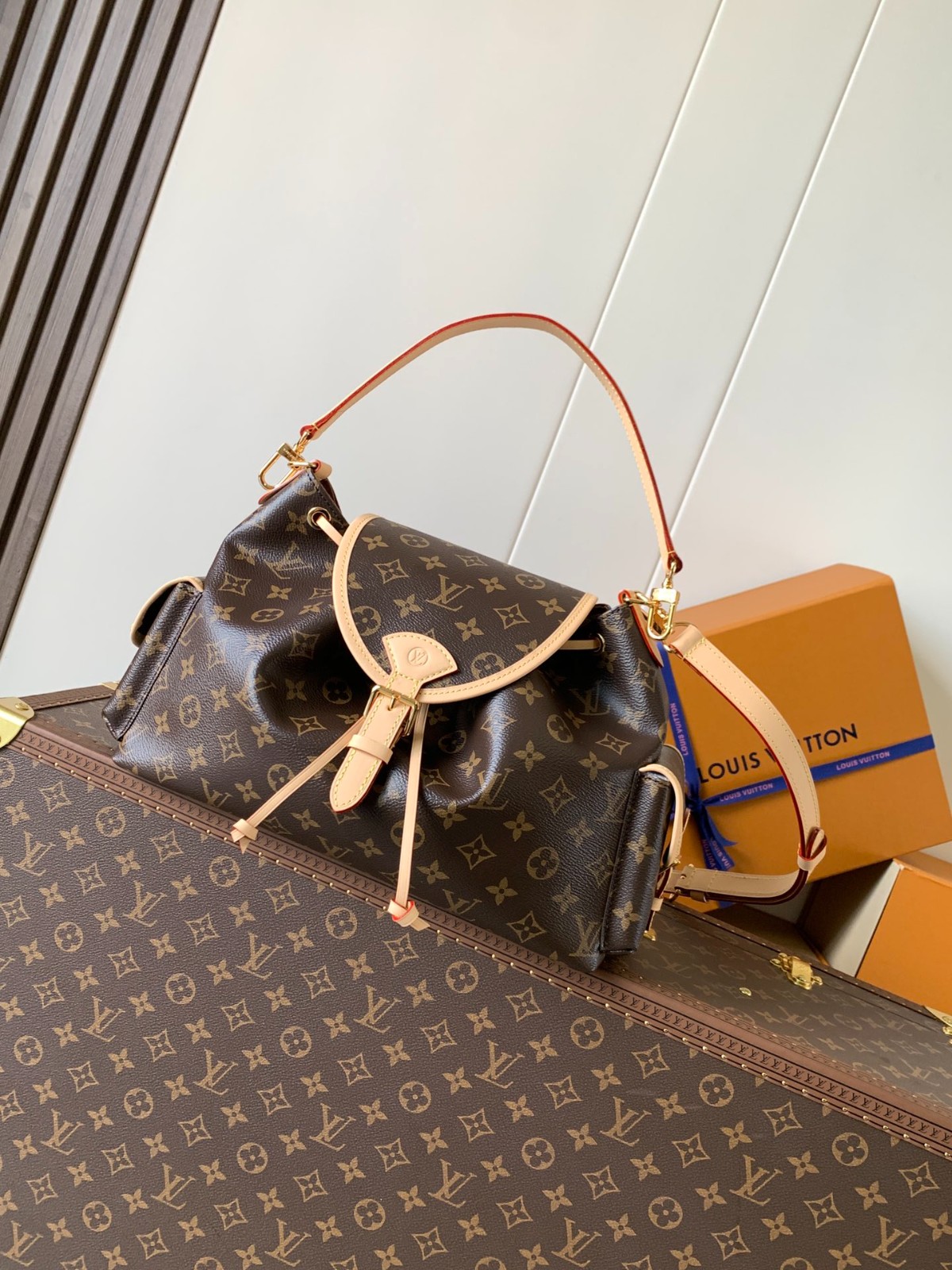LV new style M26040 ODYSSEE medium-sized handbag features a classic design and a casual style that fits an active lifestyle. Its design is inspired by the brand's Excursion backpack, adorned with decorative buckles and practical drawstrings to ensure secure storage of personal items. The suitable capacity easily accommodates daily necessities and is equipped with multiple pockets. Its name is derived from the homecoming journey of Ulysses in the ancient Greek epic *The Odyssey*, echoing the narrative theme of the 2025 Autumn/Winter fashion show. 36.0 x 24.0 x 18.0 cm