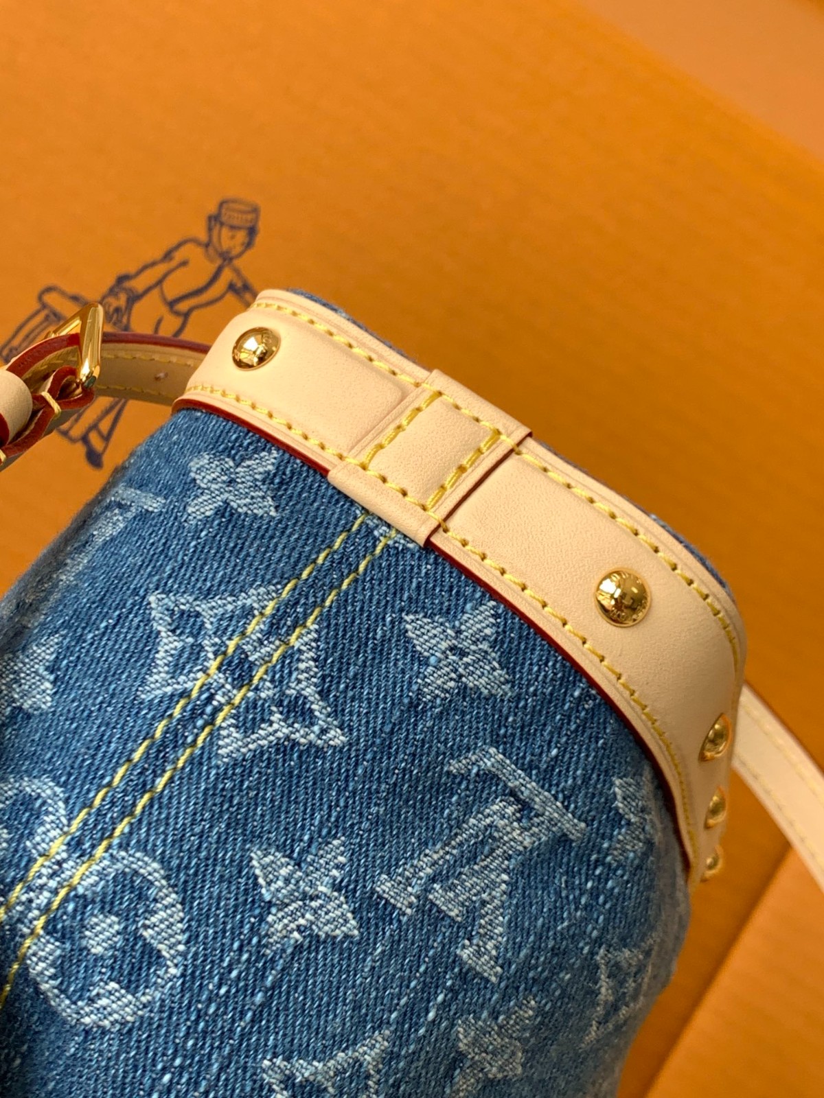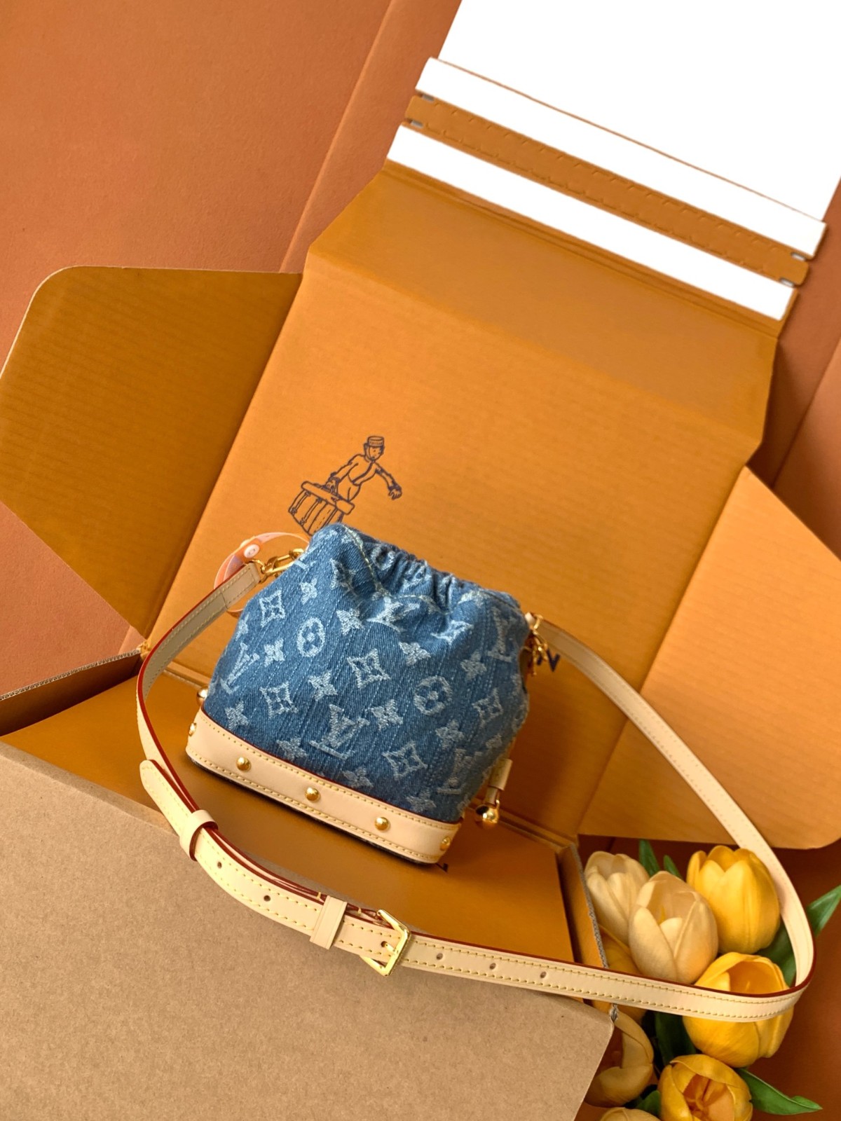 LV new handbag M83043 NANO NOÉ, a denim bucket bag.