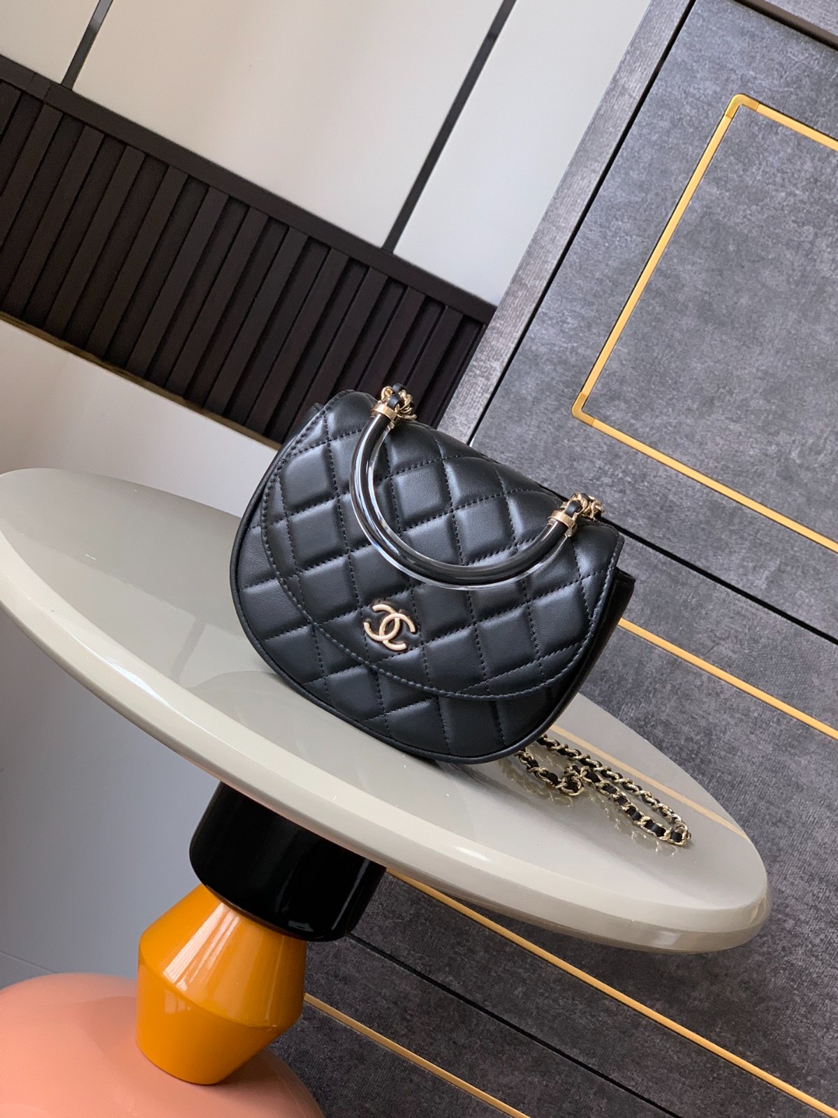CHANEL new style 25c early spring new chain clutch bag This exquisite and compact handbag, carried in the hand, exudes a full sense of elegance like a socialite. Made of lambskin, it is soft, delicate, elegant and textured. The handle is made of resin, which is very stain-resistant and easy to maintain. ✓ It can hold a mobile phone and a card holder, with incomparable beauty. Size: 14x16x6.5cm
