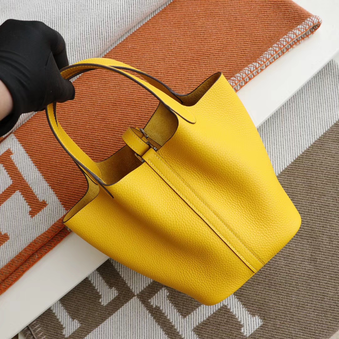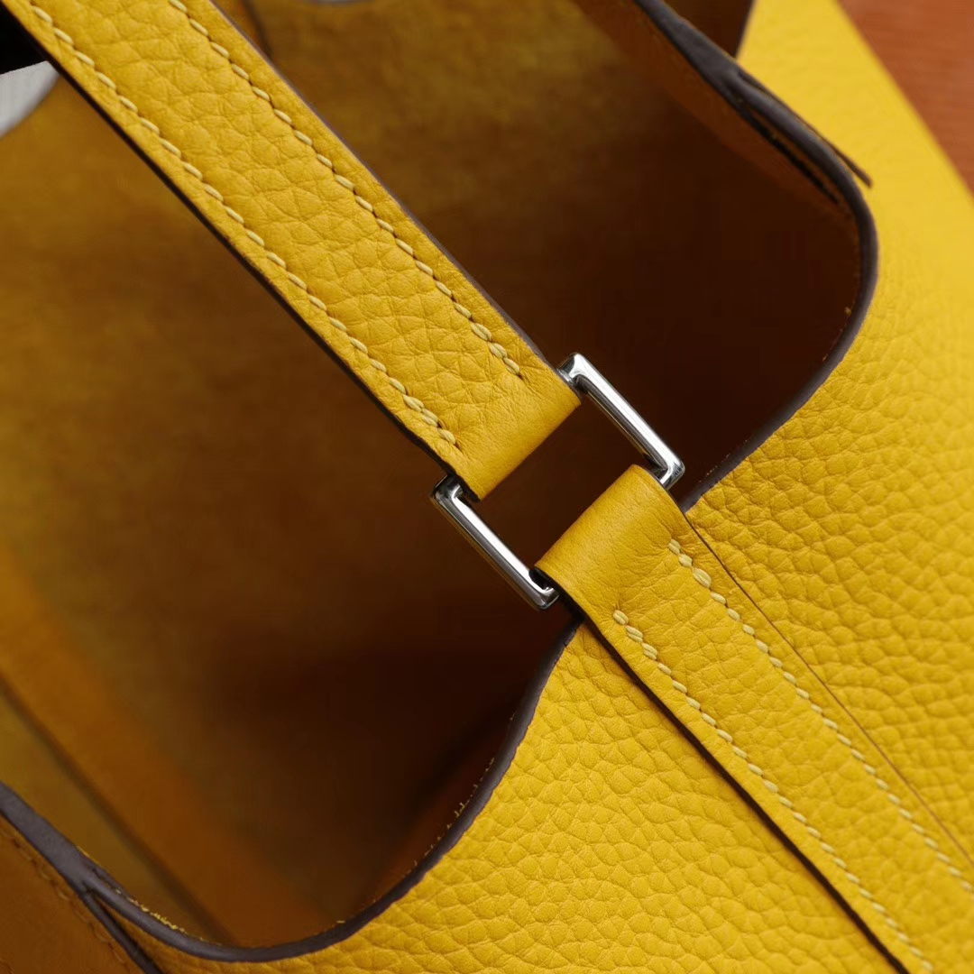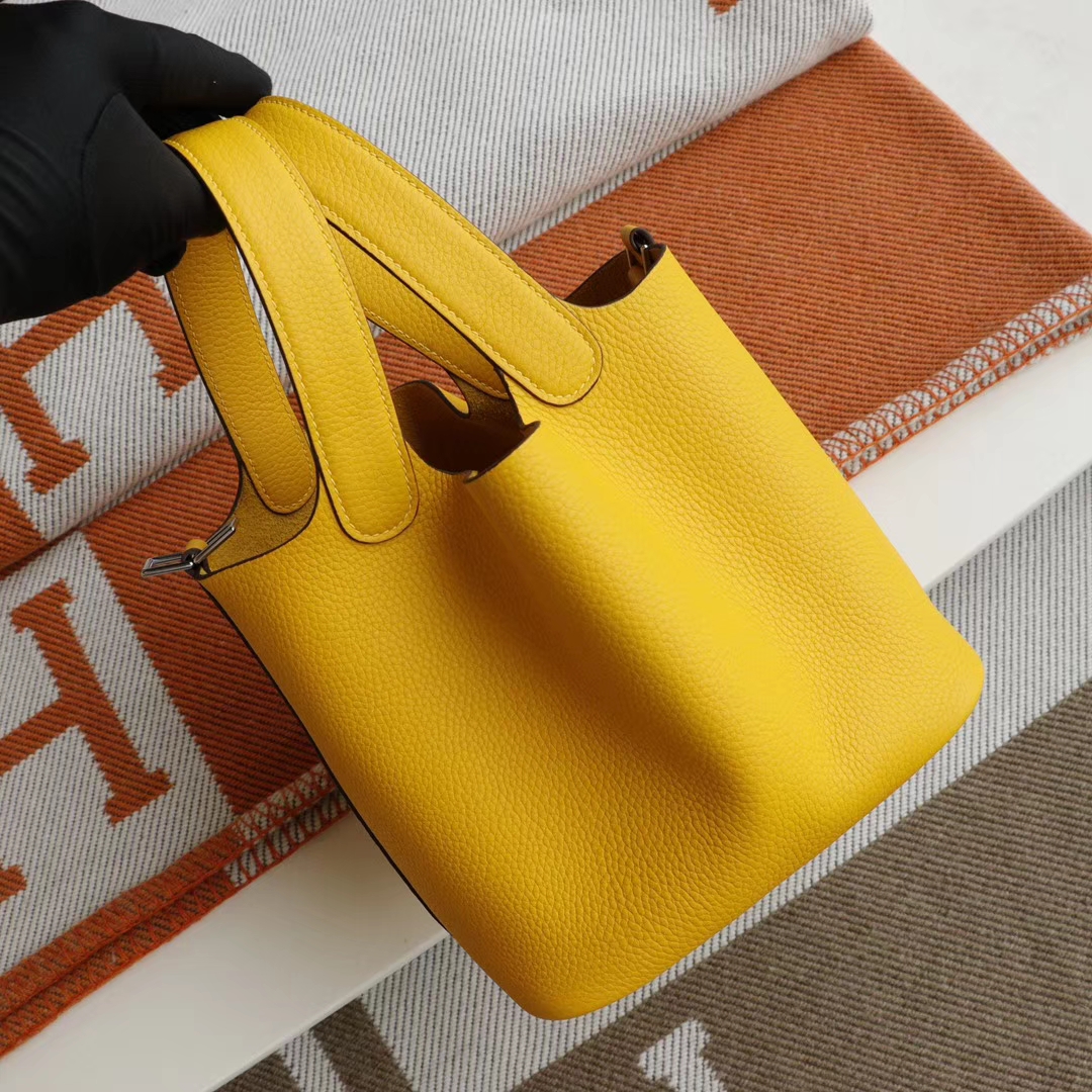 Hermès 9D Amber Yellow with Silver Hardware Picotin Lock 18CM Shopping Bag, made of original factory TC leather and purely hand-stitched