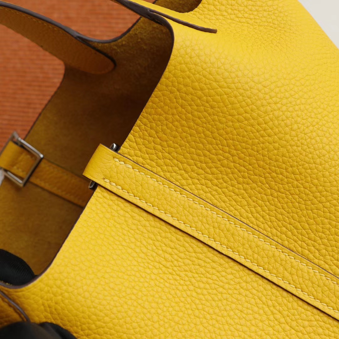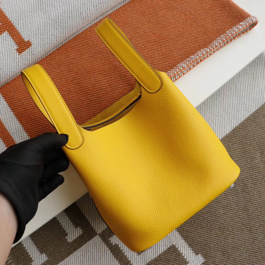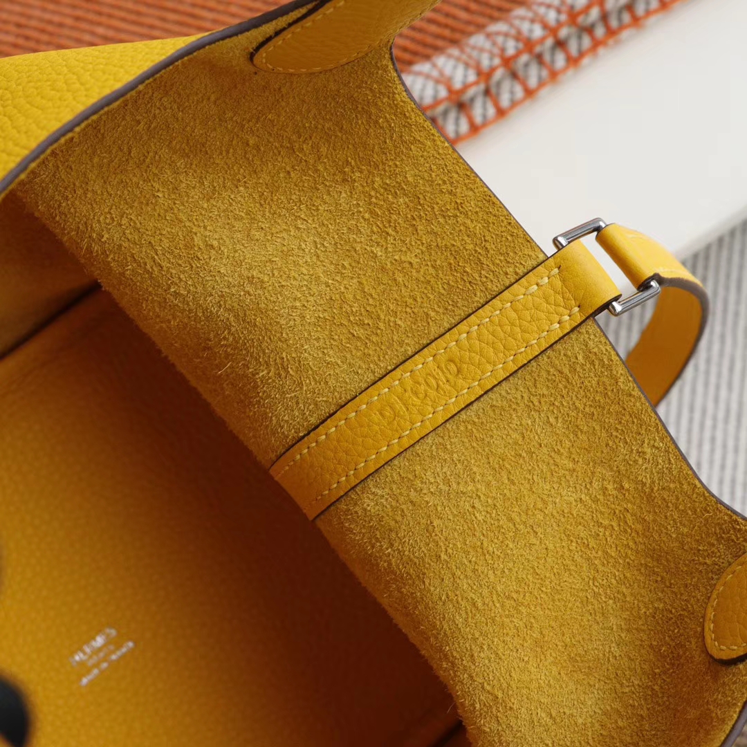 Hermès 9D Amber Yellow with Silver Hardware Picotin Lock 18CM Shopping Bag, made of original factory TC leather and purely hand-stitched