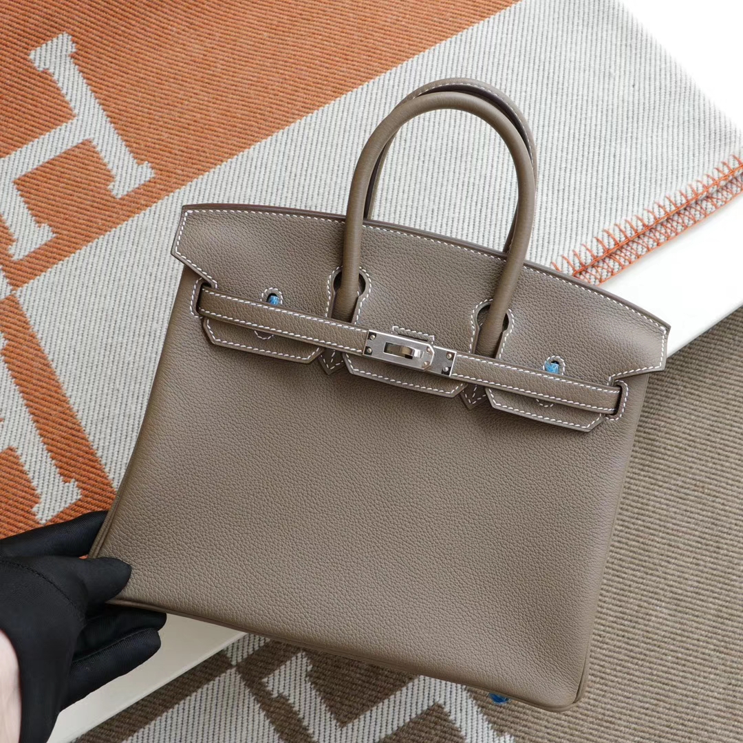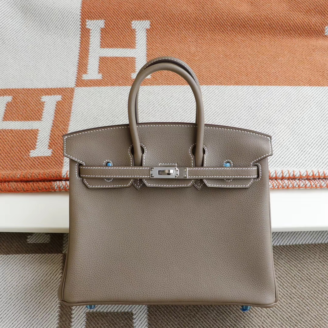 Guangzhou Baiyun Leather Goods City, Hermès, Elephant Grey, Silver Hardware, Birkin 25CM, Togo Calfskin, Hand-stitched