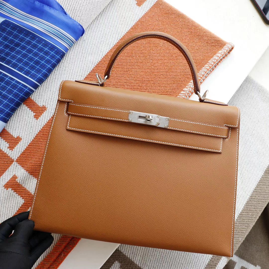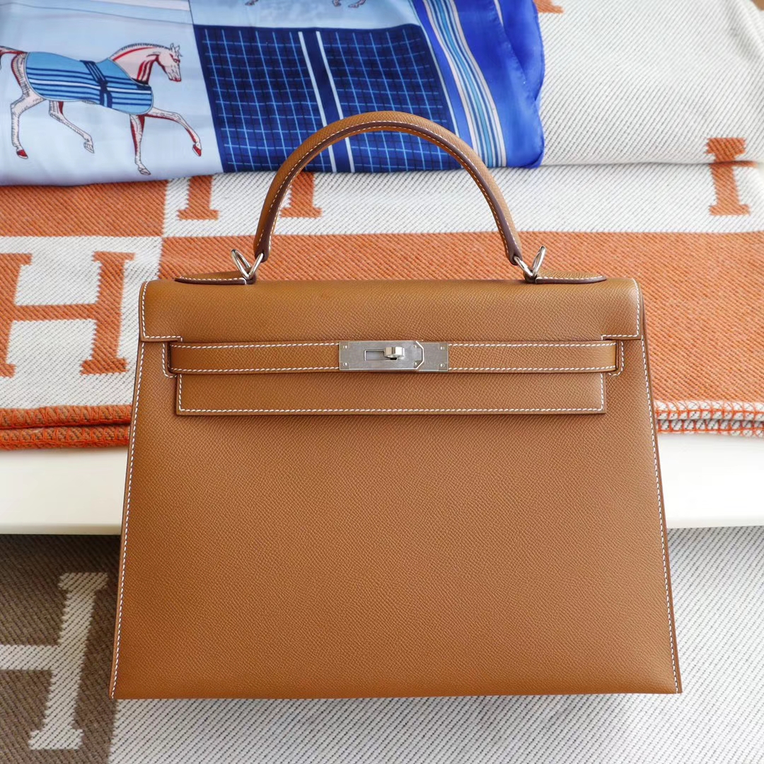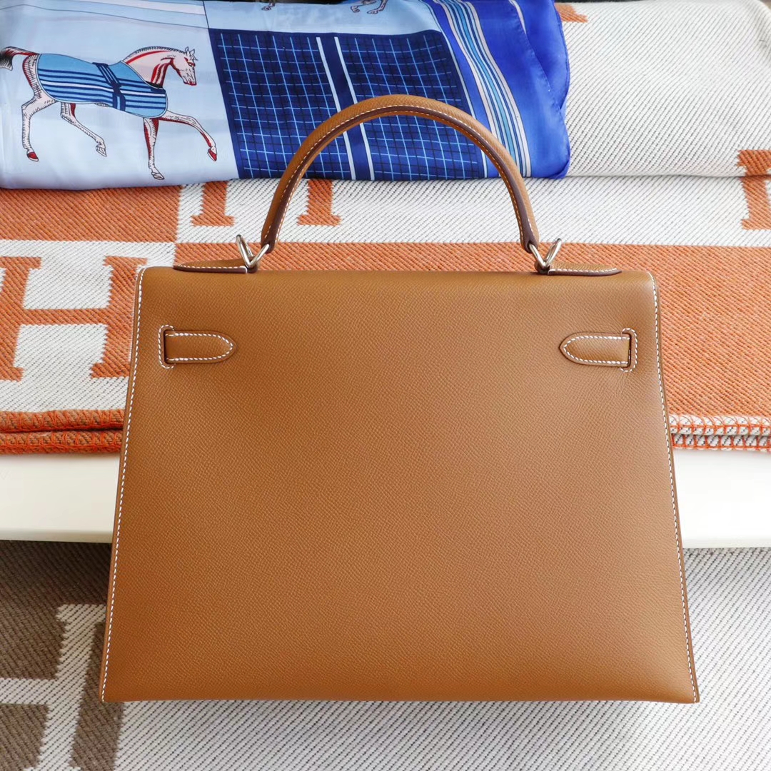 Guangzhou Leather Goods City, Hermès, Golden Brown Kelly 35CM, original factory Epsom leather, Kelly bag, hand-sewn