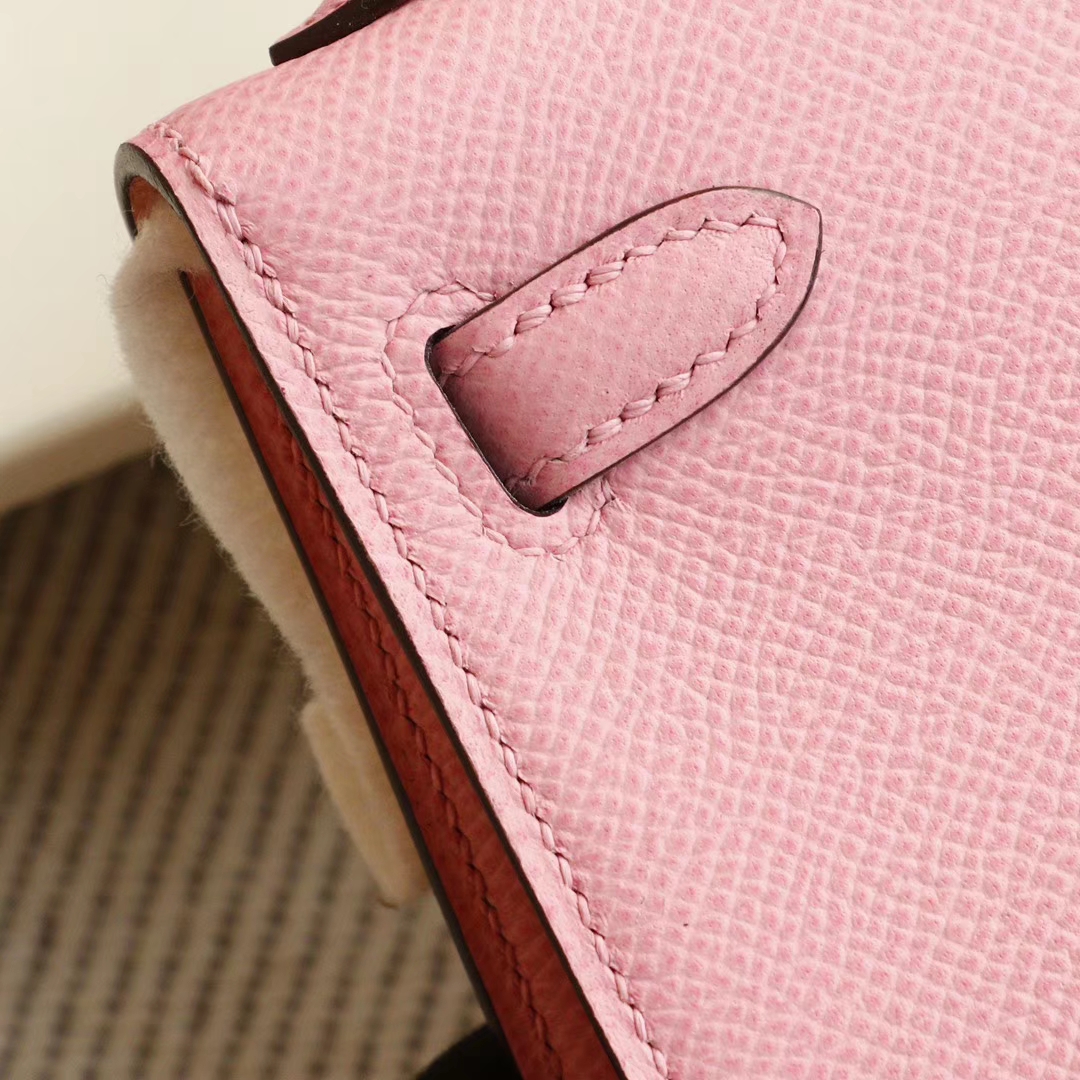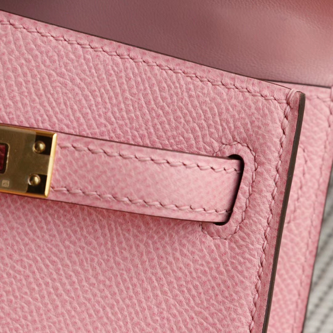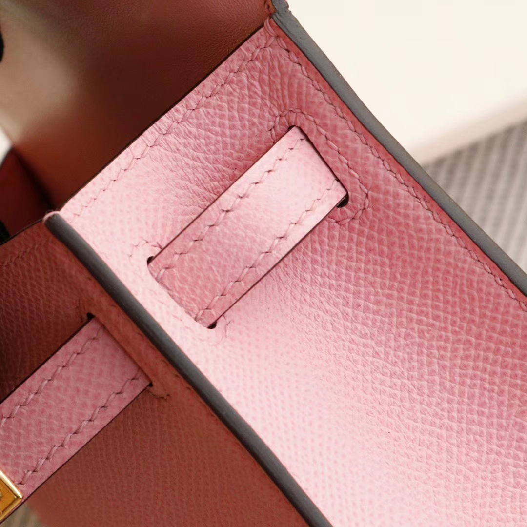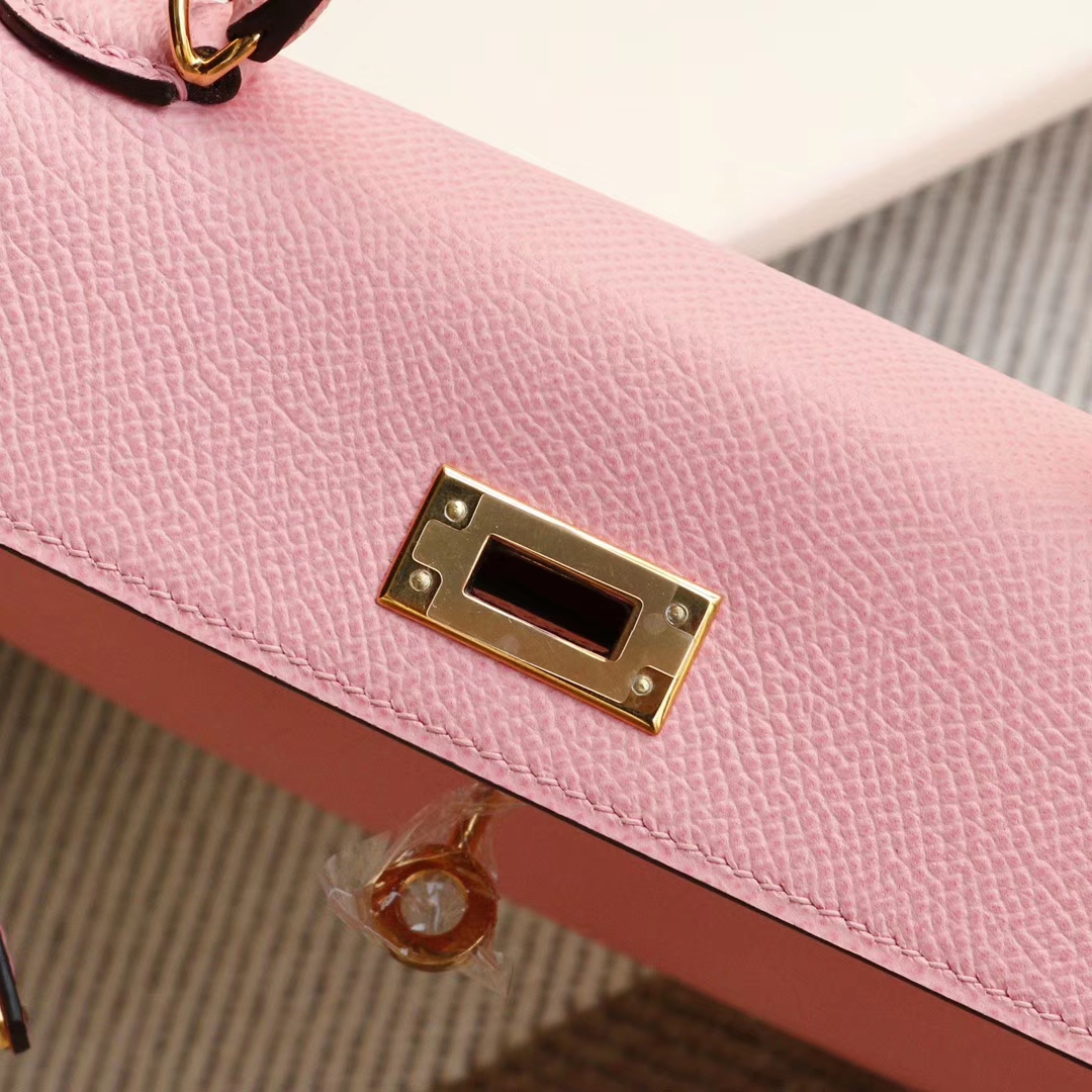 Baiyun Leather City, Hermes 1Q Milkshake Pink, Gold Buckle, Minikelly II, Original Factory Epsom Leather, Pure Hand Sewn