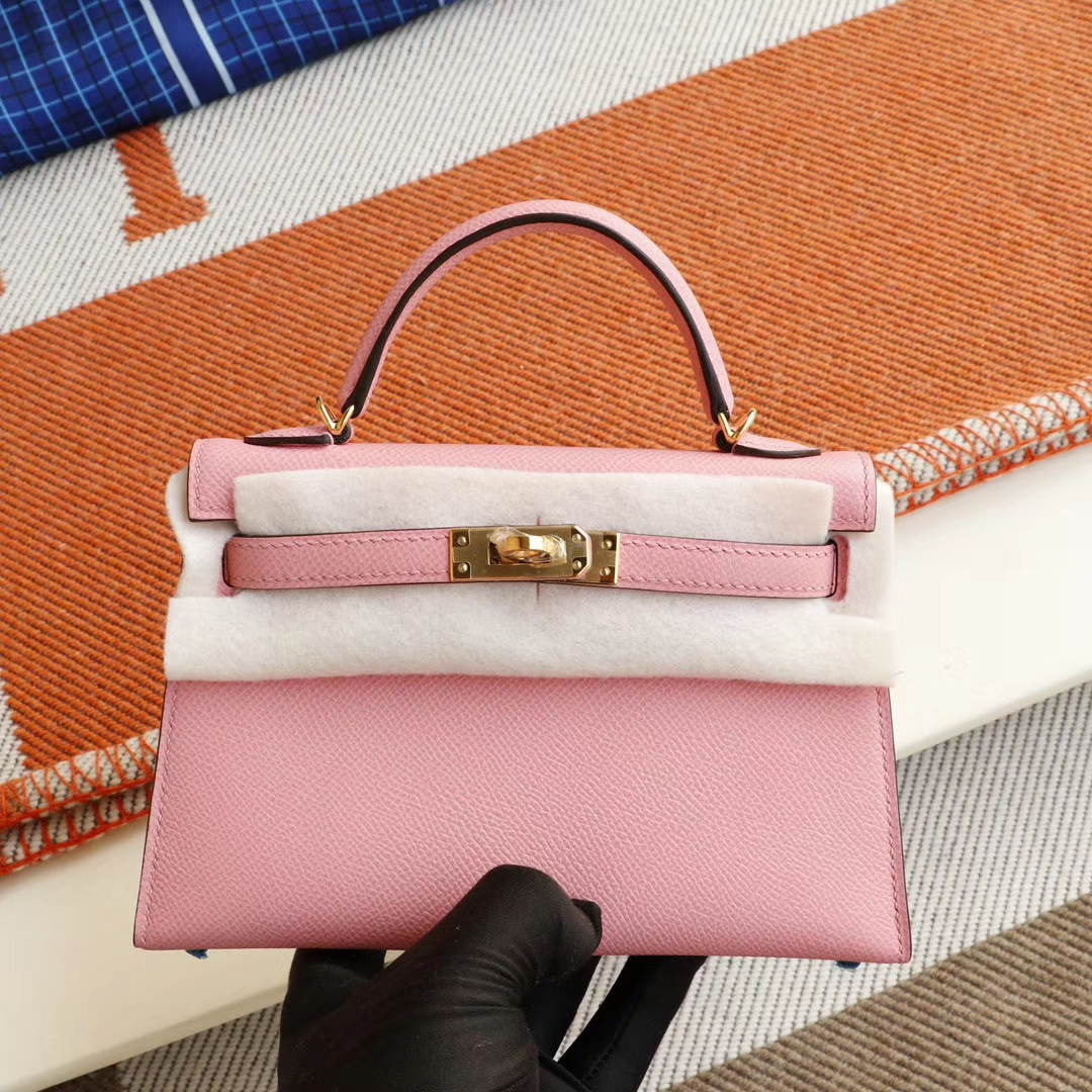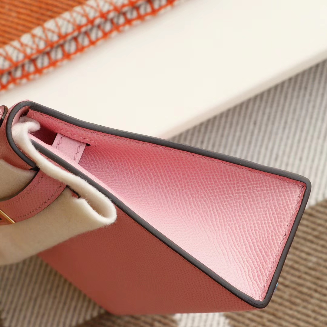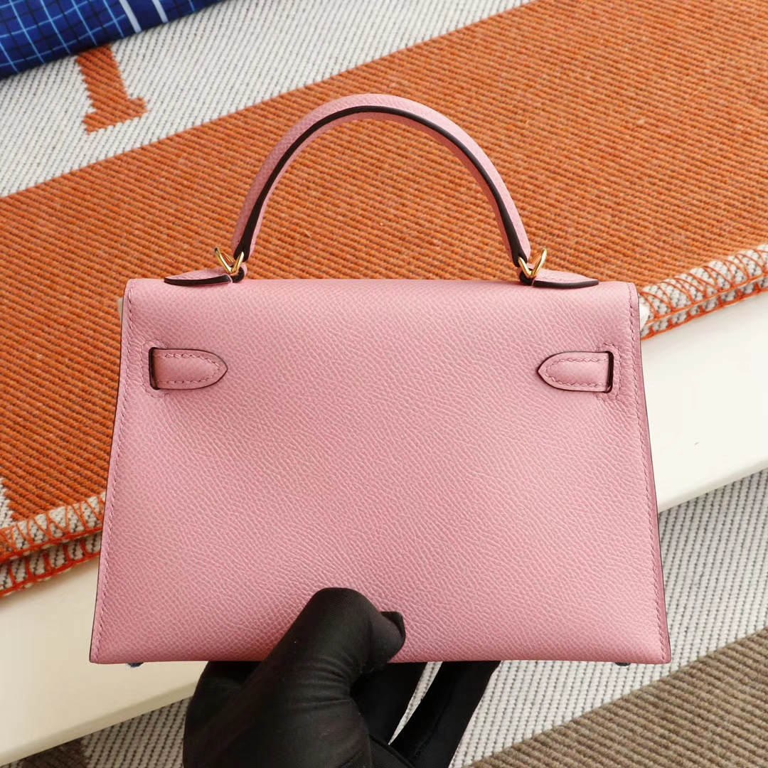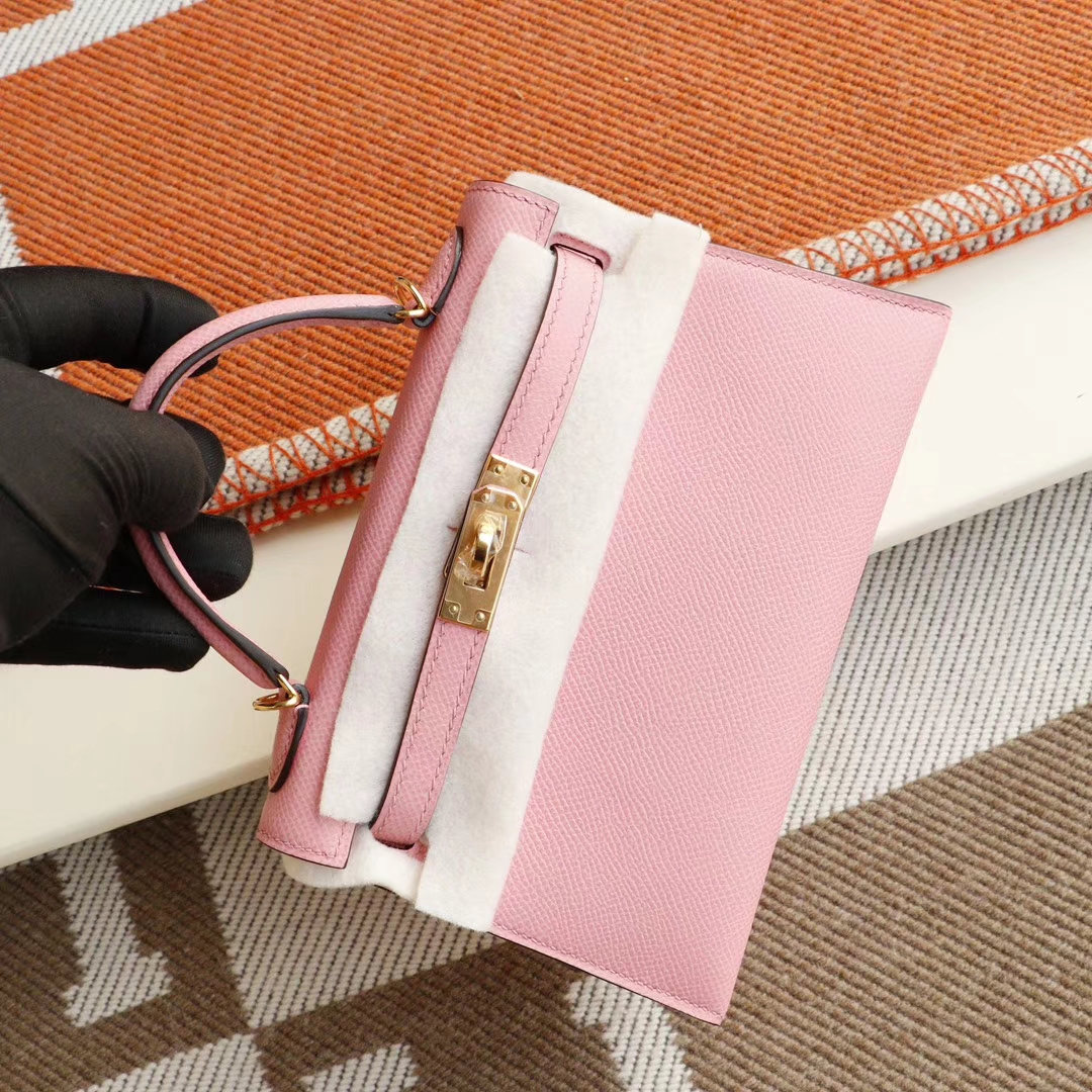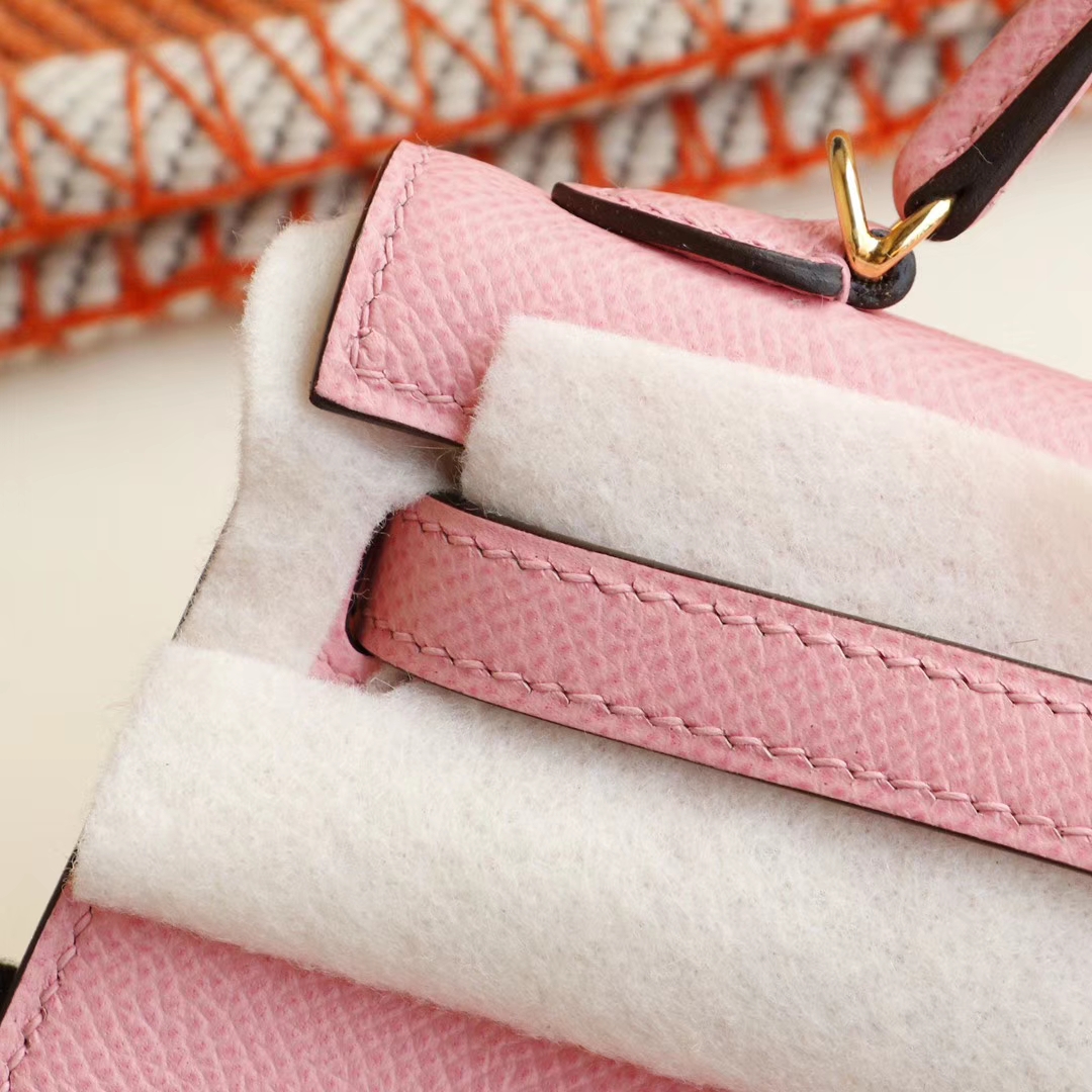 Baiyun Leather City, Hermes 1Q Milkshake Pink, Gold Buckle, Minikelly II, Original Factory Epsom Leather, Pure Hand Sewn