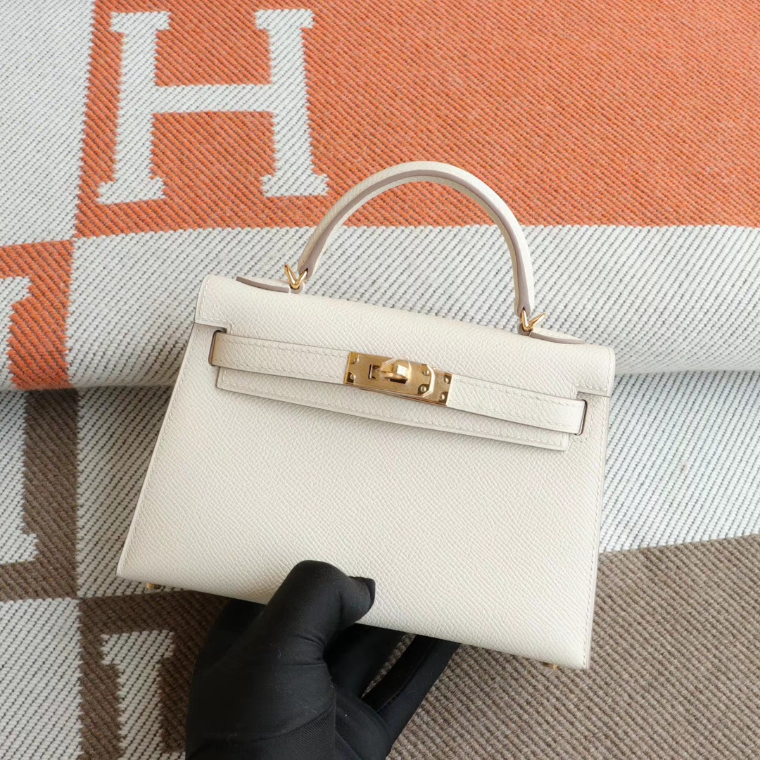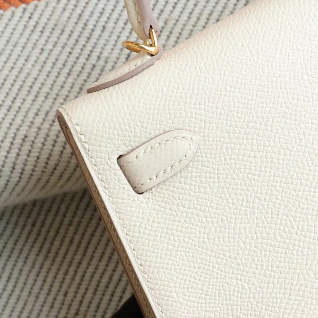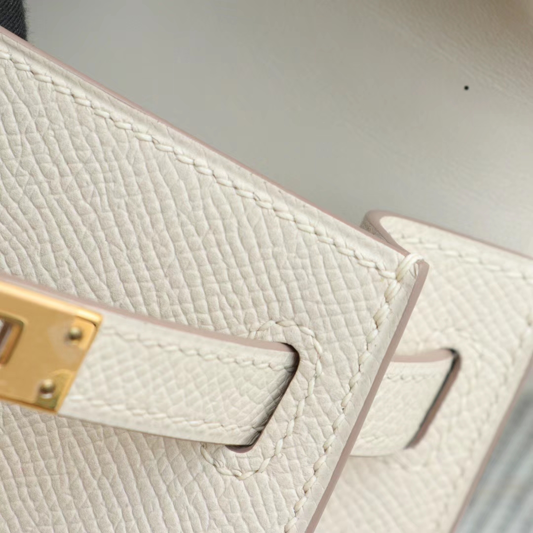 Guangzhou Baiyun Leather Goods City HERMES CC10 Milkshake White with Gold Hardware Minikelly II, Original Factory Epsom Leather, Pure Hand Sewn