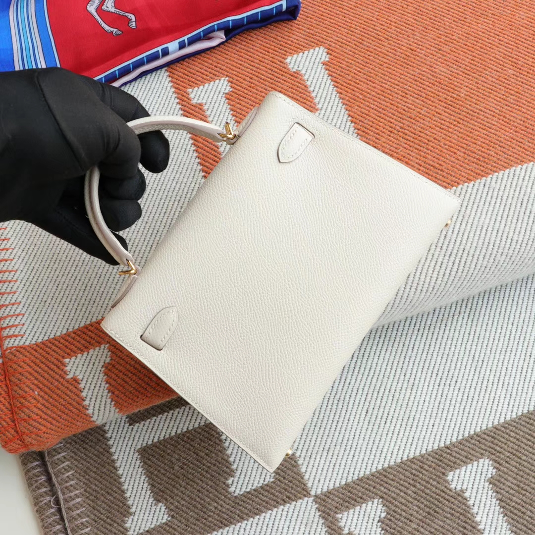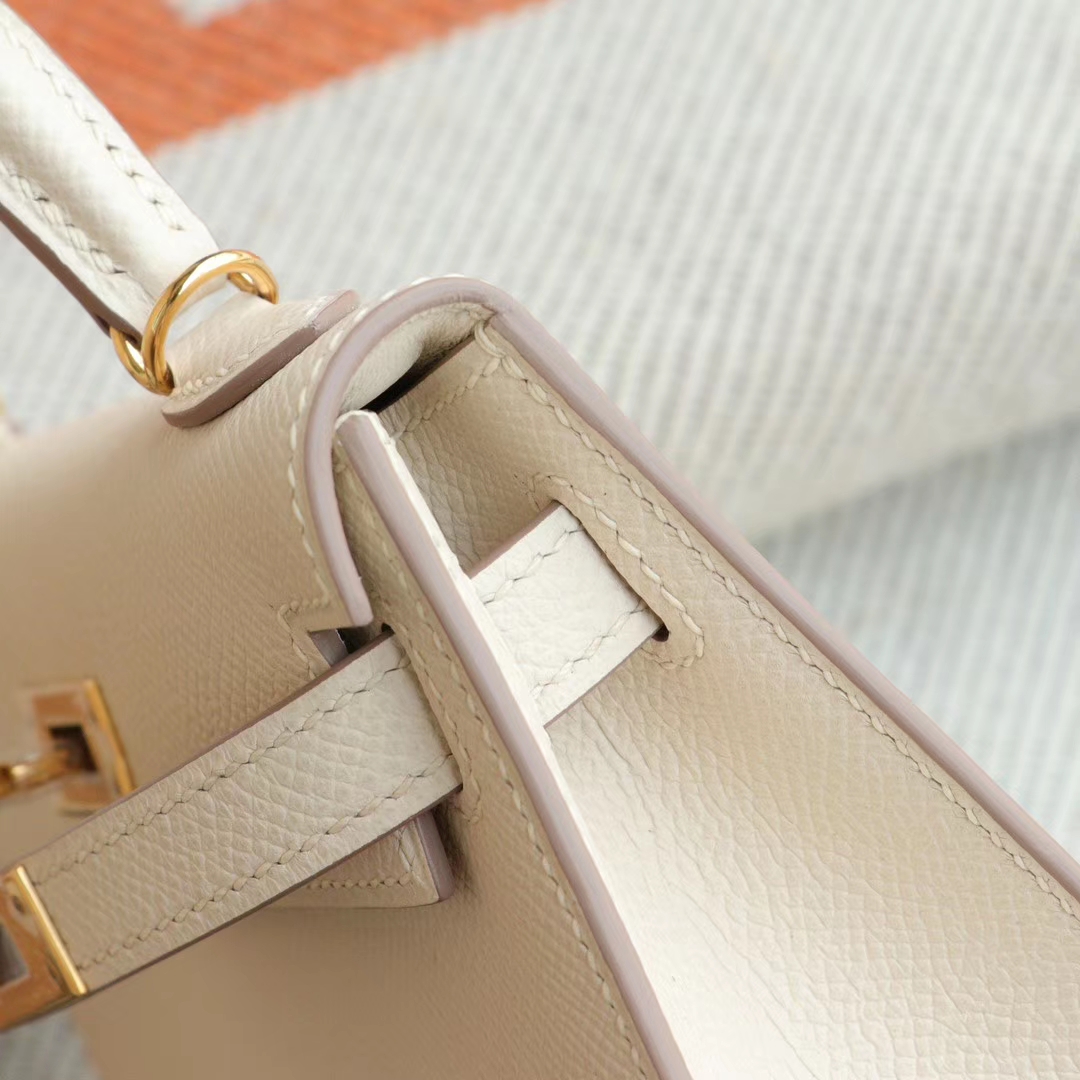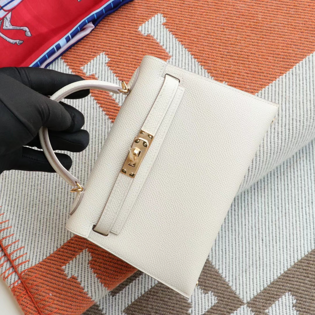 Guangzhou Baiyun Leather Goods City HERMES CC10 Milkshake White with Gold Hardware Minikelly II, Original Factory Epsom Leather, Pure Hand Sewn
