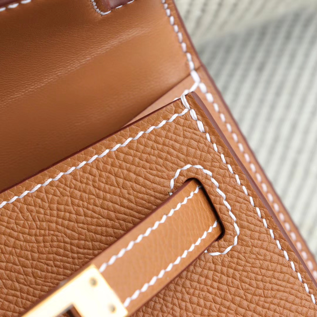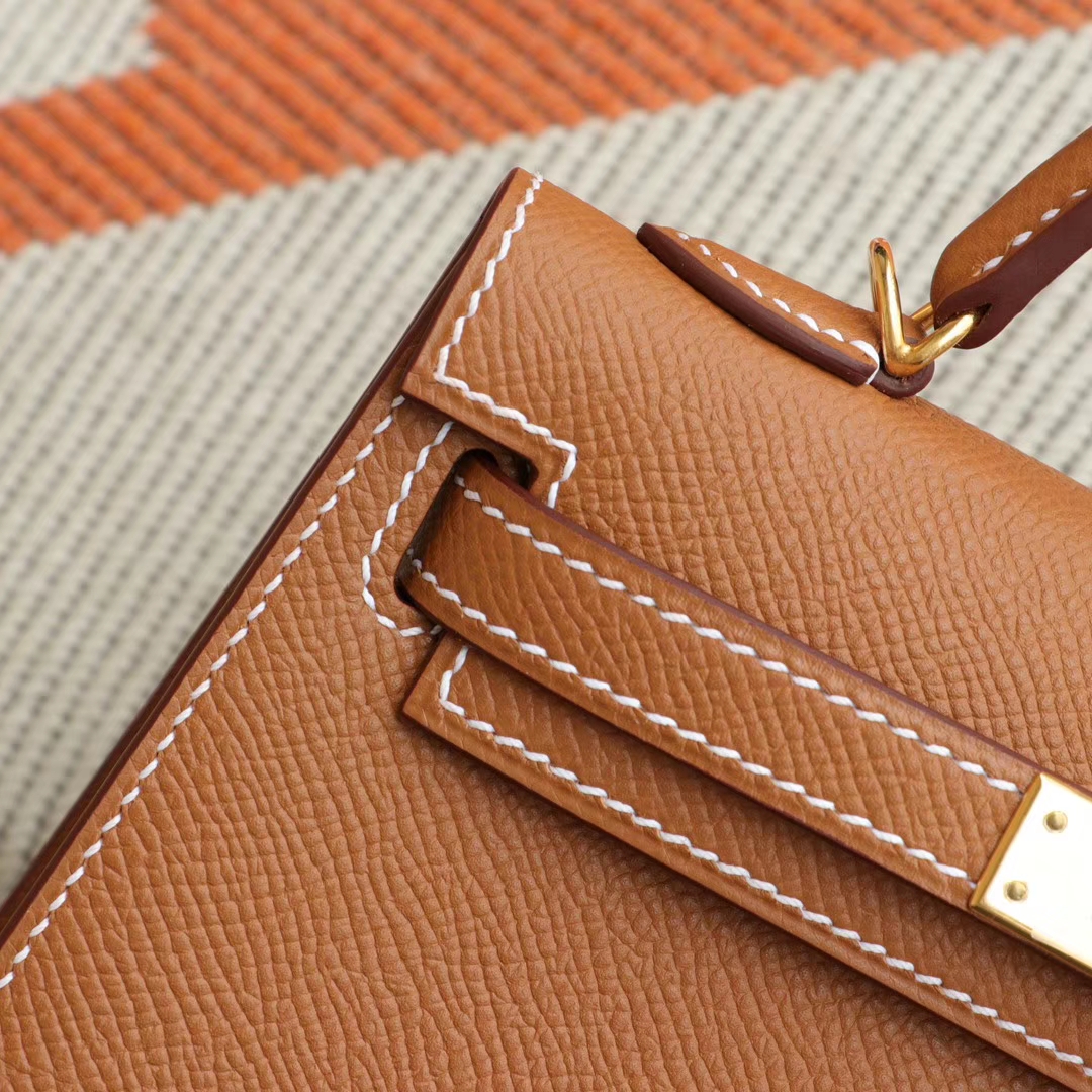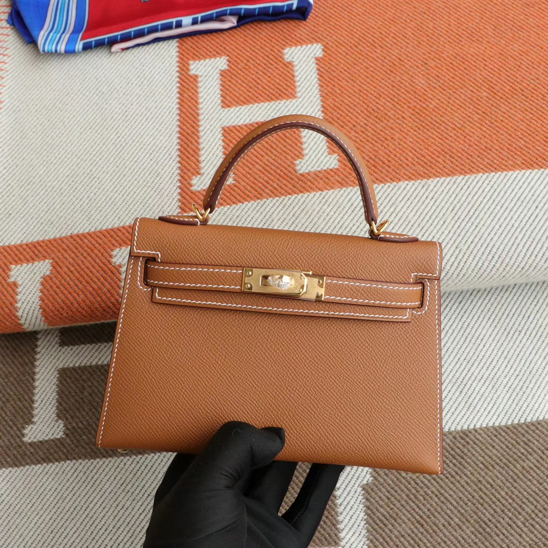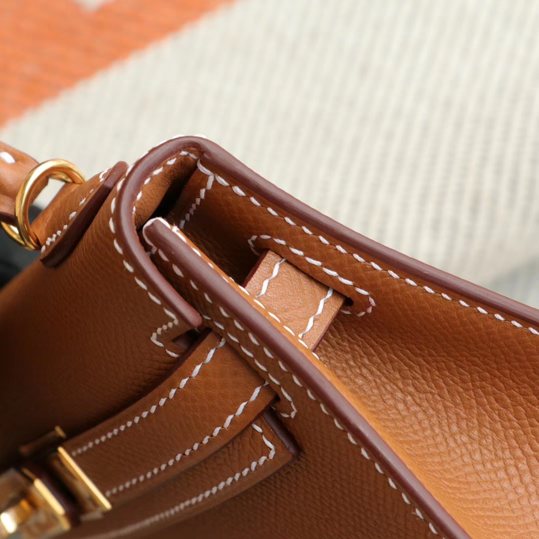 Guangzhou Baiyun Leather Goods City HERMES Ck37 Golden Brown with Gold Buckle Minikelly II, Original Factory Epsom Leather, Pure Hand-stitched