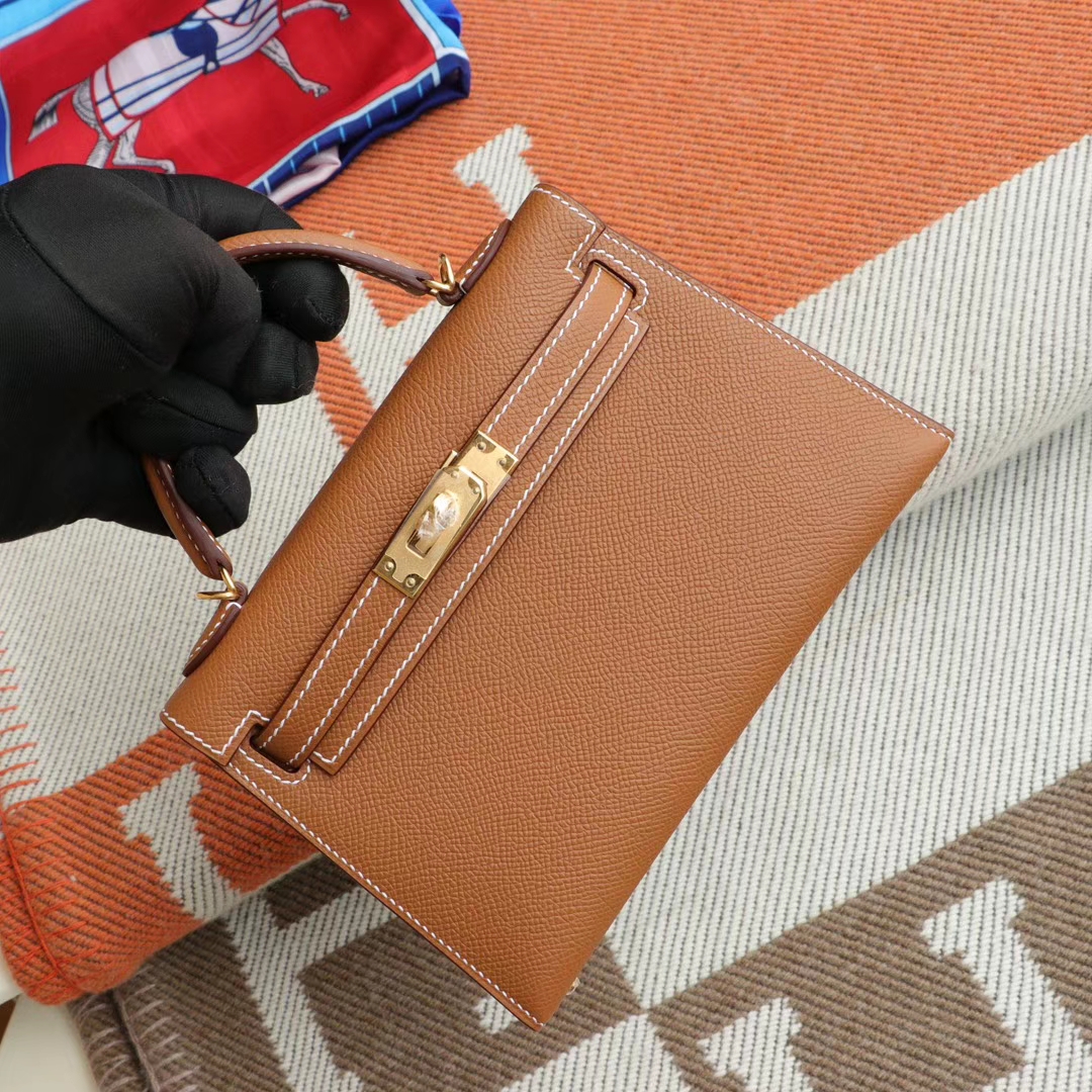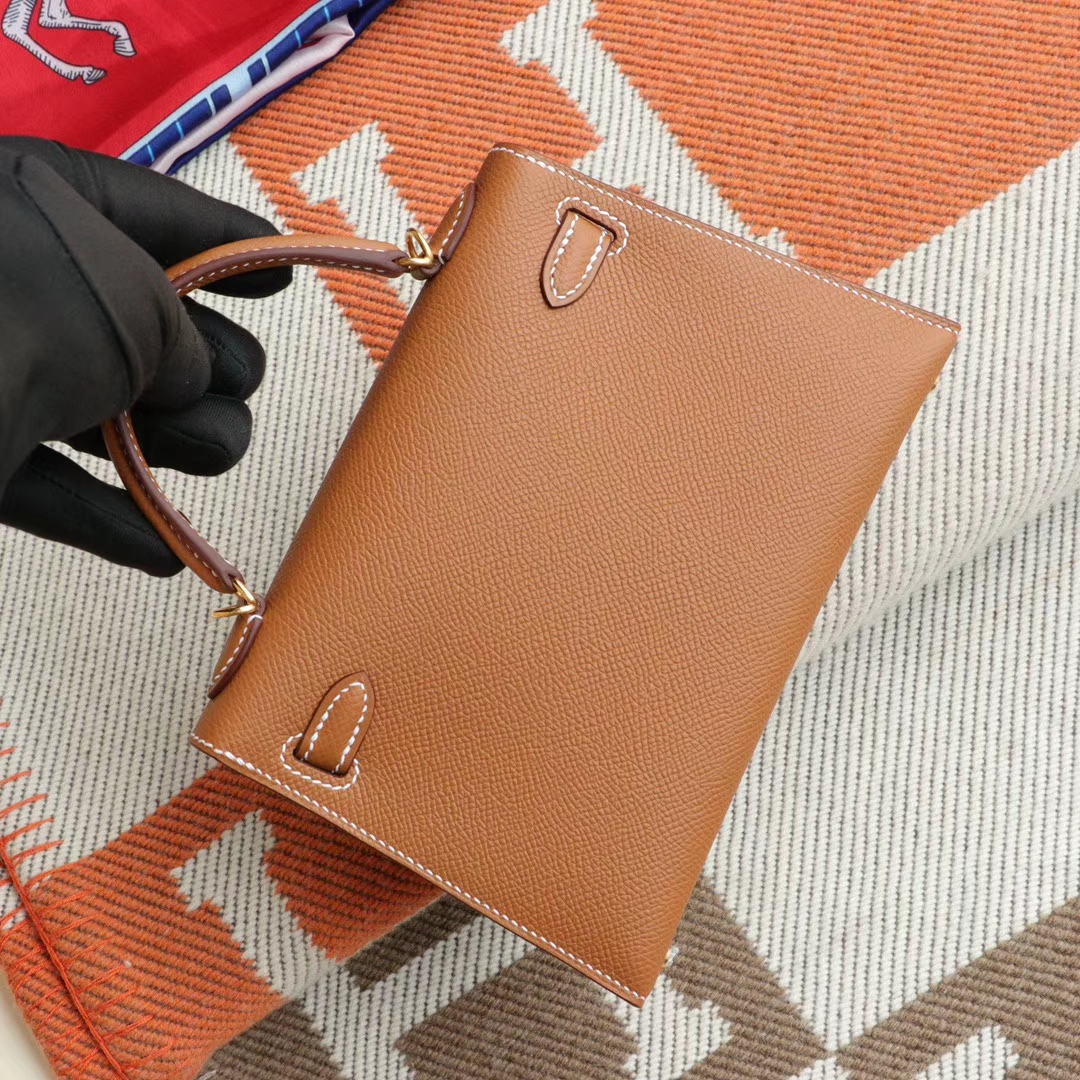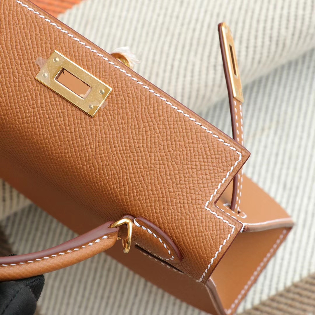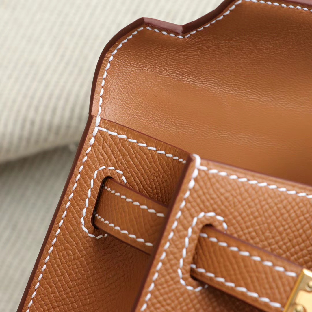 Guangzhou Baiyun Leather Goods City HERMES Ck37 Golden Brown with Gold Buckle Minikelly II, Original Factory Epsom Leather, Pure Hand-stitched