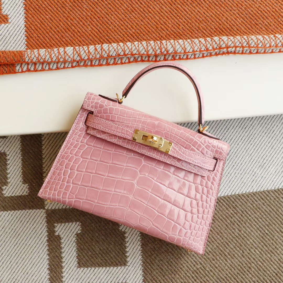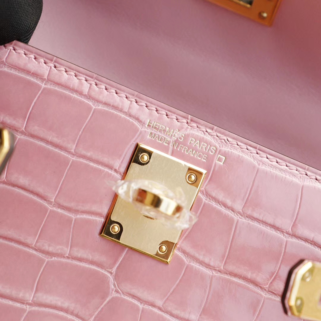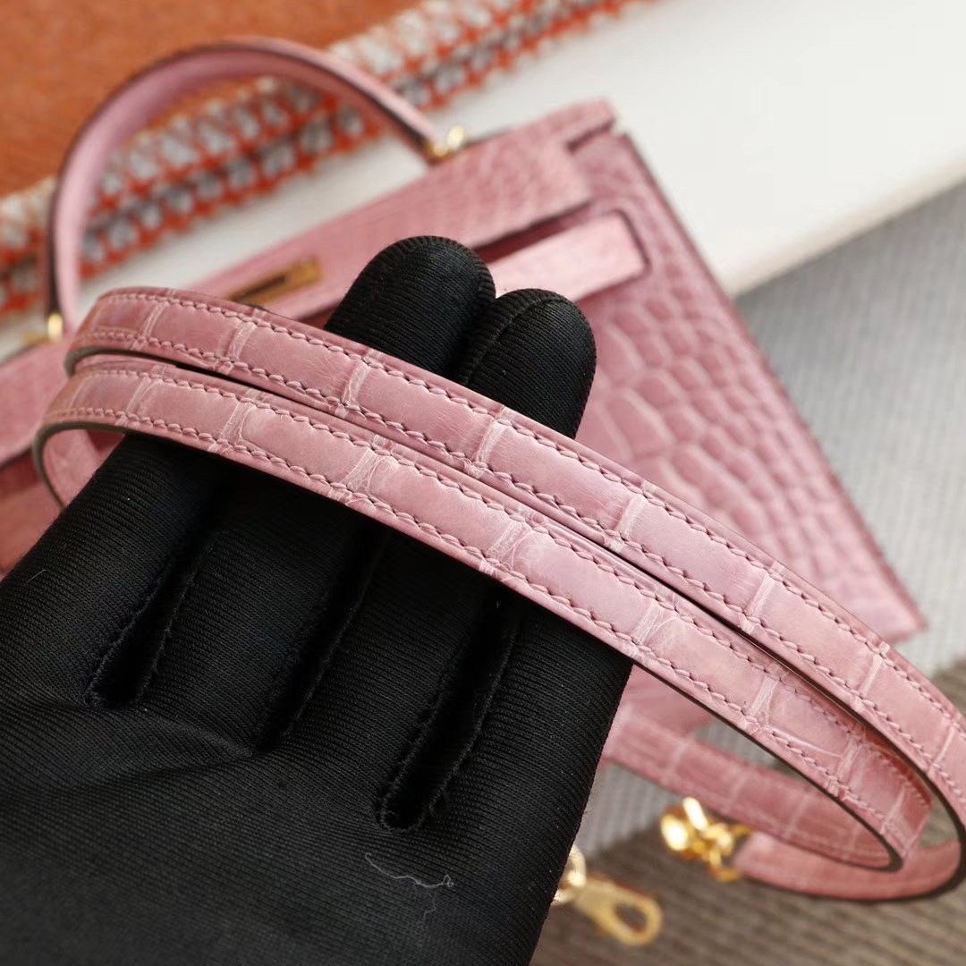 Baiyun Leather City HERMES 3Q Cherry Blossom Pink, Gold Buckle, Minikelly II, Hcp Glossy Crocodile, Pure Hand-sewn Craftsmanship