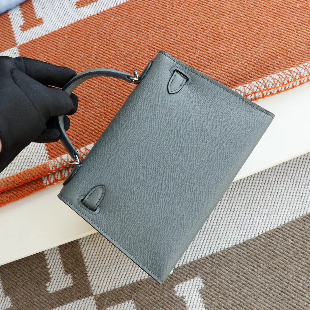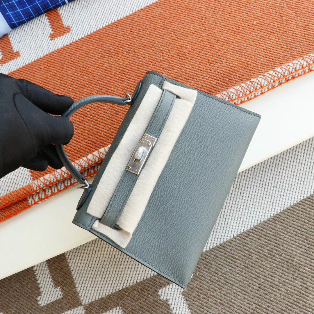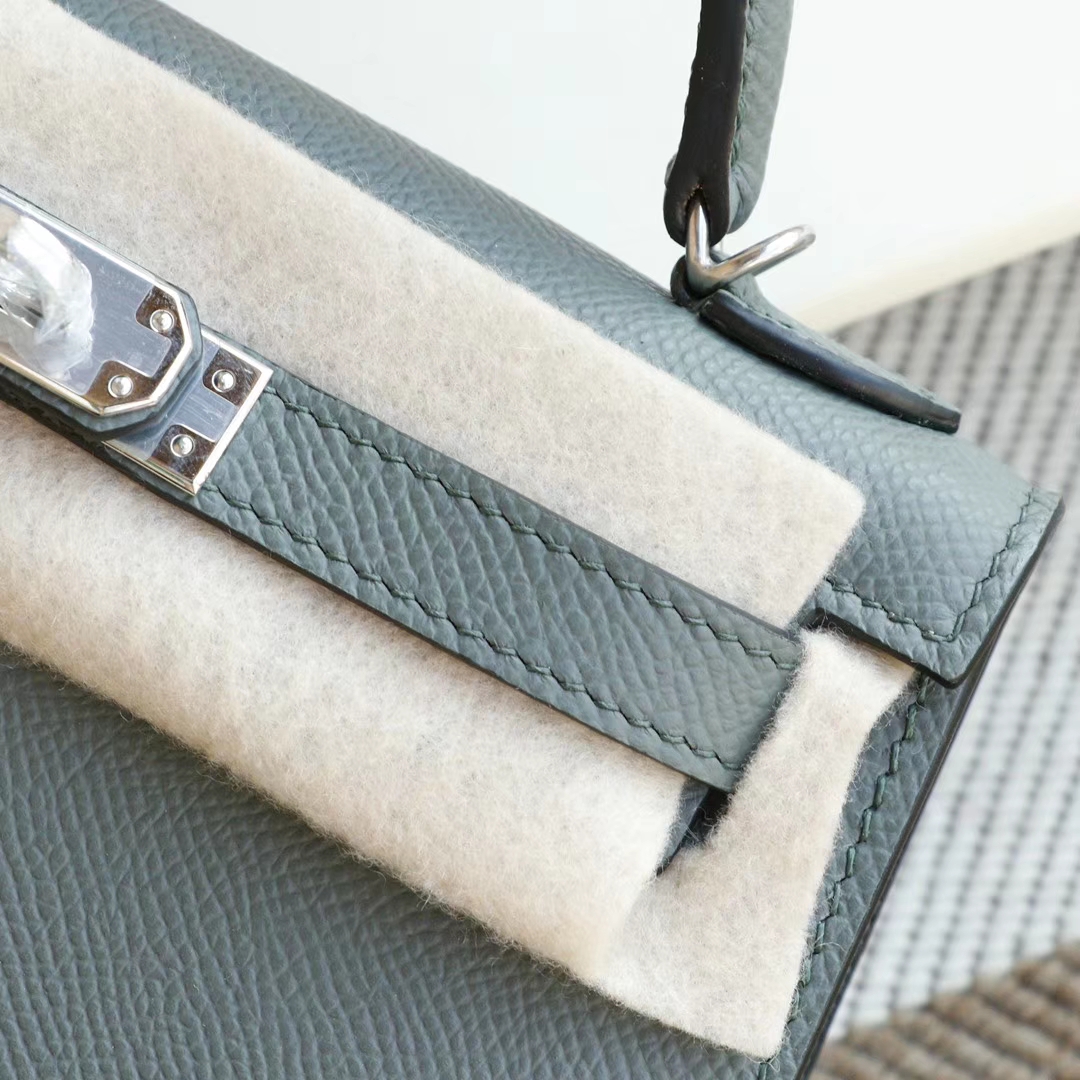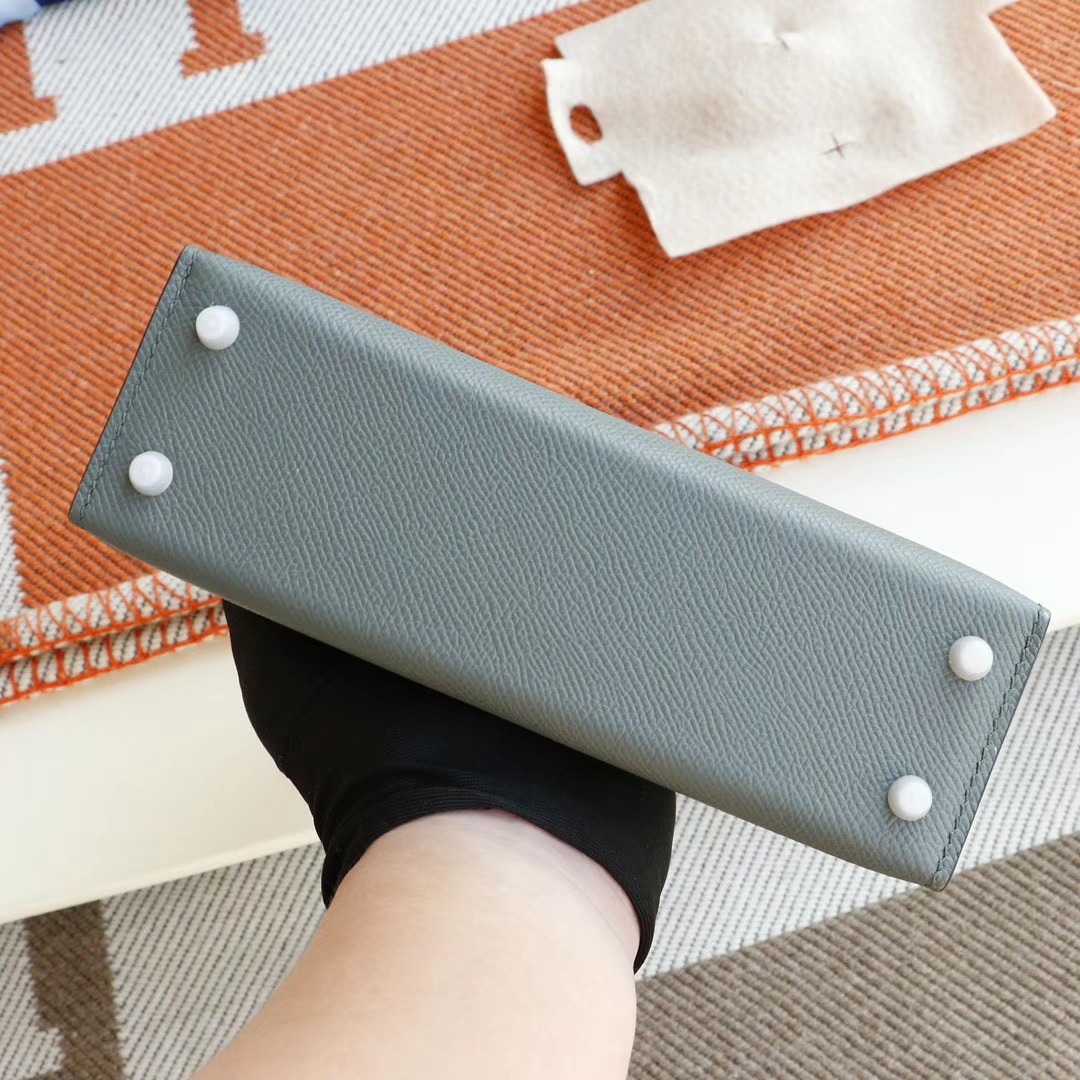 Guangzhou Leather Goods City HERMES Almond Green Silver Buckle Minikelly II Original Factory Epsom Leather Pure Handmade Sewing