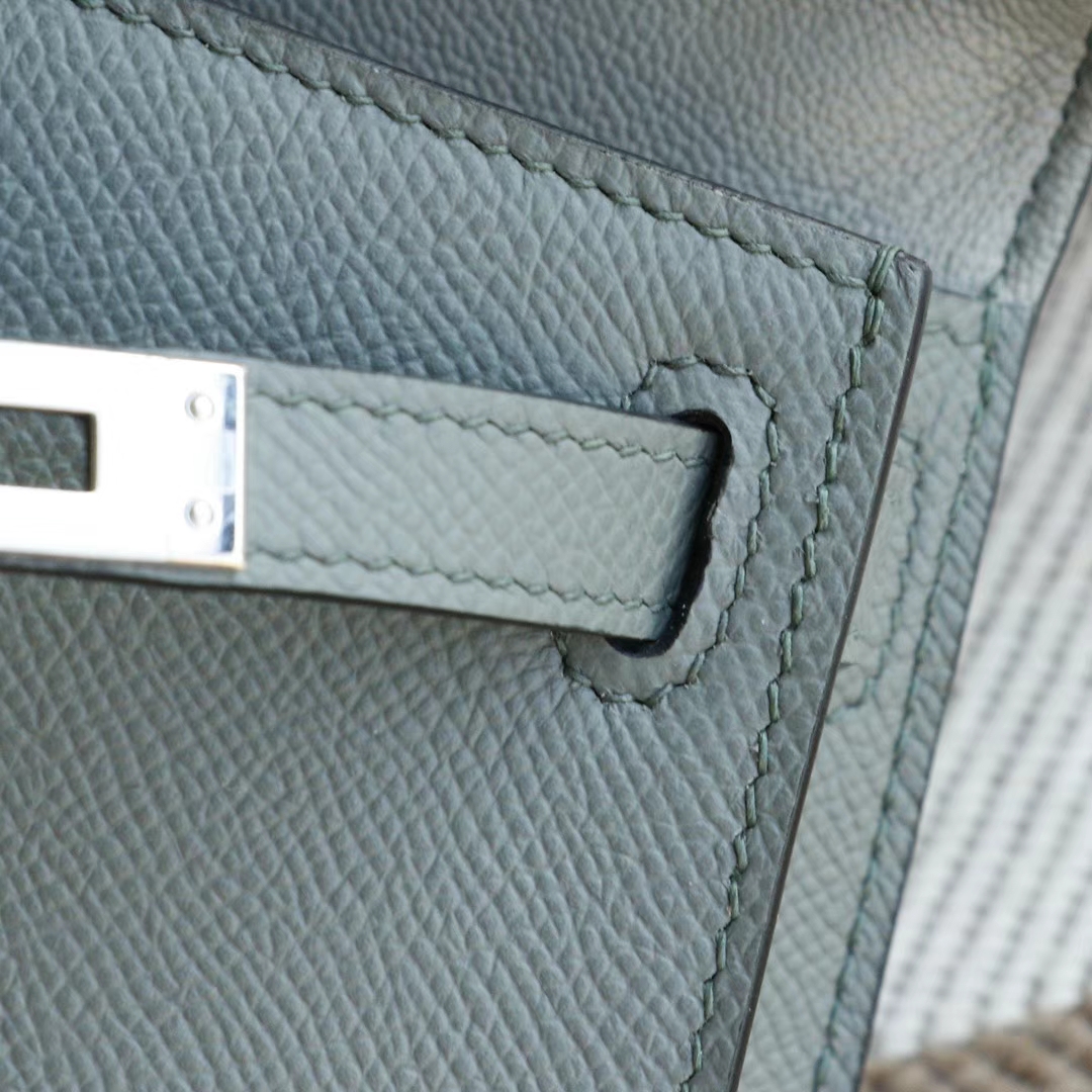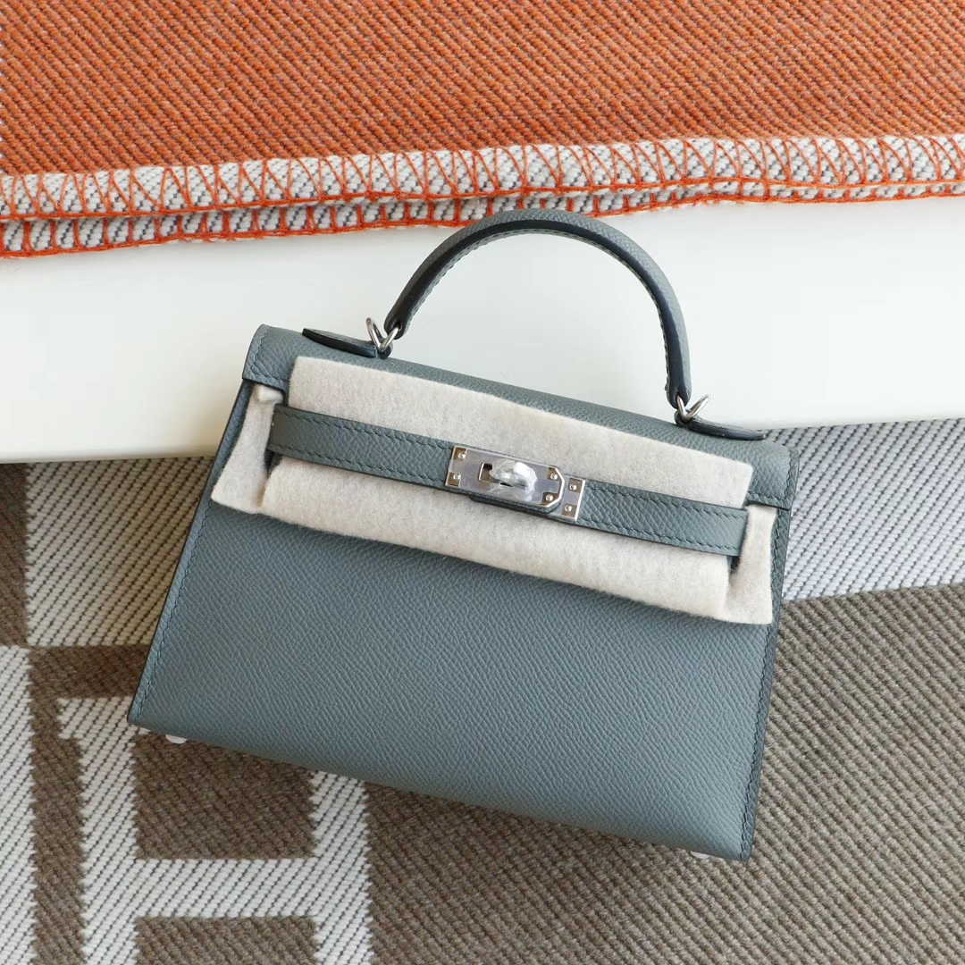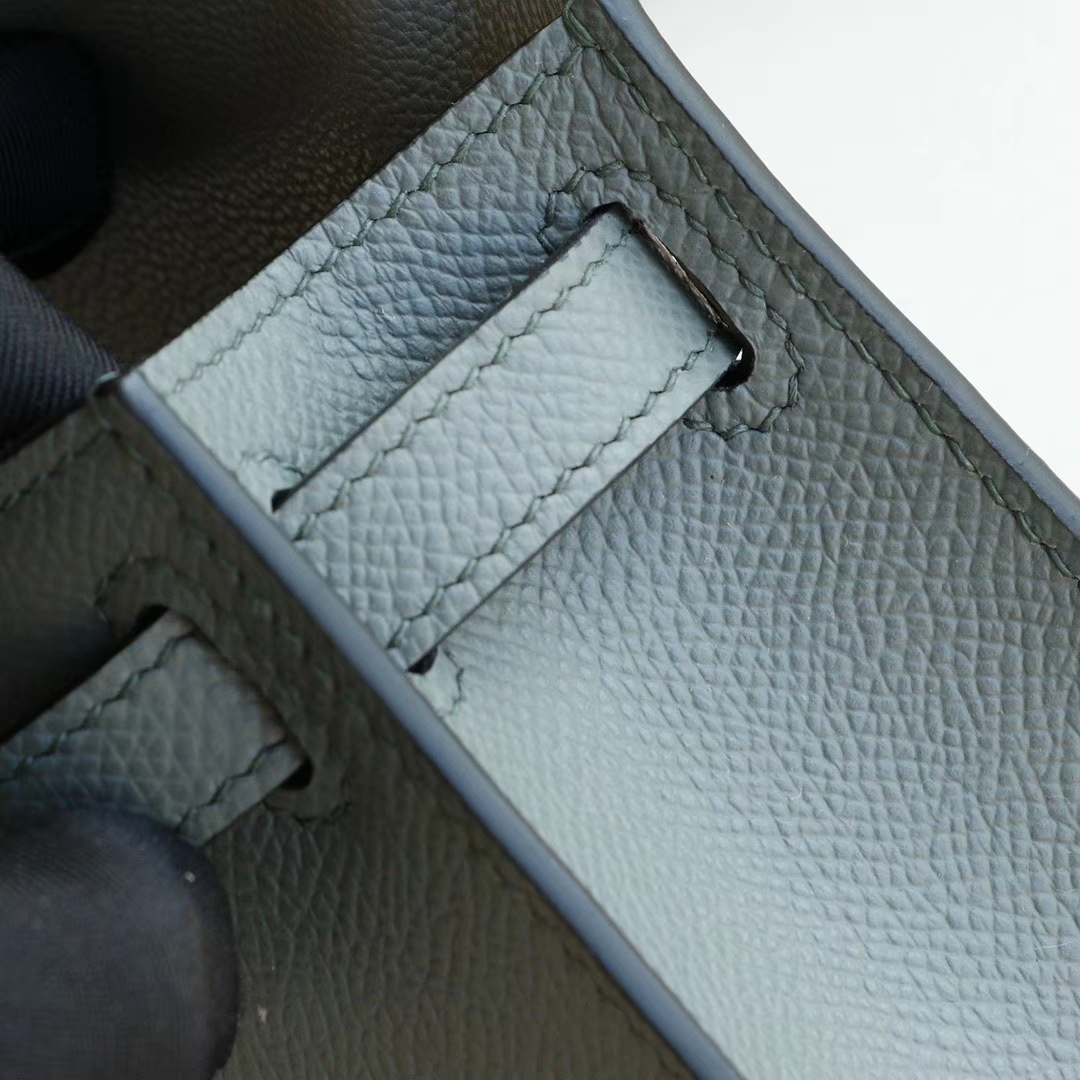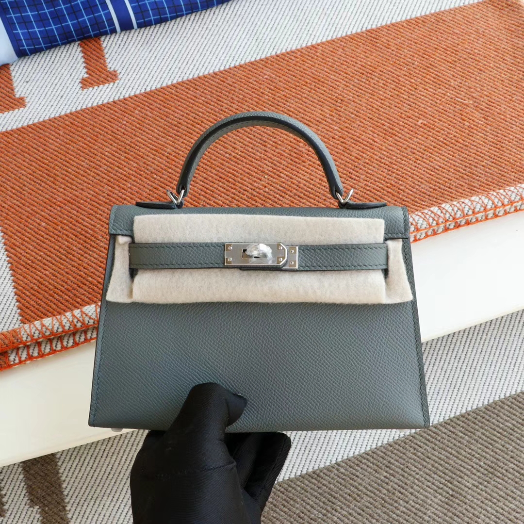 Guangzhou Leather Goods City HERMES Almond Green Silver Buckle Minikelly II Original Factory Epsom Leather Pure Handmade Sewing
