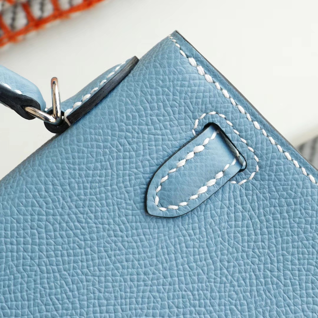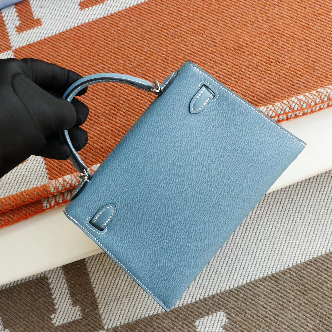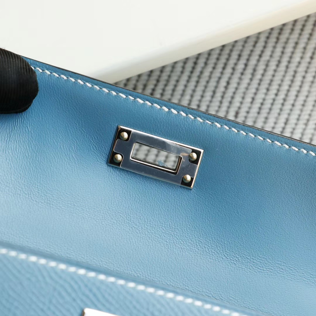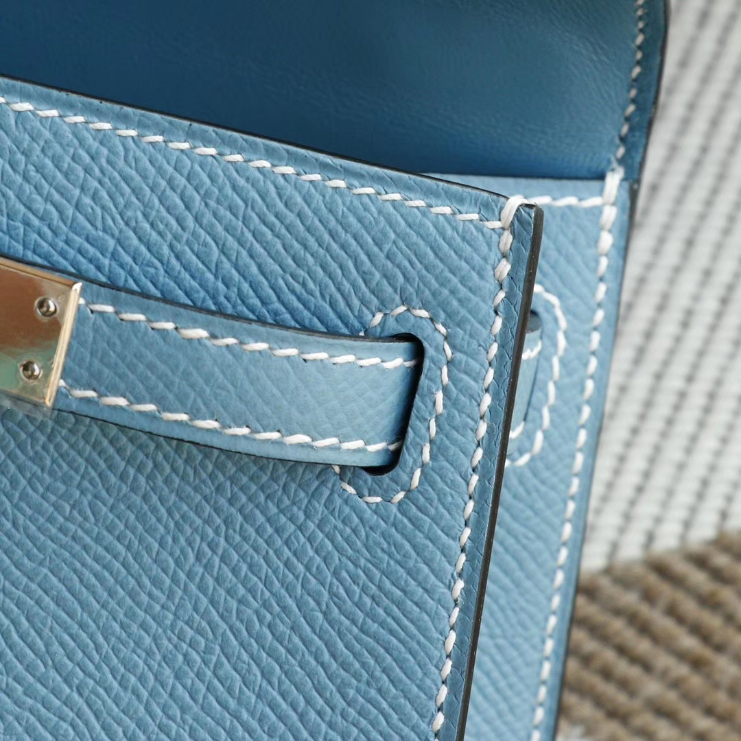 Baiyun Leather City, Hermès, CC75 denim blue, silver buckle, Mini Kelly II, Epsom leather, hand-sewn 2025年06月05日 0 Guangzhou Baiyun Leather Goods | WeChat ID: S1388813888 HERMES Baiyun Leather City, Hermès, CC75 denim blue, silver buckle, Mini Kelly II, Epsom leather, hand-sewn