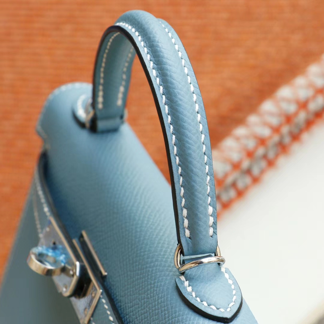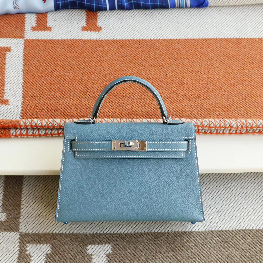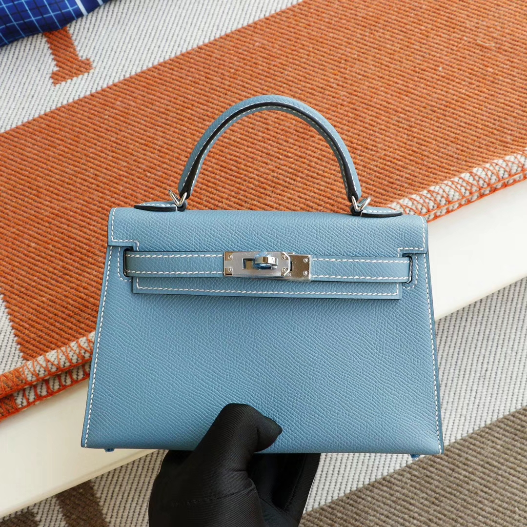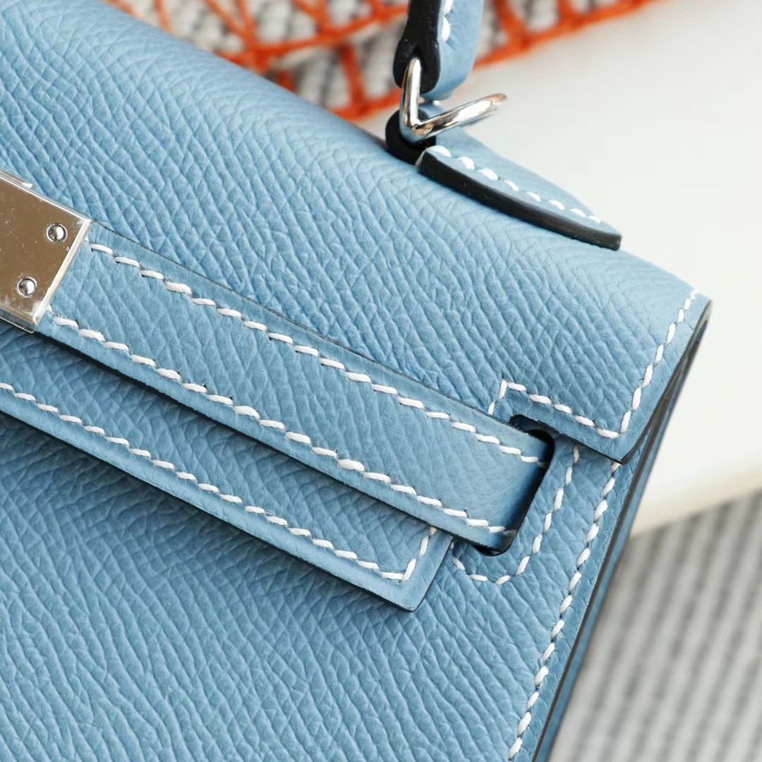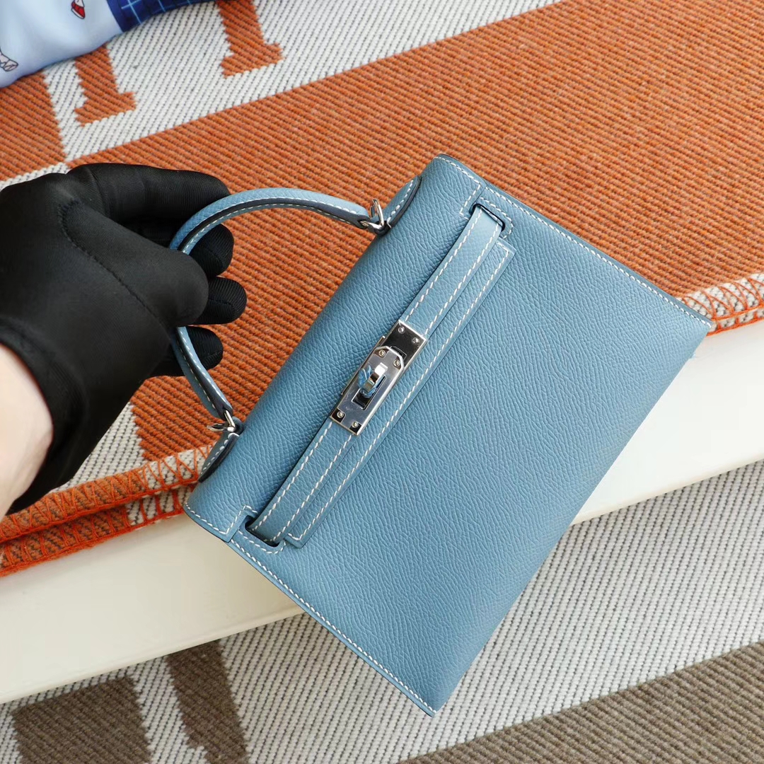 Baiyun Leather City, Hermès, CC75 denim blue, silver buckle, Mini Kelly II, Epsom leather, hand-sewn 2025年06月05日 0 Guangzhou Baiyun Leather Goods | WeChat ID: S1388813888 HERMES Baiyun Leather City, Hermès, CC75 denim blue, silver buckle, Mini Kelly II, Epsom leather, hand-sewn