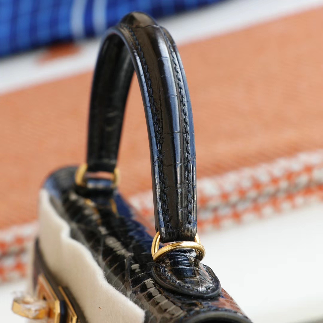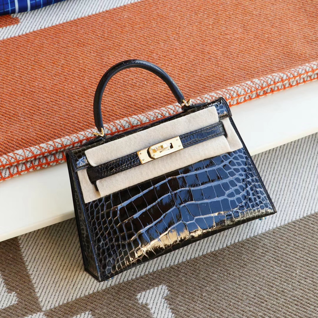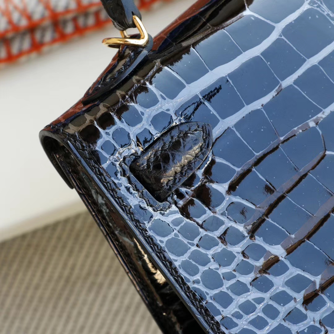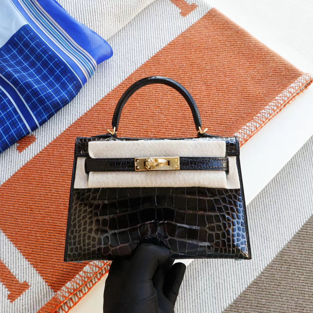 Hermès CC89 Black with Gold Hardware, Mini Kelly II, Hcp Glossy Crocodile, Mini Kelly Bag, Pure Handmade Stitching