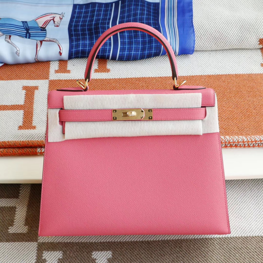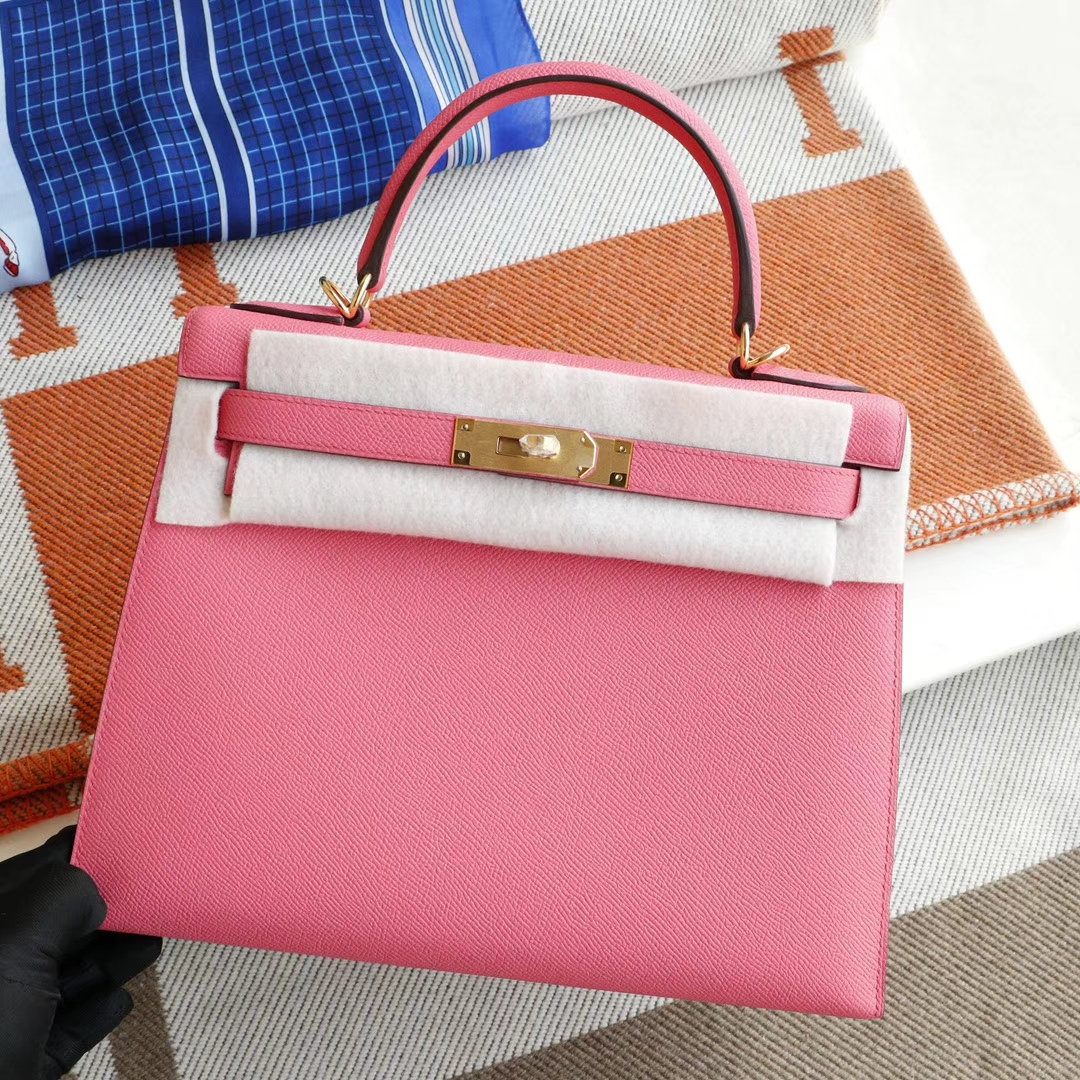 Guangzhou Baiyun Leather Goods City, Hermès, Lipstick Pink Kelly 28CM, Original Factory Epsom Leather, Kelly Bag