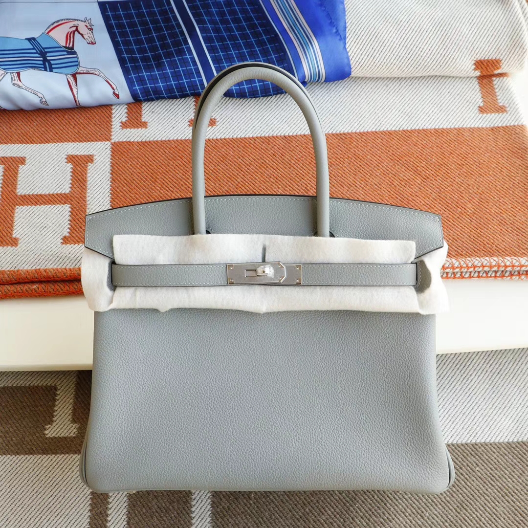 HERMES 爱马仕 J7亚麻蓝 银扣 Birkin30CM 铂金包法国togo小牛皮 老师傅全手工 2024年11月20日 0 广州汇白云具 | 微信号:S1388813888 HERMES J7亚麻蓝 银扣 Birkin30CM 铂金包法国togo小牛皮 老师傅全手工缝制!