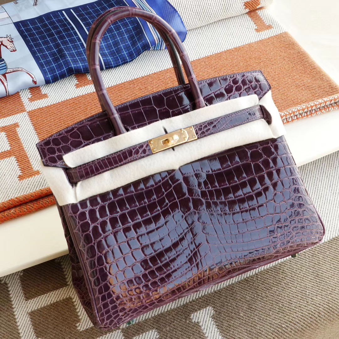 HERMES 爱马仕 9G葡萄紫 水晶紫 金扣 Birkin30CM 铂金包 亮面鳄鱼俩点 老师傅全手缝蜡线 2024年11月20日 0 广州汇美皮具 | 微信号:S1388813888 HERMES 9G葡萄紫 水晶紫 金扣 Birkin30CM 铂金包 亮面鳄鱼俩点 老师傅全手缝蜡线