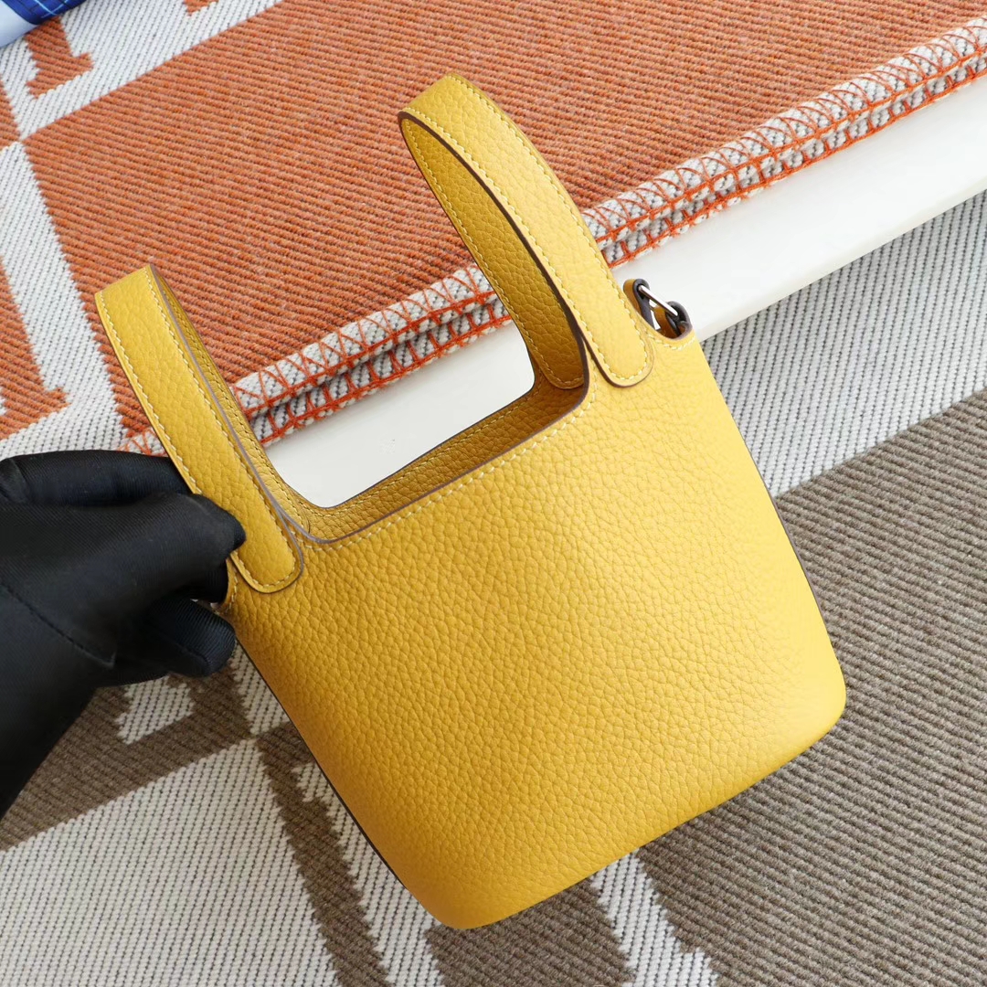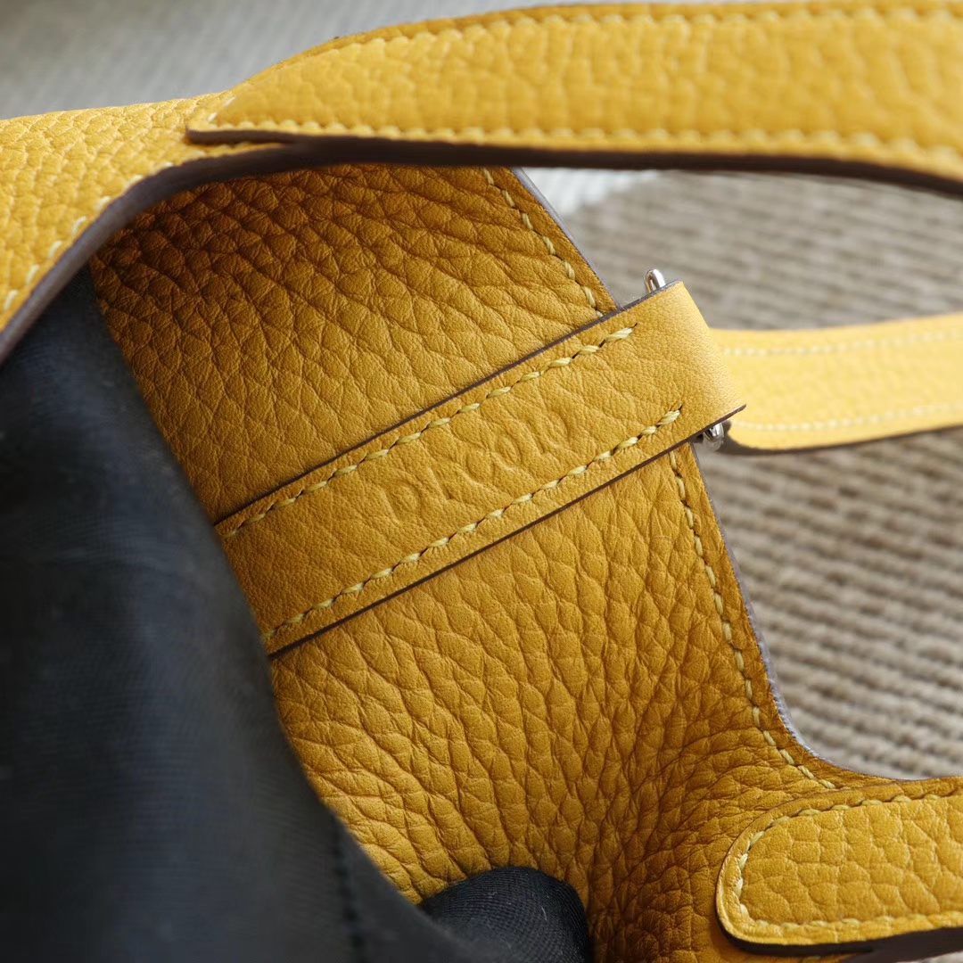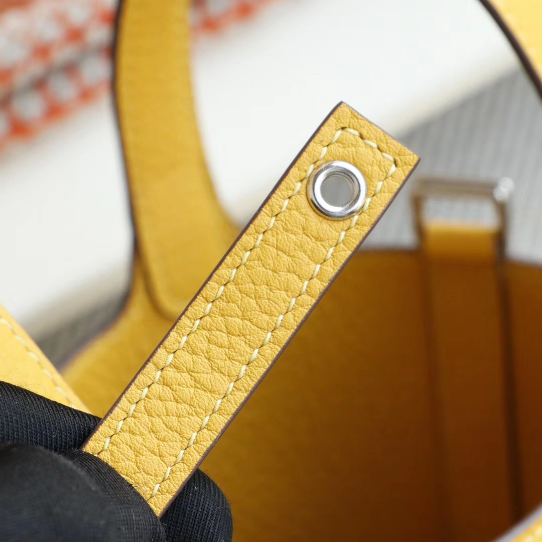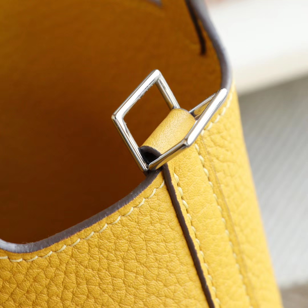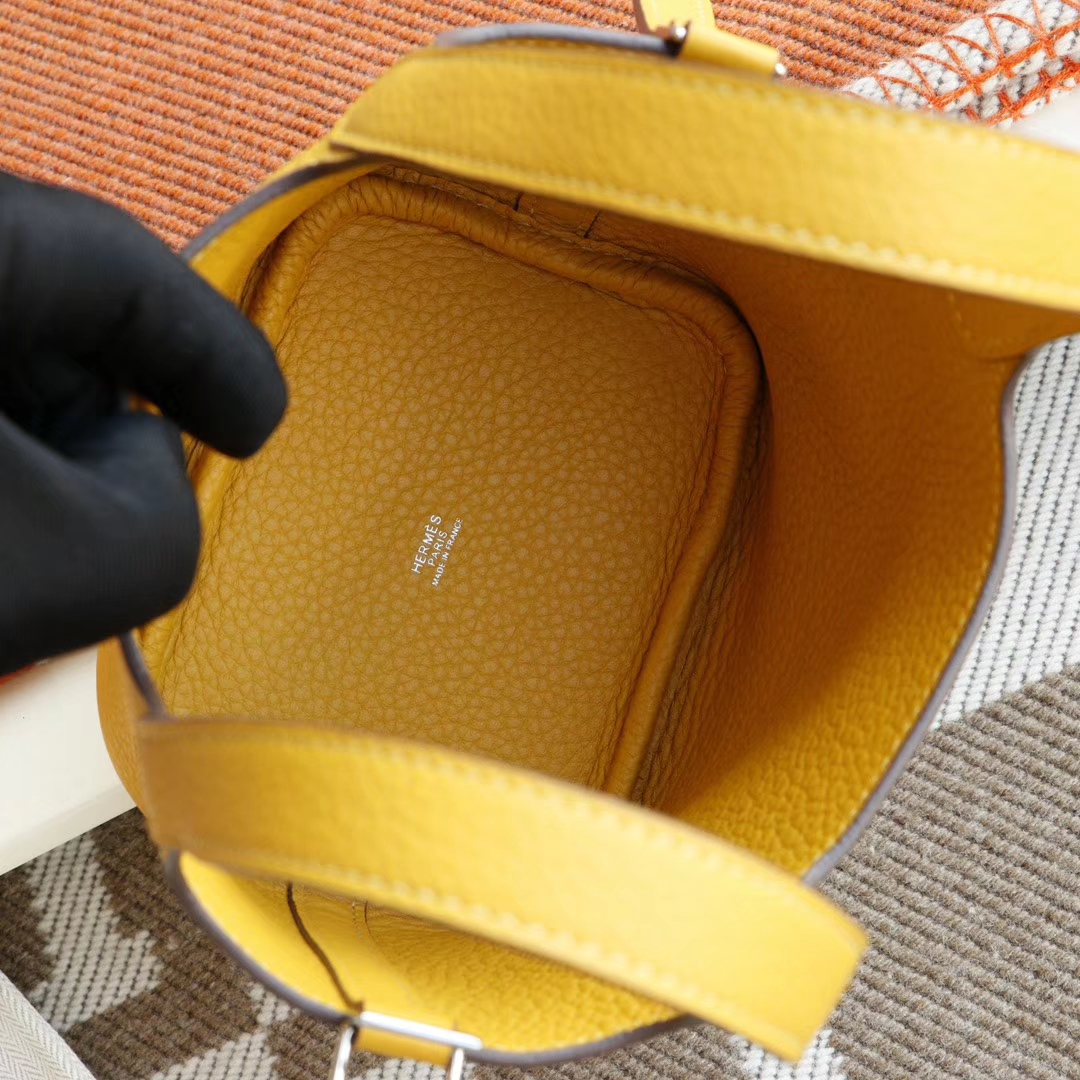 HERMES 9D Amber Yellow, Silver Buckle, Picotin Lock Mini Shopping Basket 14CM, Original Factory TC Leather