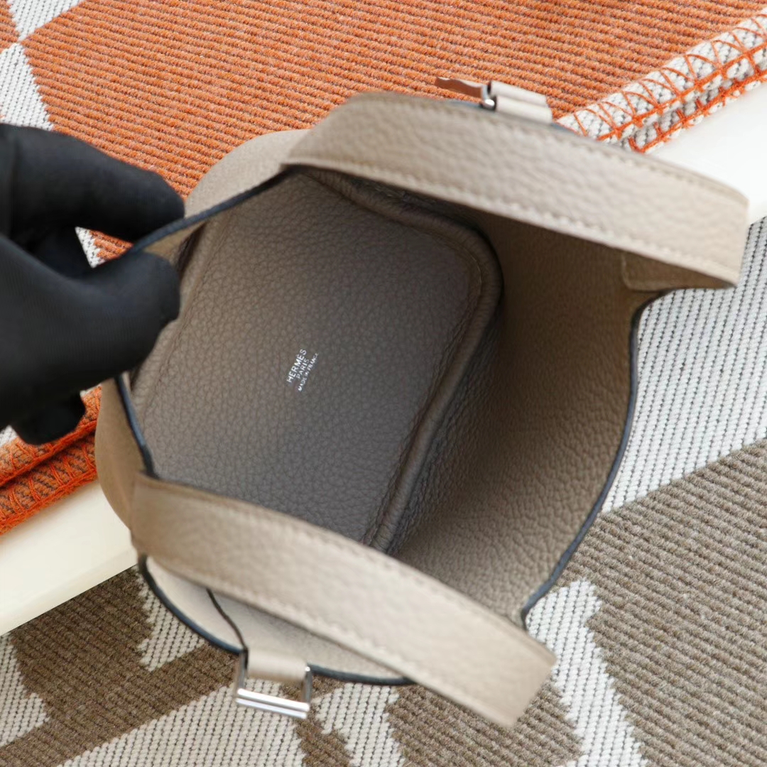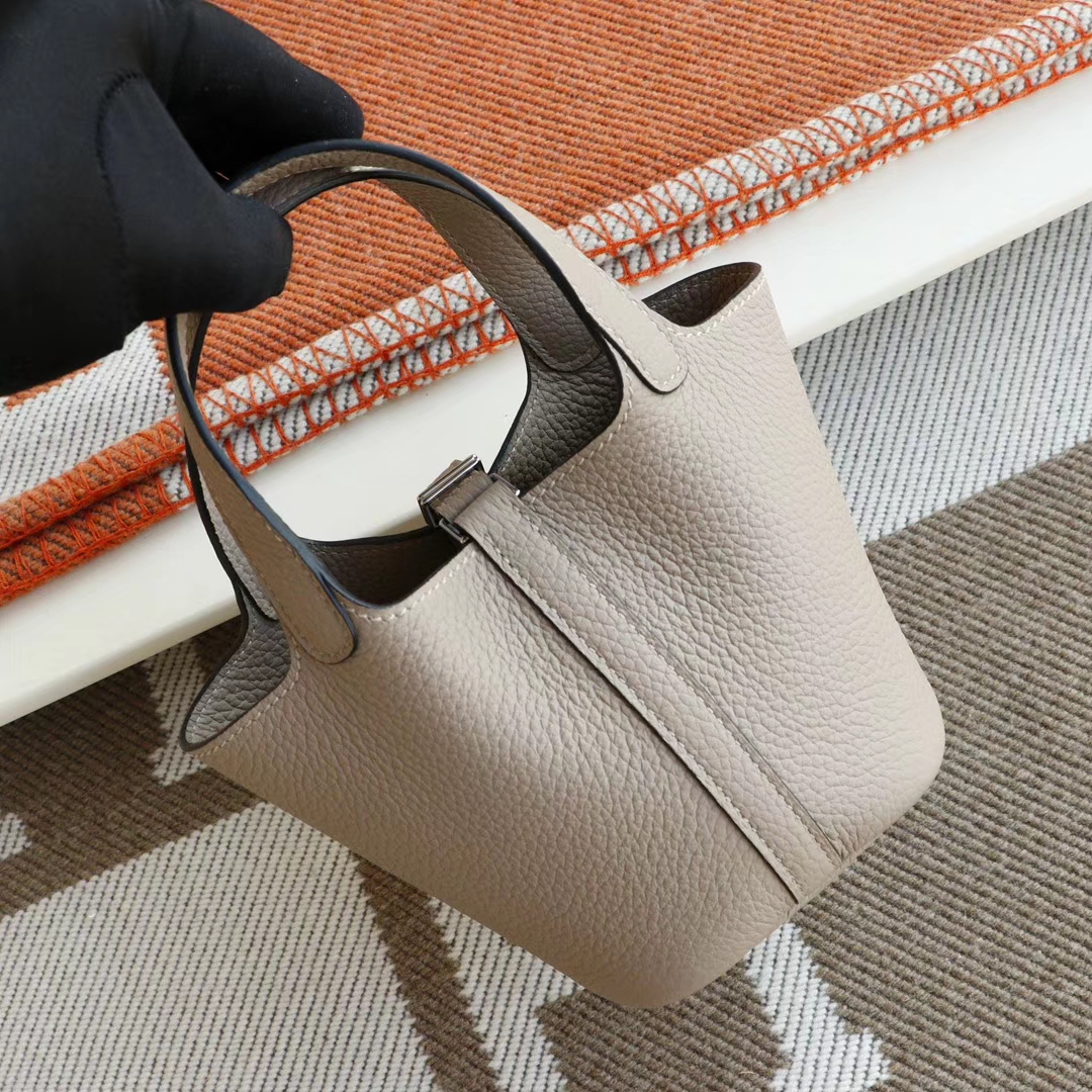 HERMES S2 Windbreaker Grey, Silver Buckle, Picotin Lock Mini Shopping Basket 14CM, Original Factory TC Leather, Pure Hand-sewn