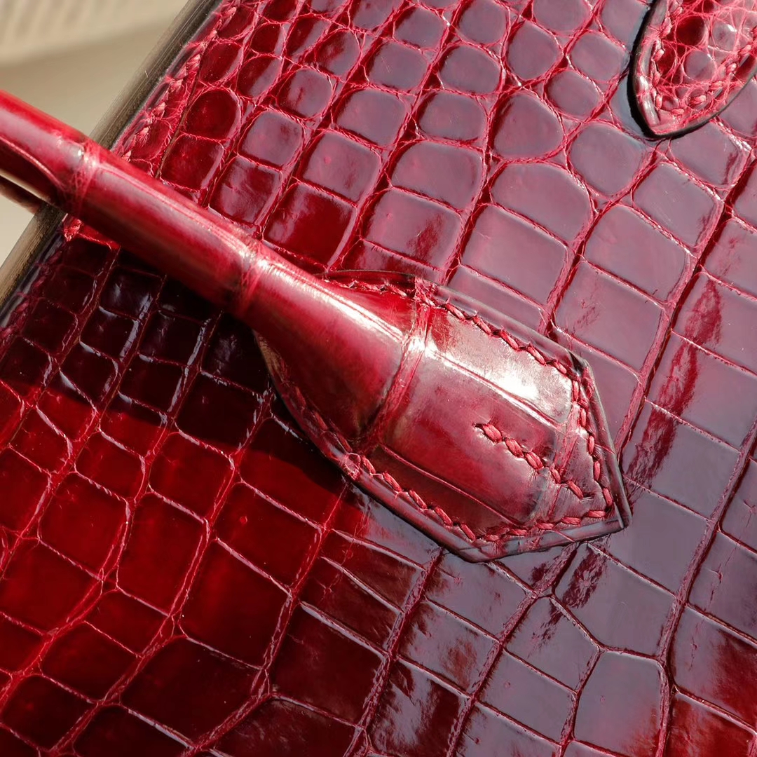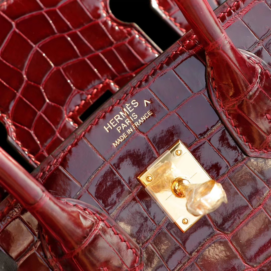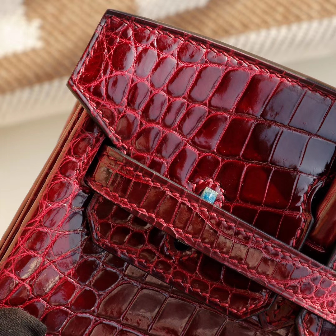 爱马仕 CK57波尔多酒红 金扣 Birkin25CM 亮面鳄鱼 总监纯手缝蜡线缝制 铂金包 2024年11月21日 0 广州白云皮具 | 微信号:S1388813888 HERMES CK57波尔多酒红 金扣 Birkin25CM 亮面鳄鱼 总监纯手缝蜡线缝制 铂金包