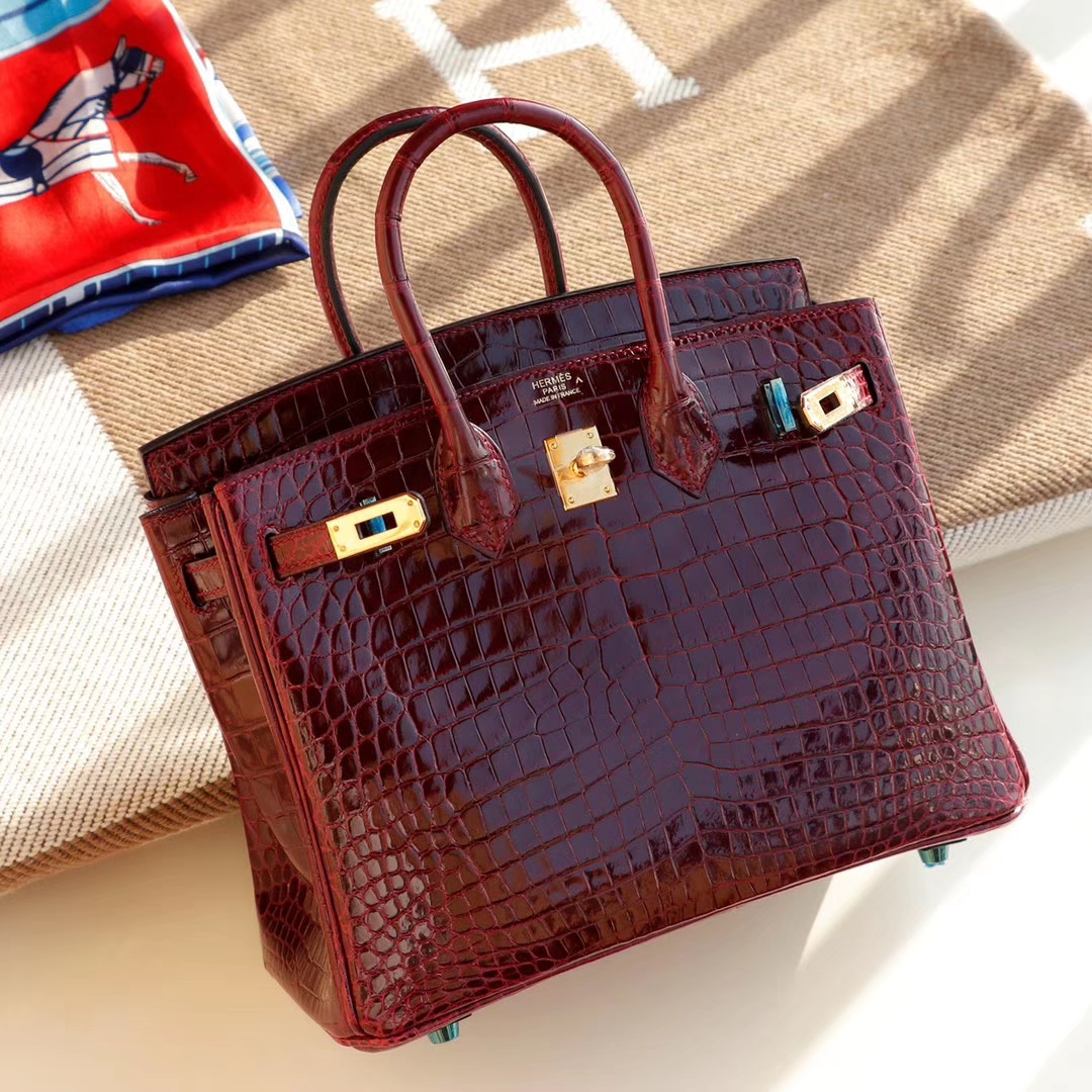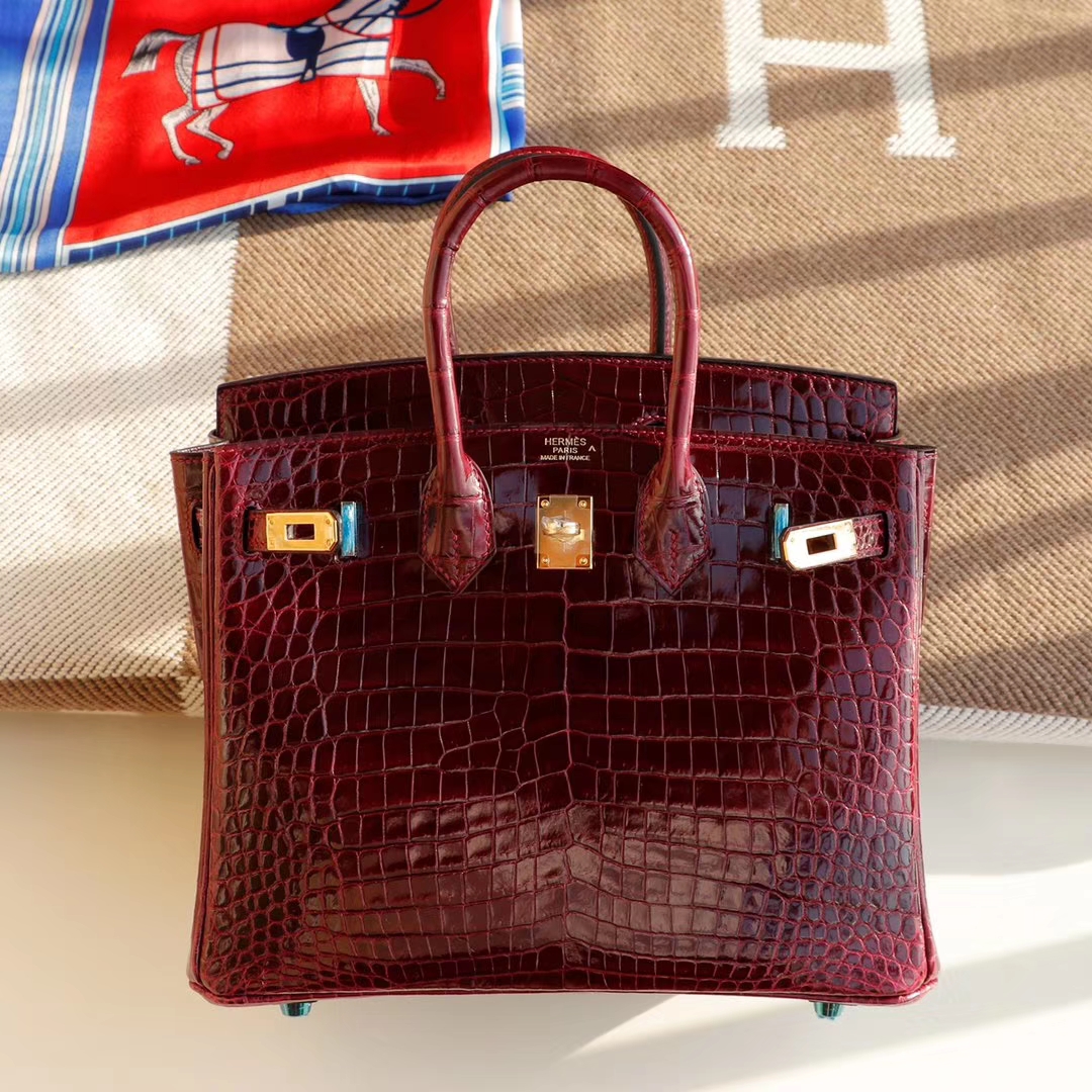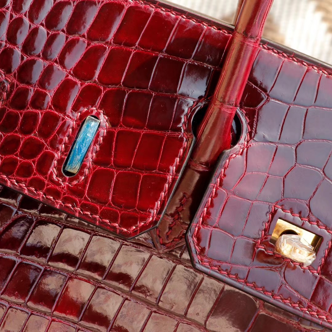 爱马仕 CK57波尔多酒红 金扣 Birkin25CM 亮面鳄鱼 总监纯手缝蜡线缝制 铂金包 2024年11月21日 0 广州白云皮具 | 微信号:S1388813888 HERMES CK57波尔多酒红 金扣 Birkin25CM 亮面鳄鱼 总监纯手缝蜡线缝制 铂金包
