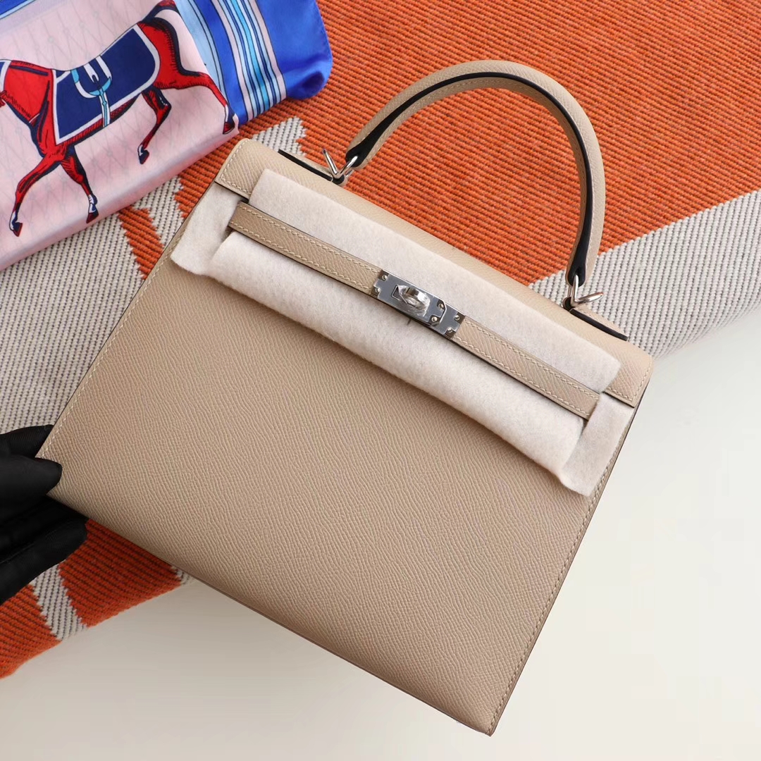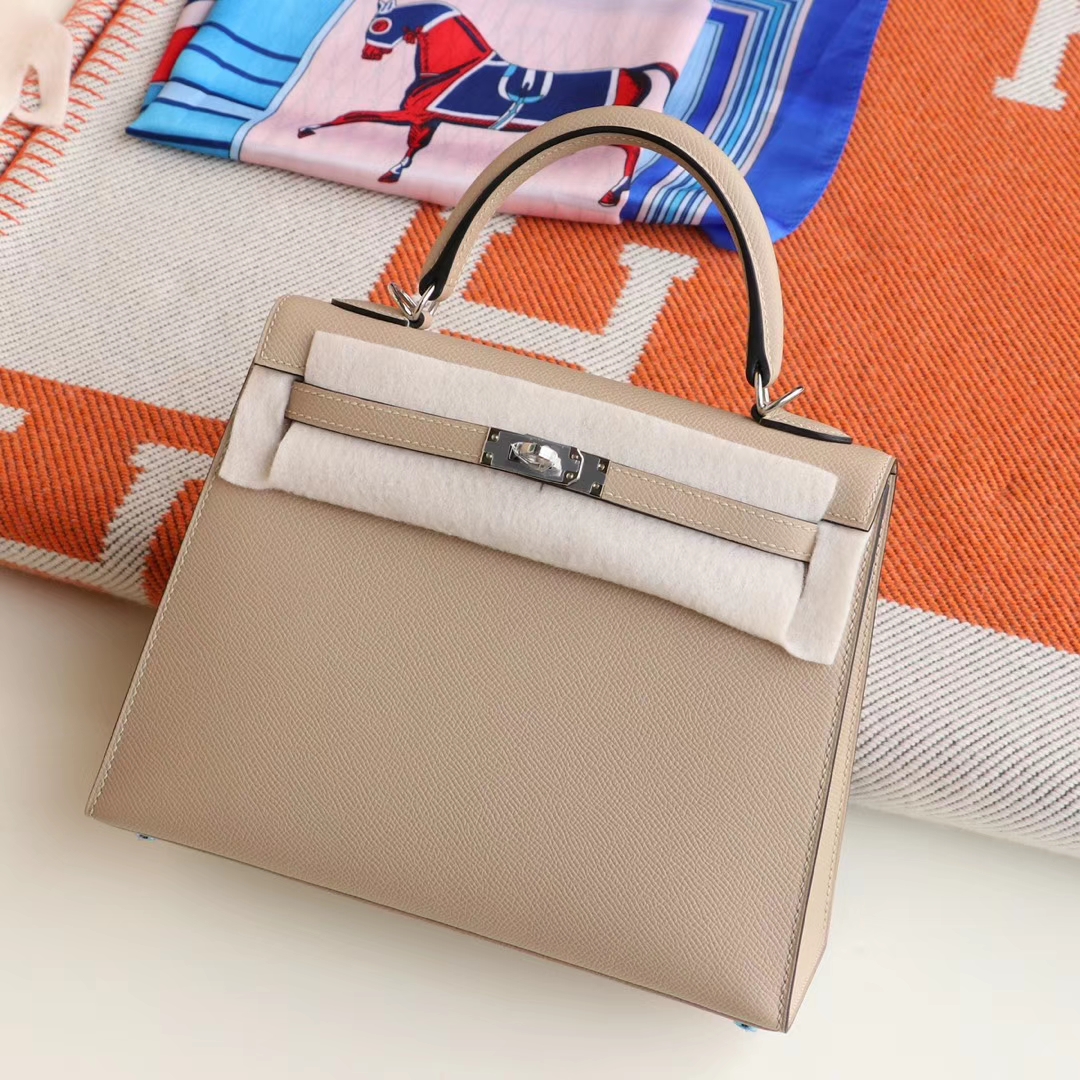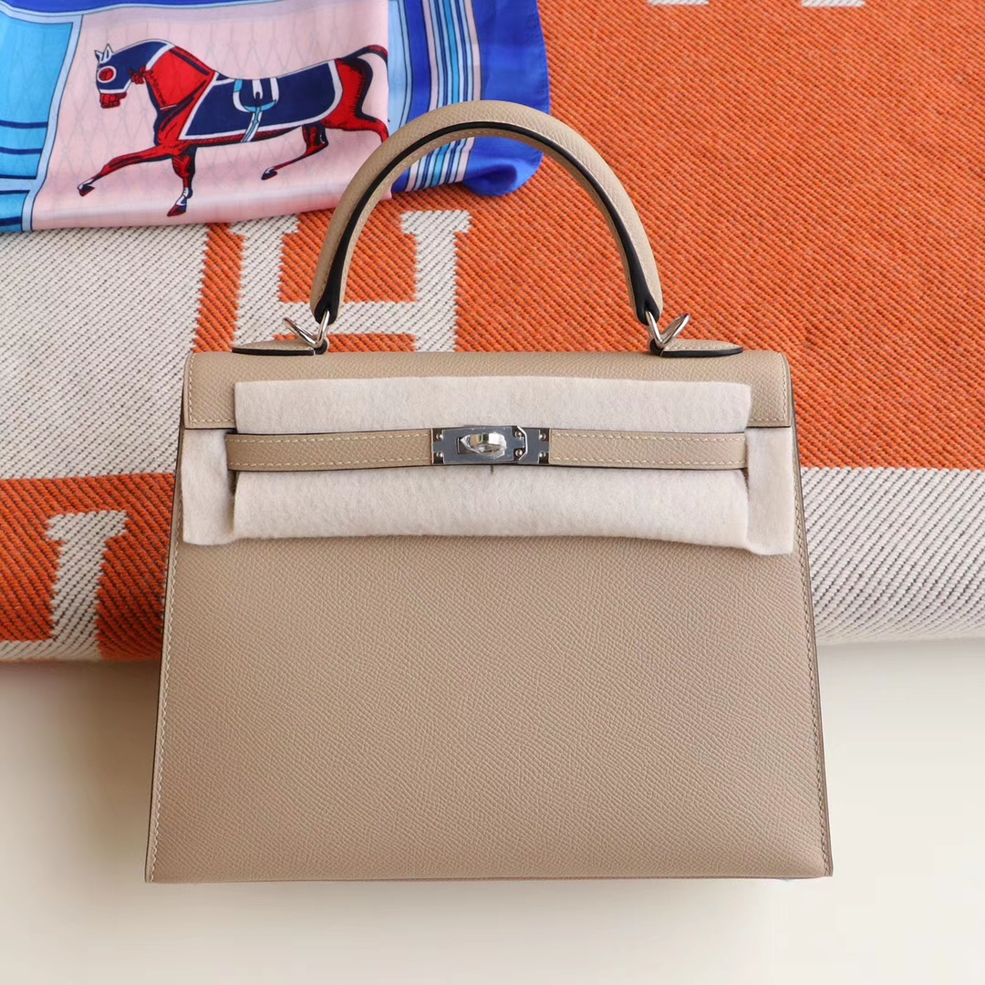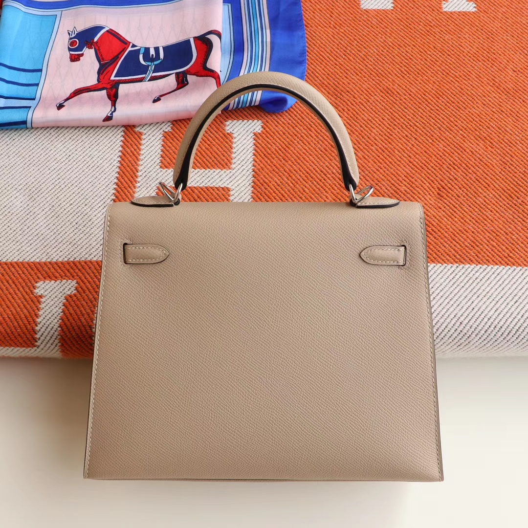 Baiyun Leather City HERMES S2 Trench Coat Gray, Silver Button, Kelly 25CM, Original Factory Epsom Leather, Kelly Bag