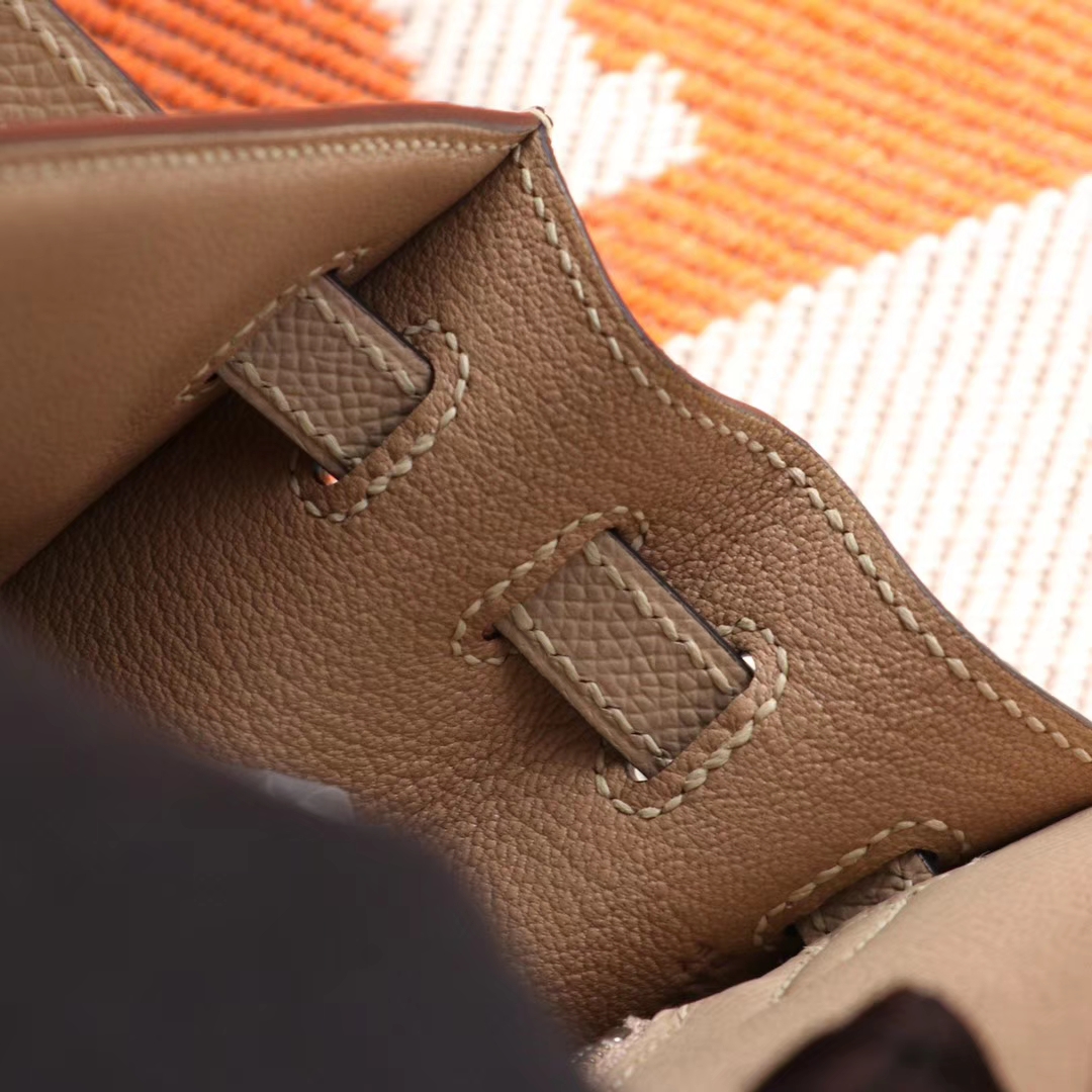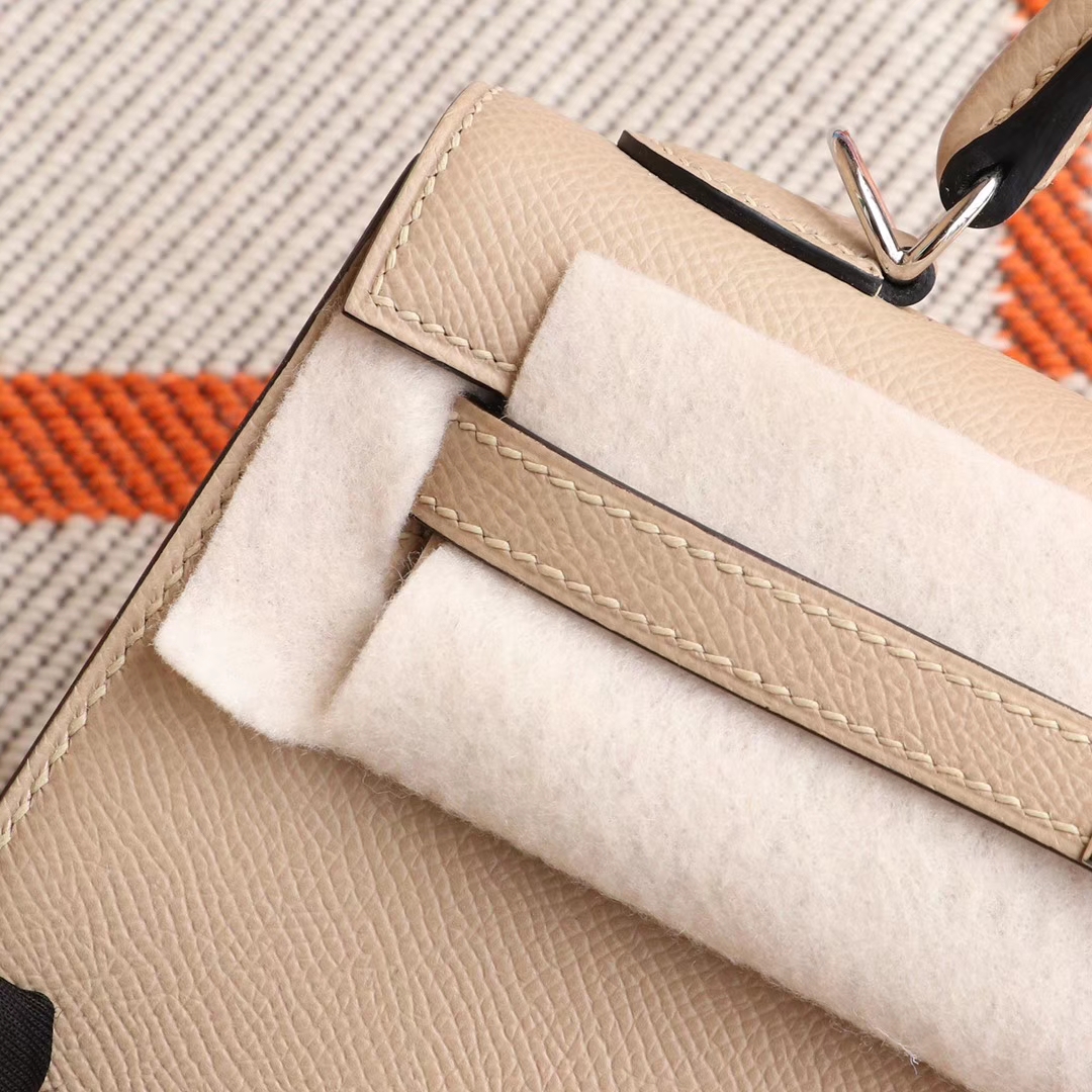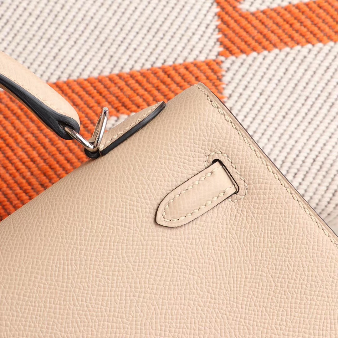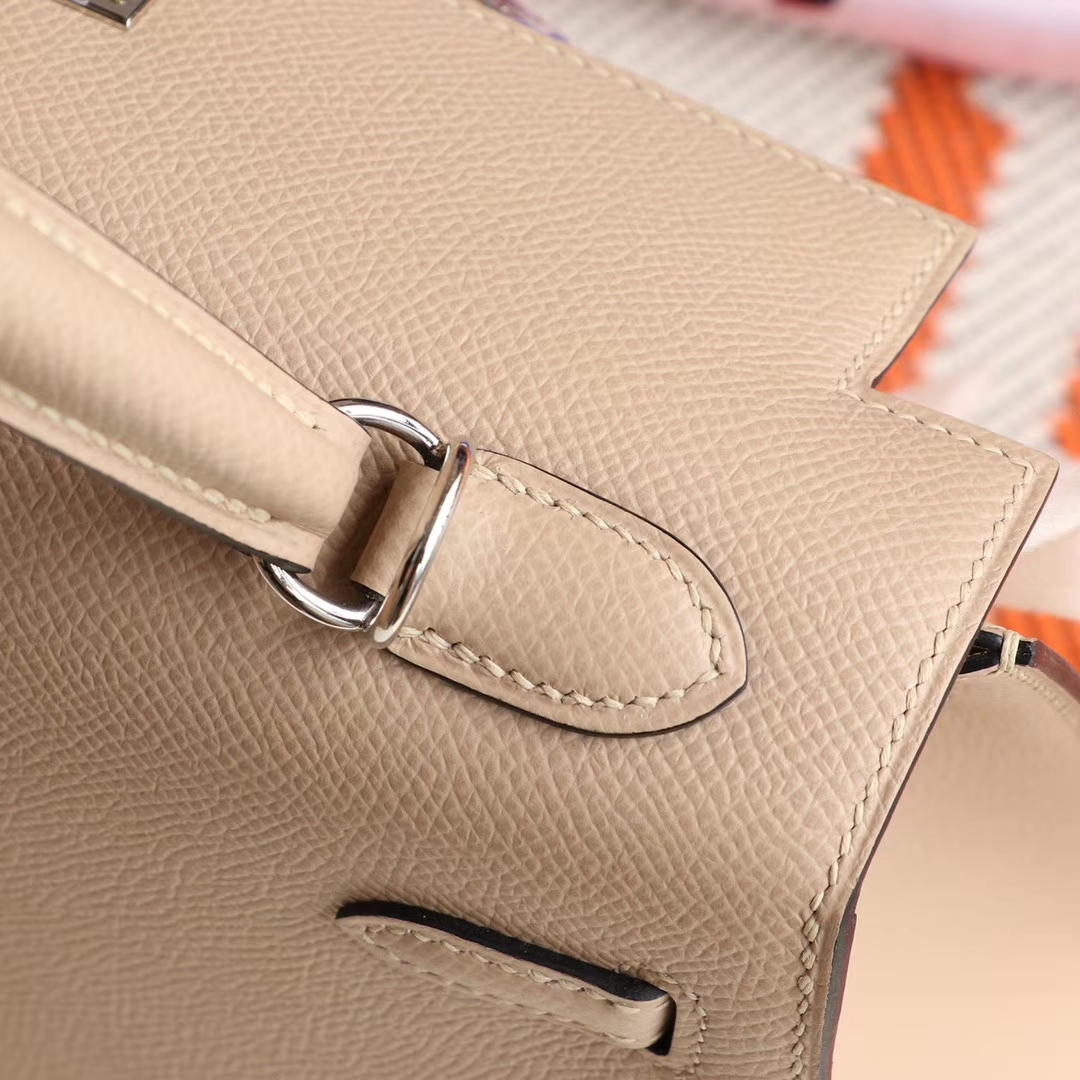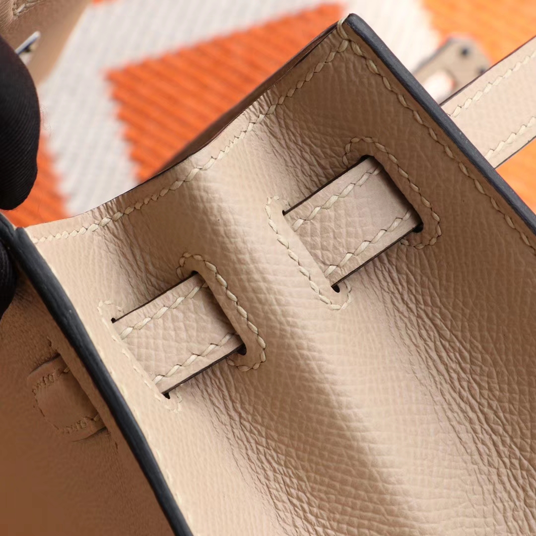 Baiyun Leather City HERMES S2 Trench Coat Gray, Silver Button, Kelly 25CM, Original Factory Epsom Leather, Kelly Bag