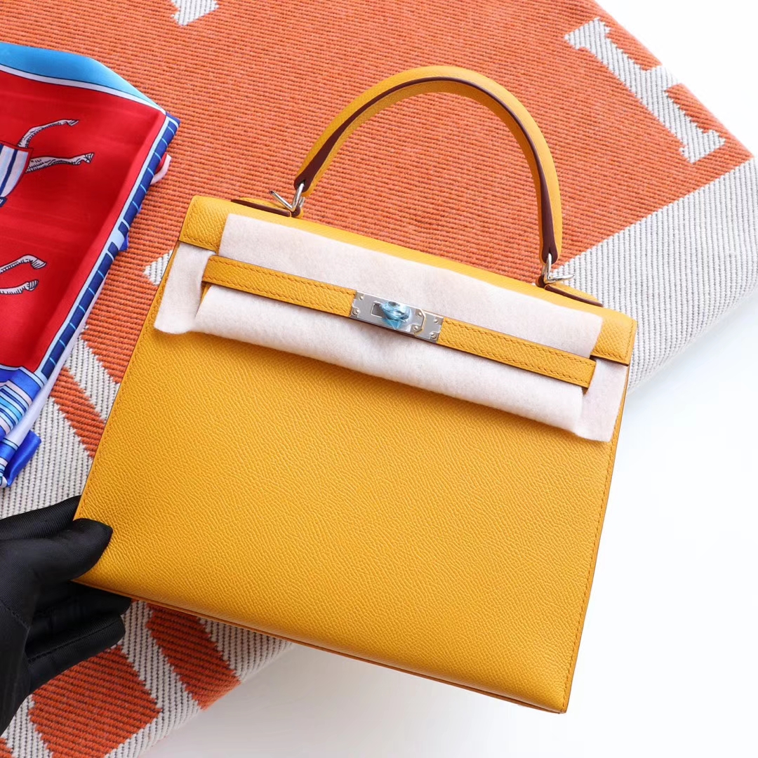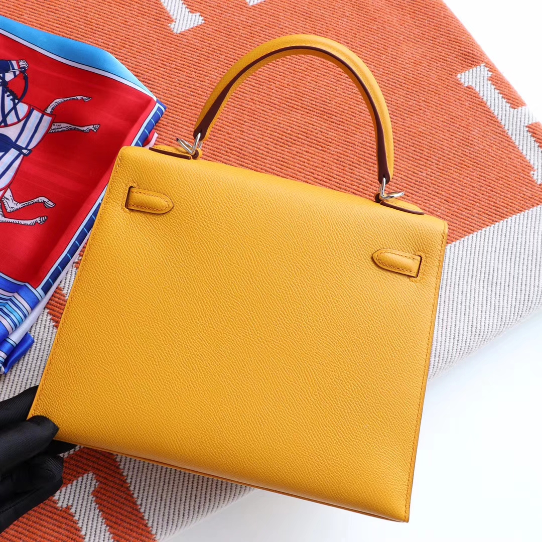 Guangzhou Baiyun Leather Goods City, Hermès, 9D Amber Yellow Kelly 25CM, original factory Epsom leather, Kelly bag