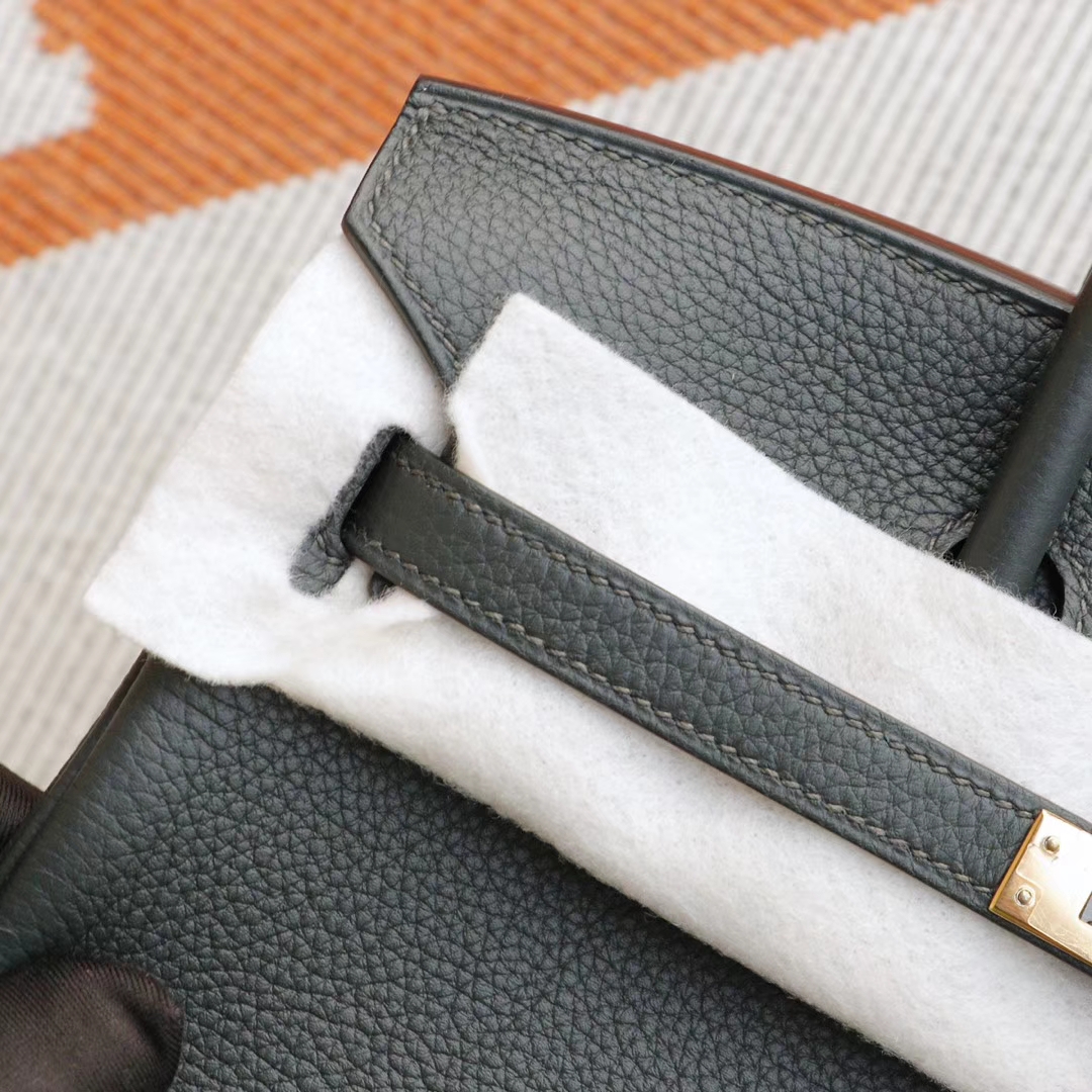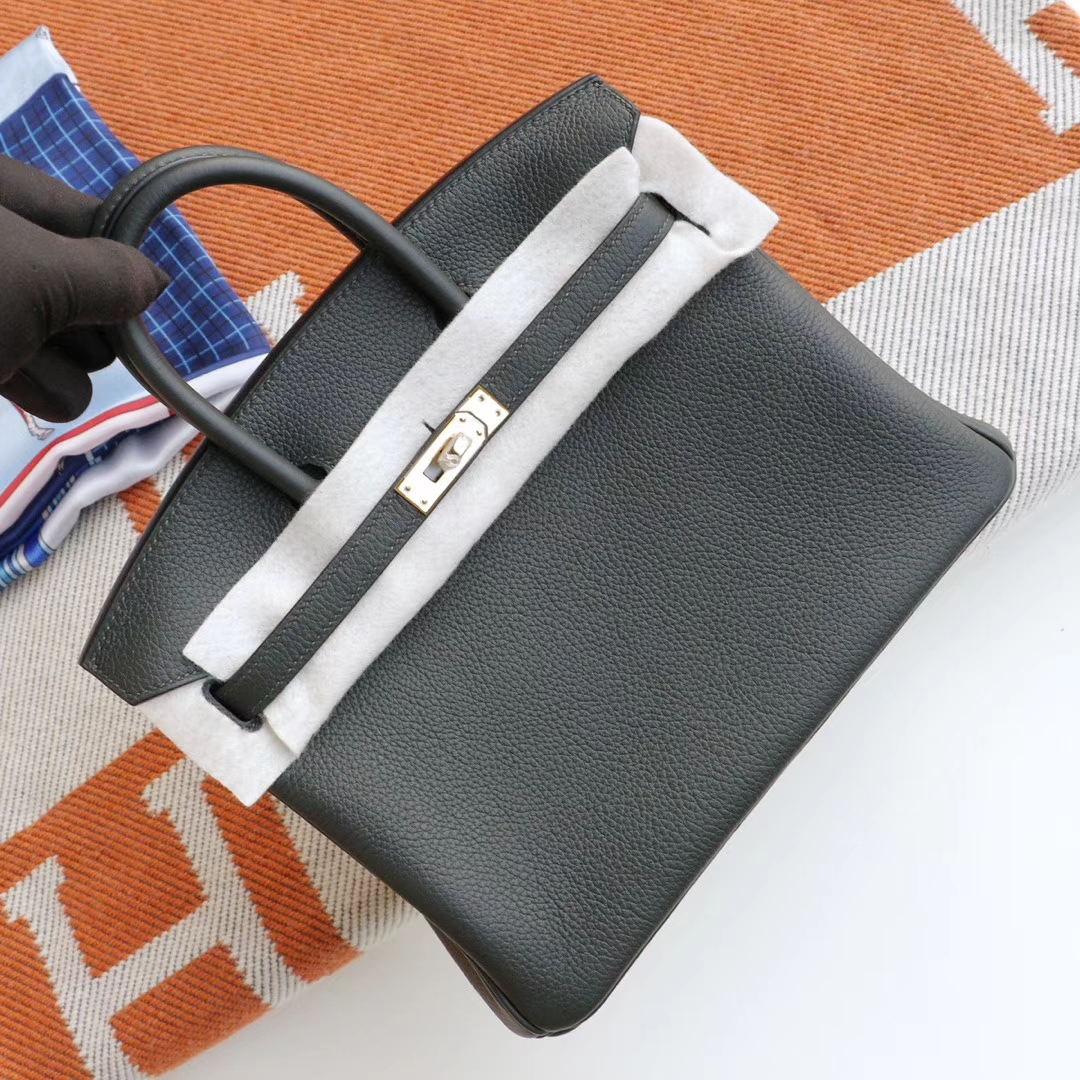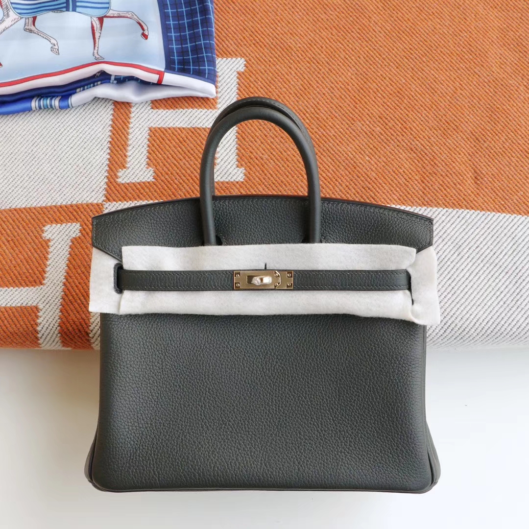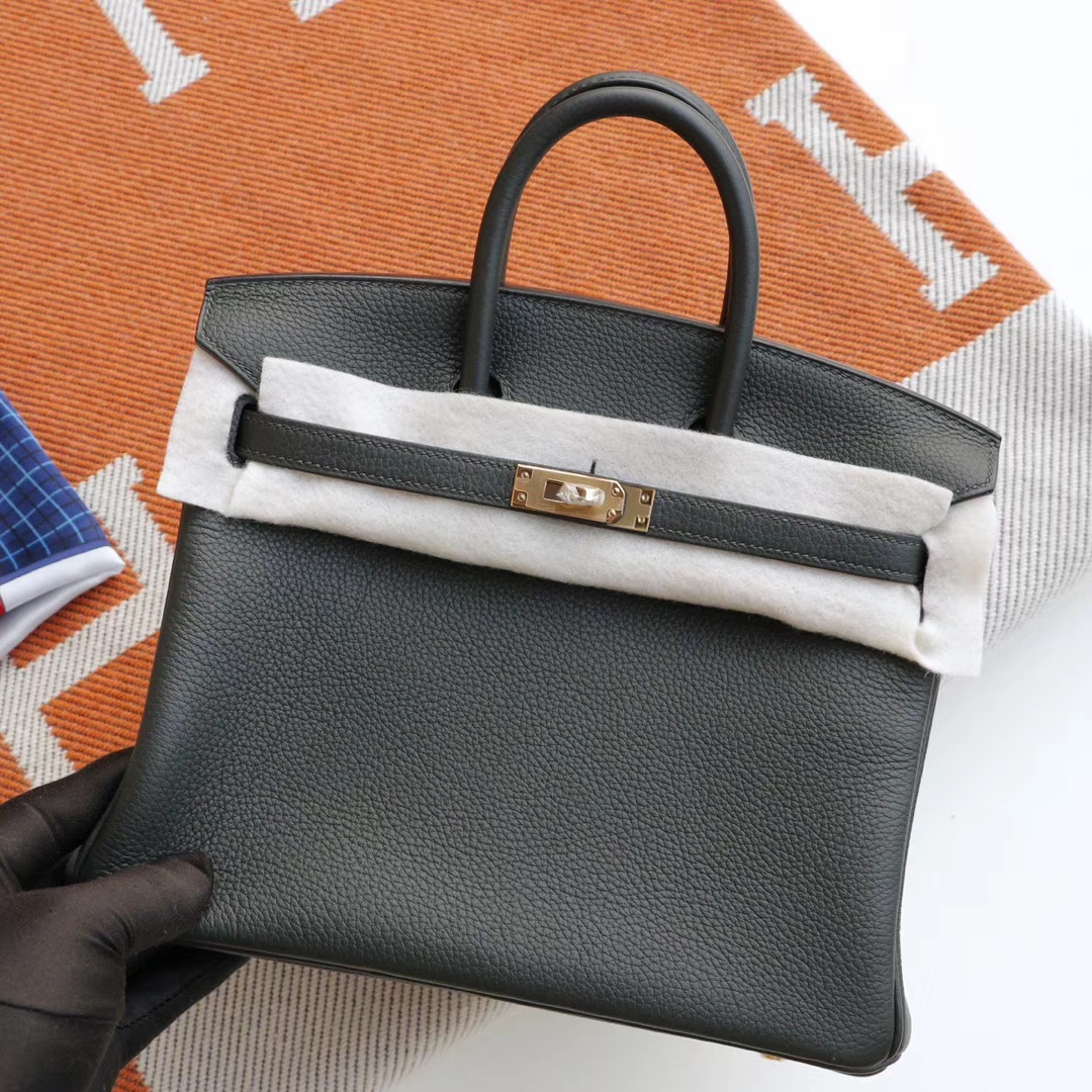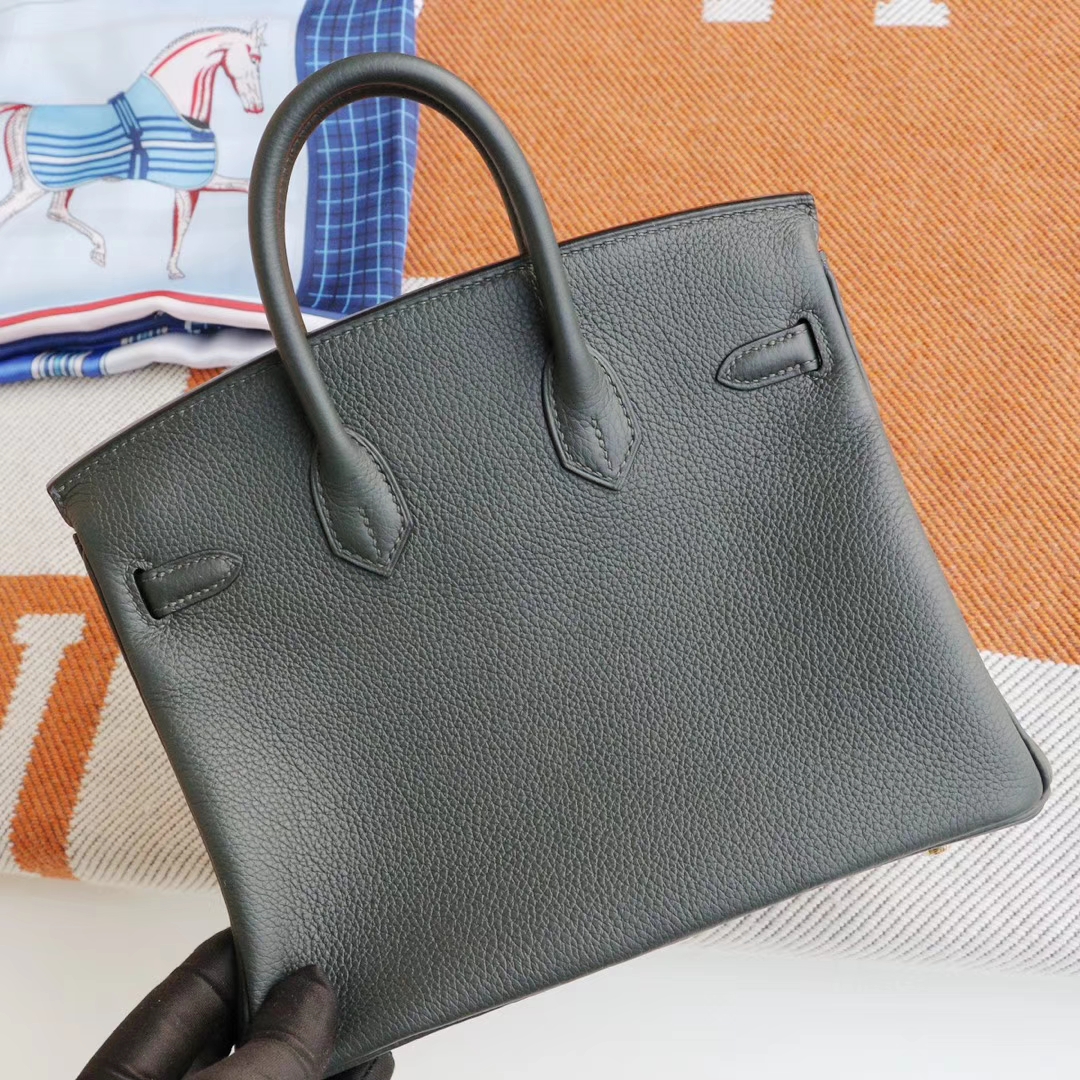 Guangzhou Baiyun Leather City HERMES 6O Pine Green Birkin 25CM Platinum Bag, French Togo Leather, Gold Hardware