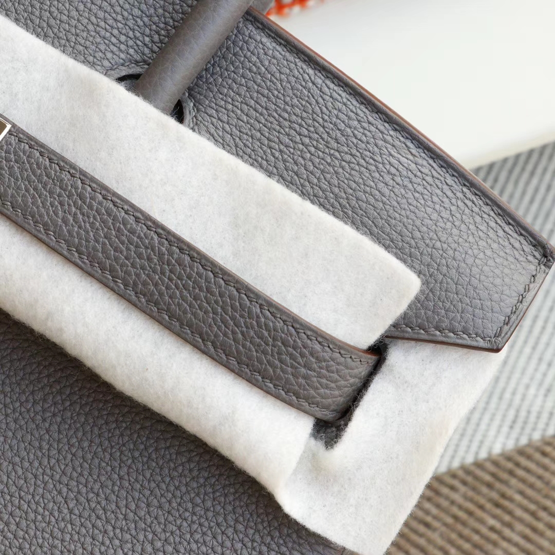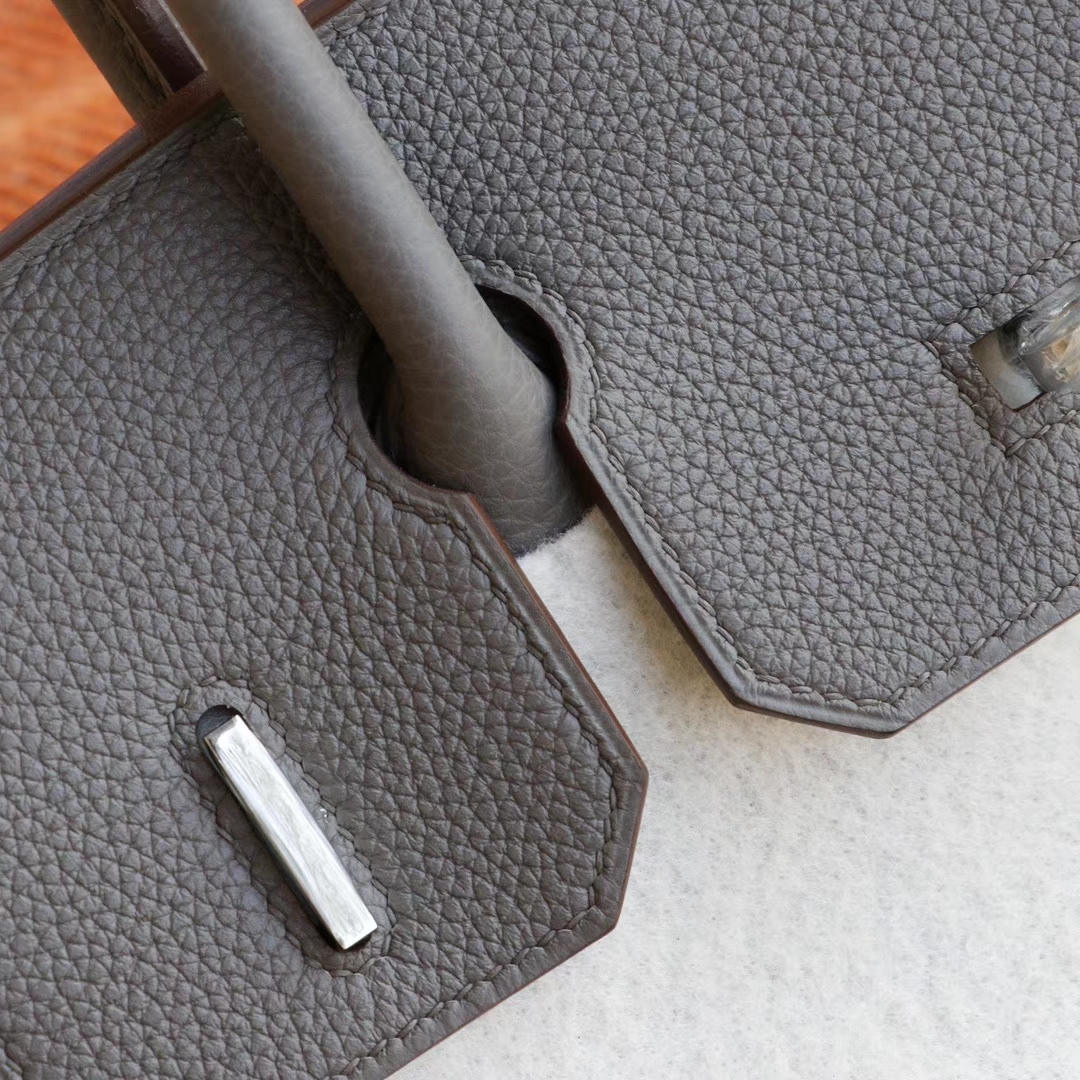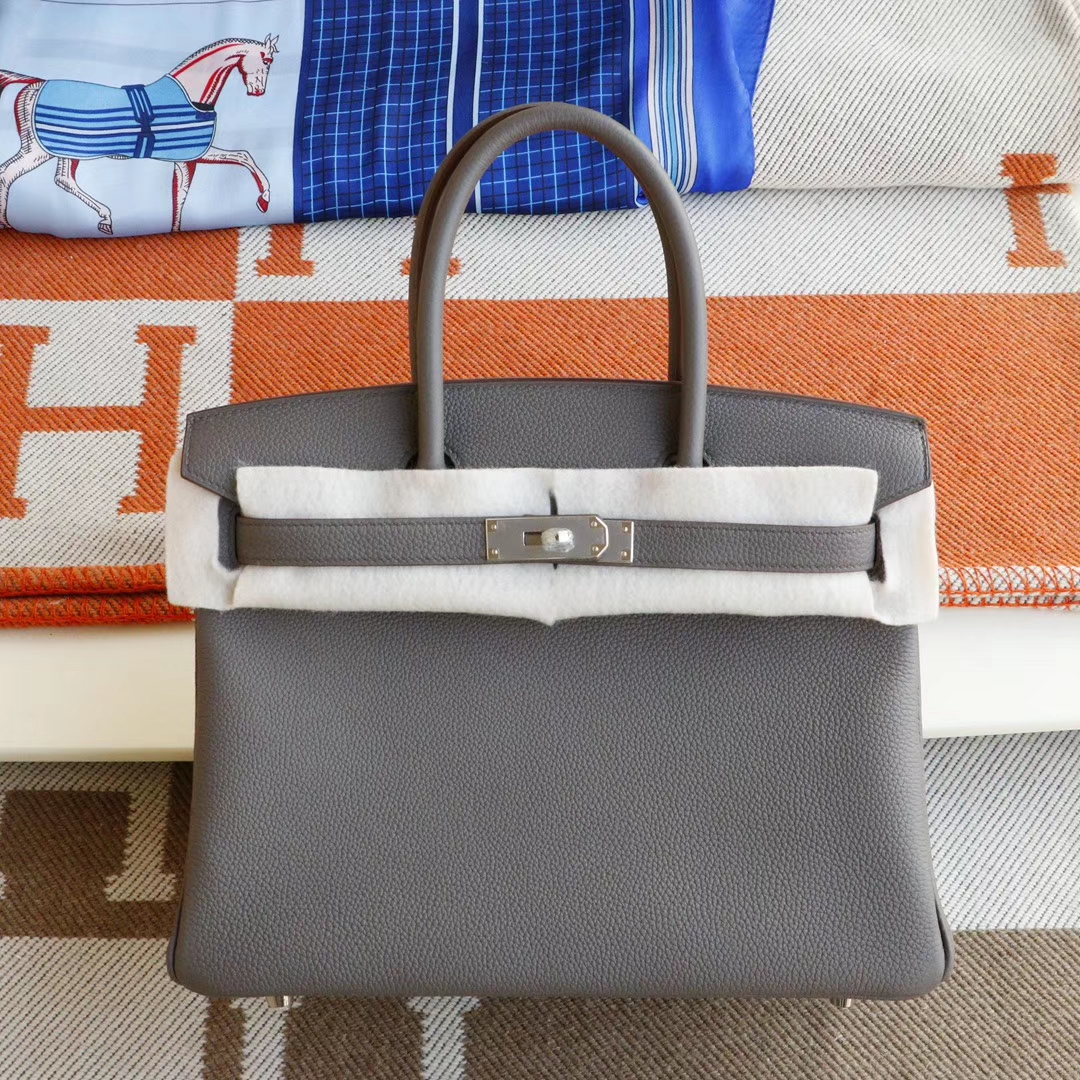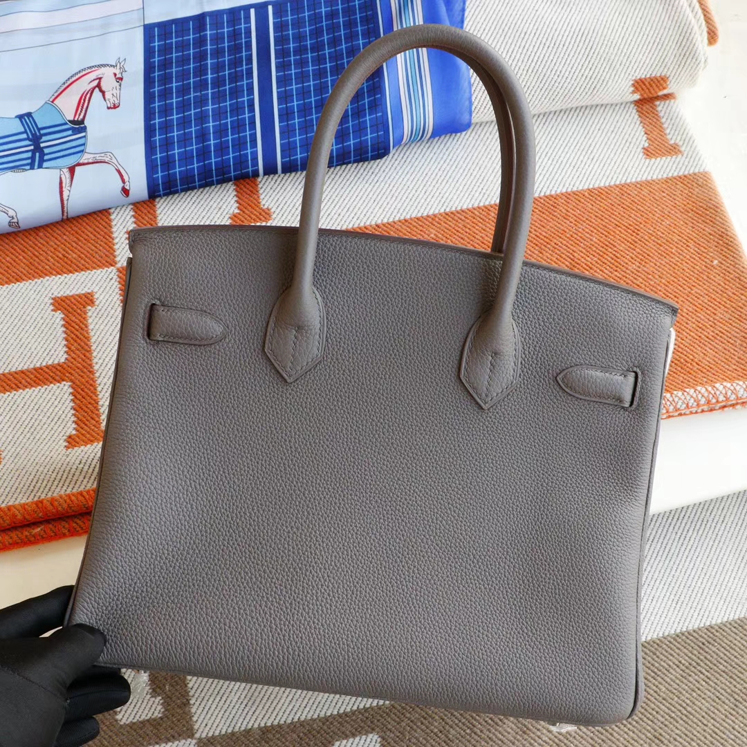 Luxury handbags in Guangzhou. HERMES 8F pewter grey with gold hardware, birkin 30CM, original factory Togo leather, Birkin bag