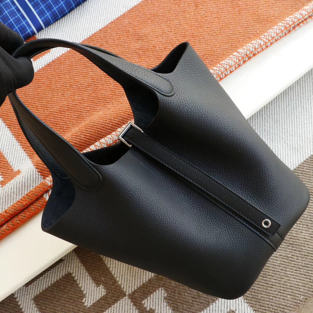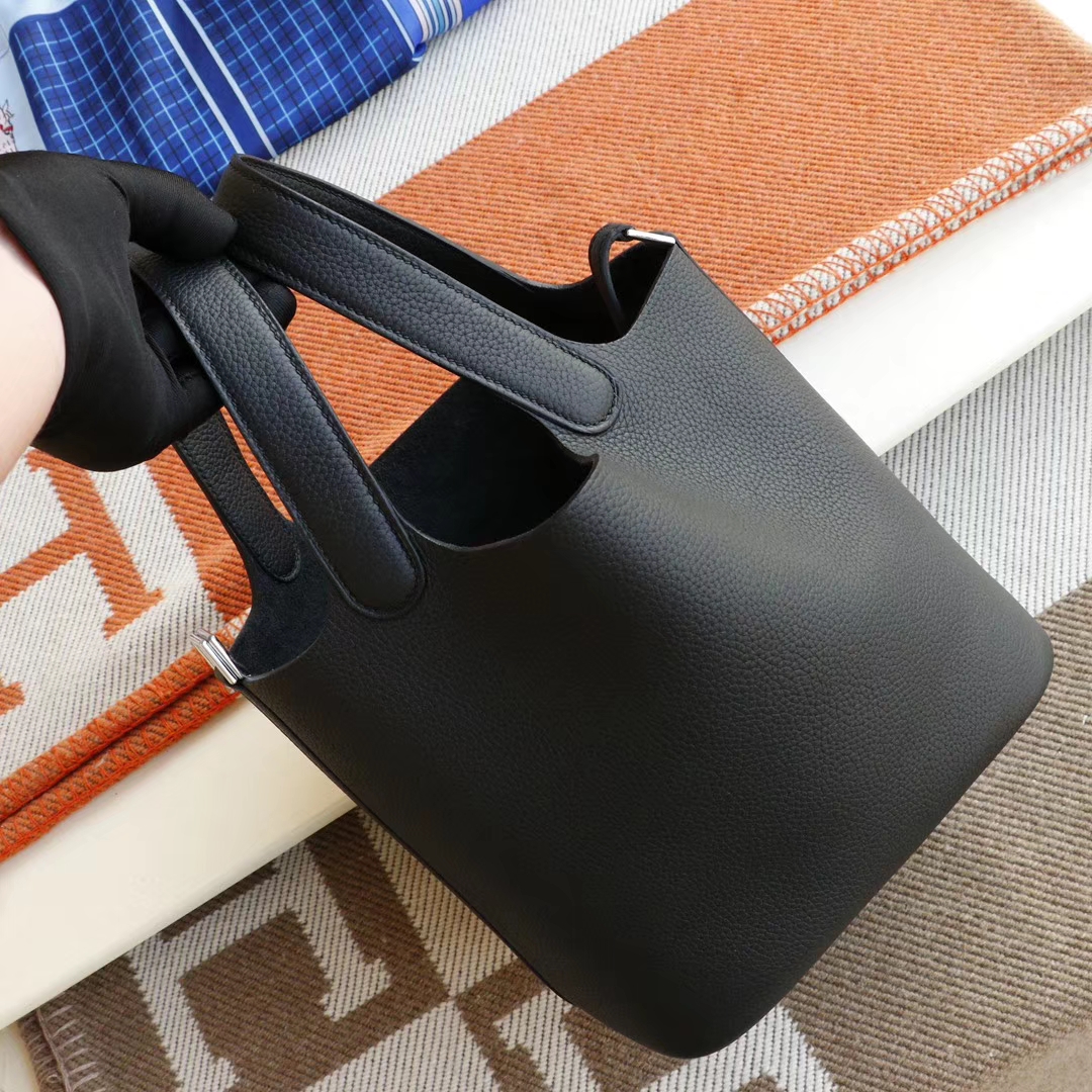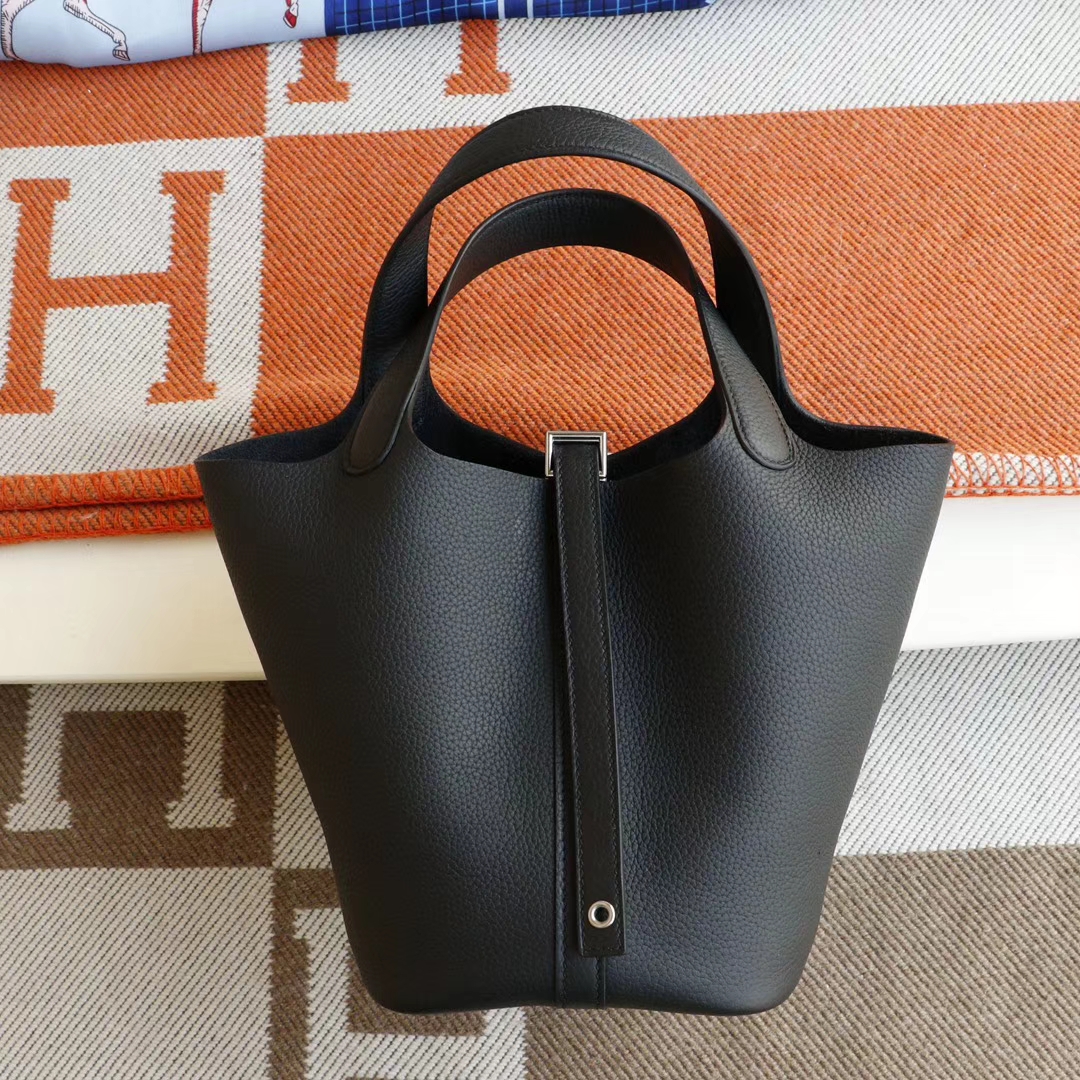 HERMES black with silver buckle Picotin Lock Shopping Basket 18CM, original factory TC leather 2025年06月18日 0 Guangzhou Baiyun Leather Goods | WeChat ID: S1388813888 HERMES HERMES black with silver buckle Picotin Lock Shopping Basket 18CM, original factory TC leather