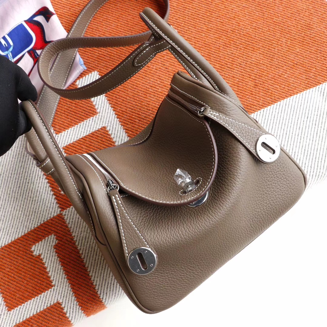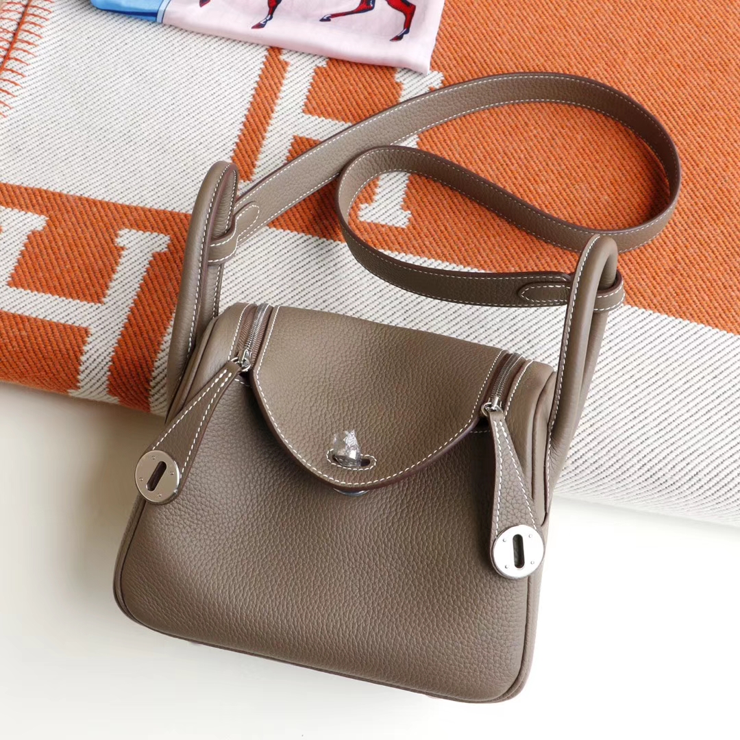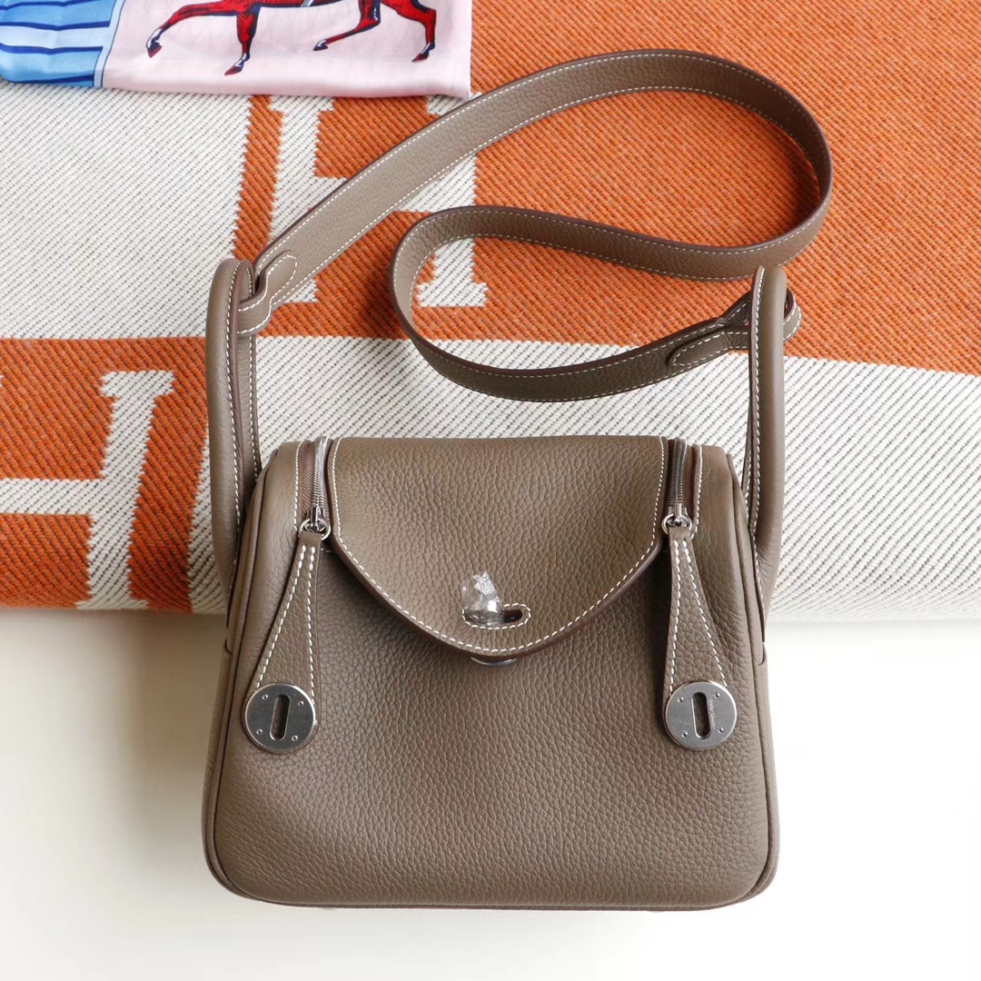Guangzhou Baiyun Leather Goods, Hermès CK18 Elephant Grey, Mini Lindy 20CM, French TC Leather, Hand-sewn Waxed Thread by H's Master Craftsman, Lindy Bag