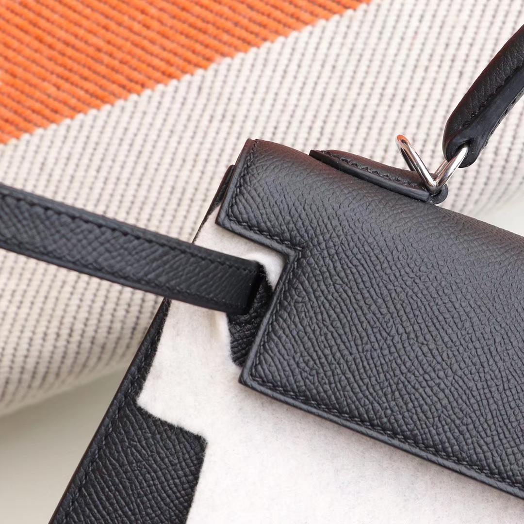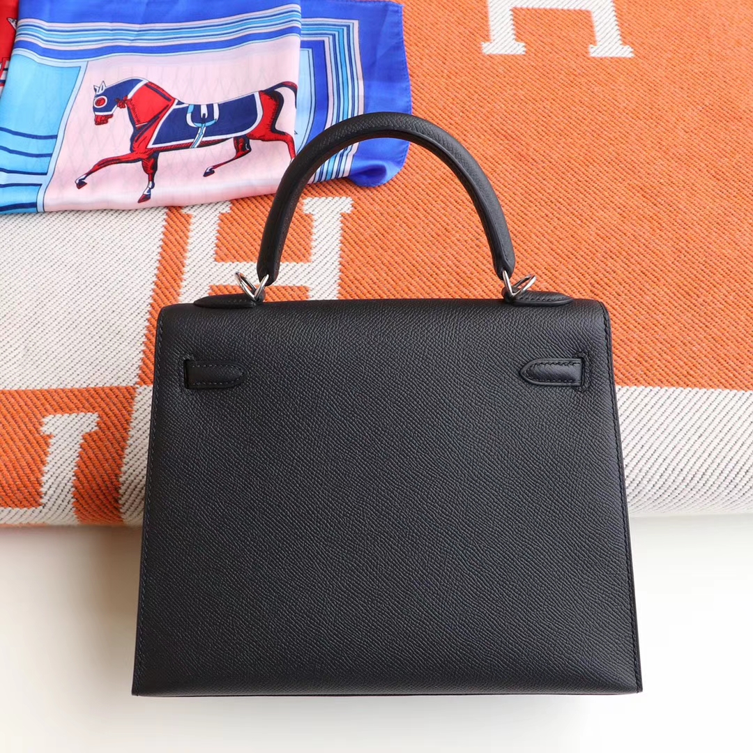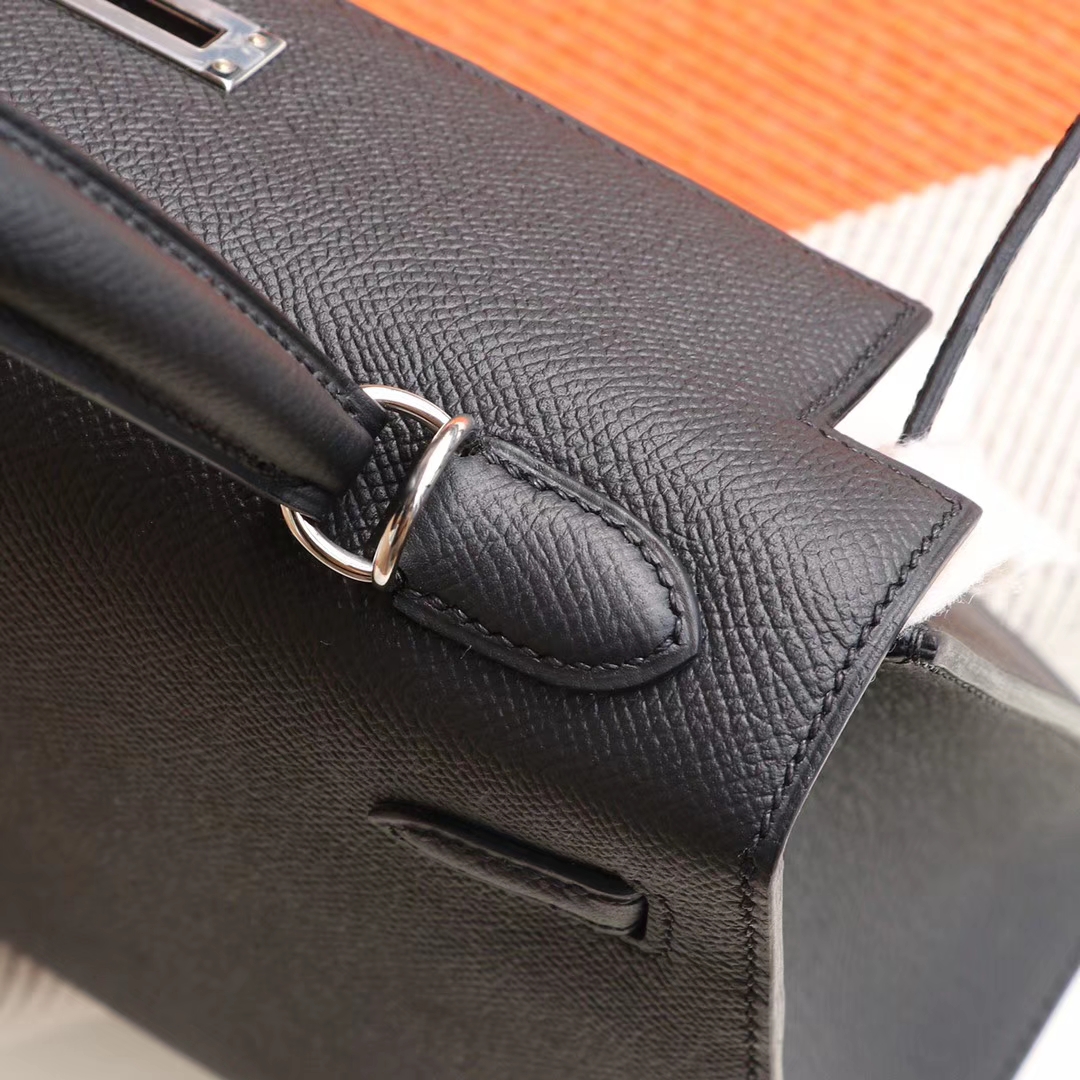 Guangzhou Baiyun Leather City HERMES CC89 Black Silver Buckle Kelly 25CM Original Factory Epsom Leather Hand-sewn Craftsmanship
