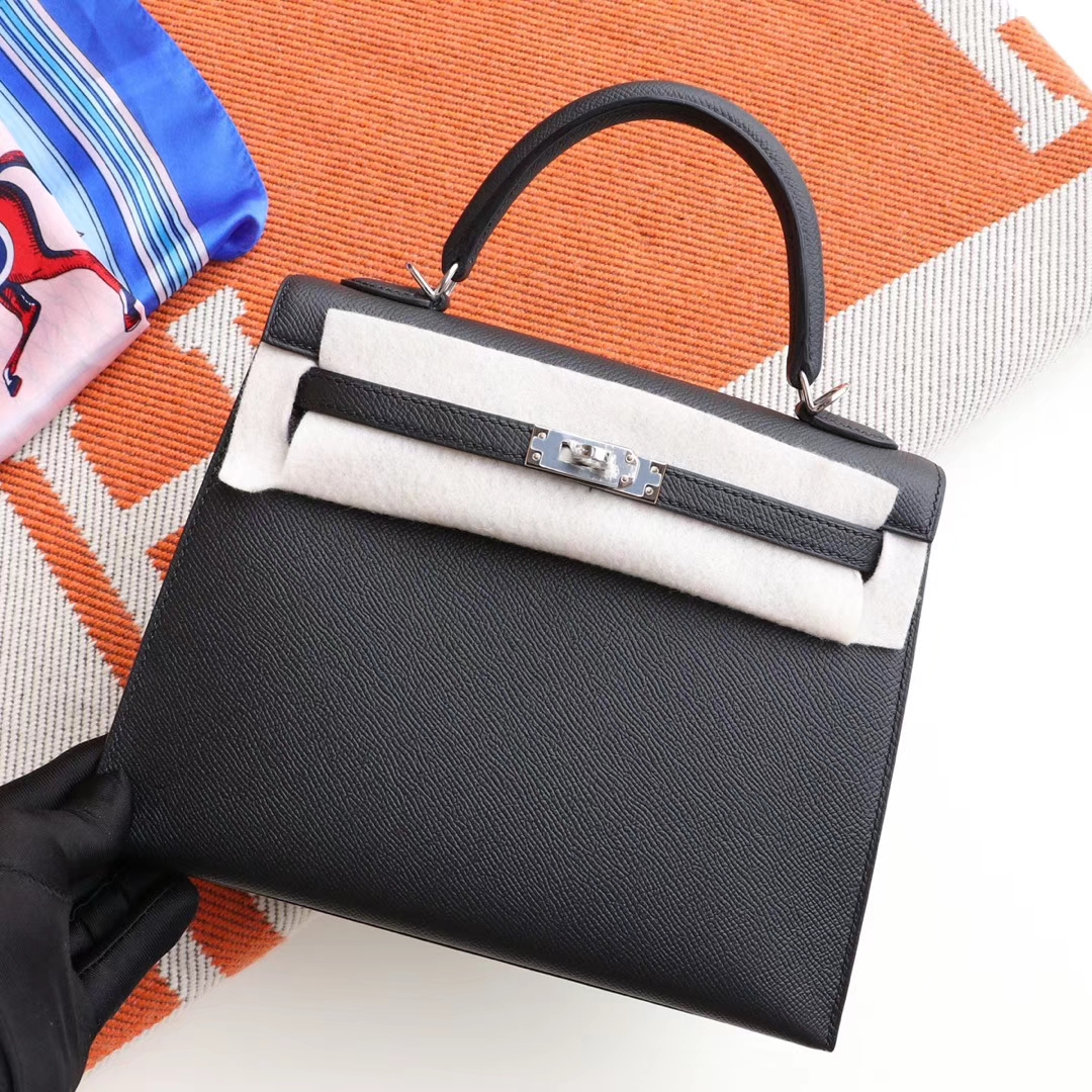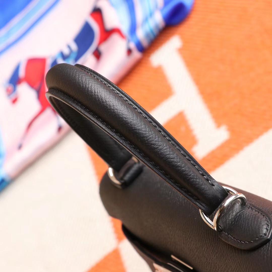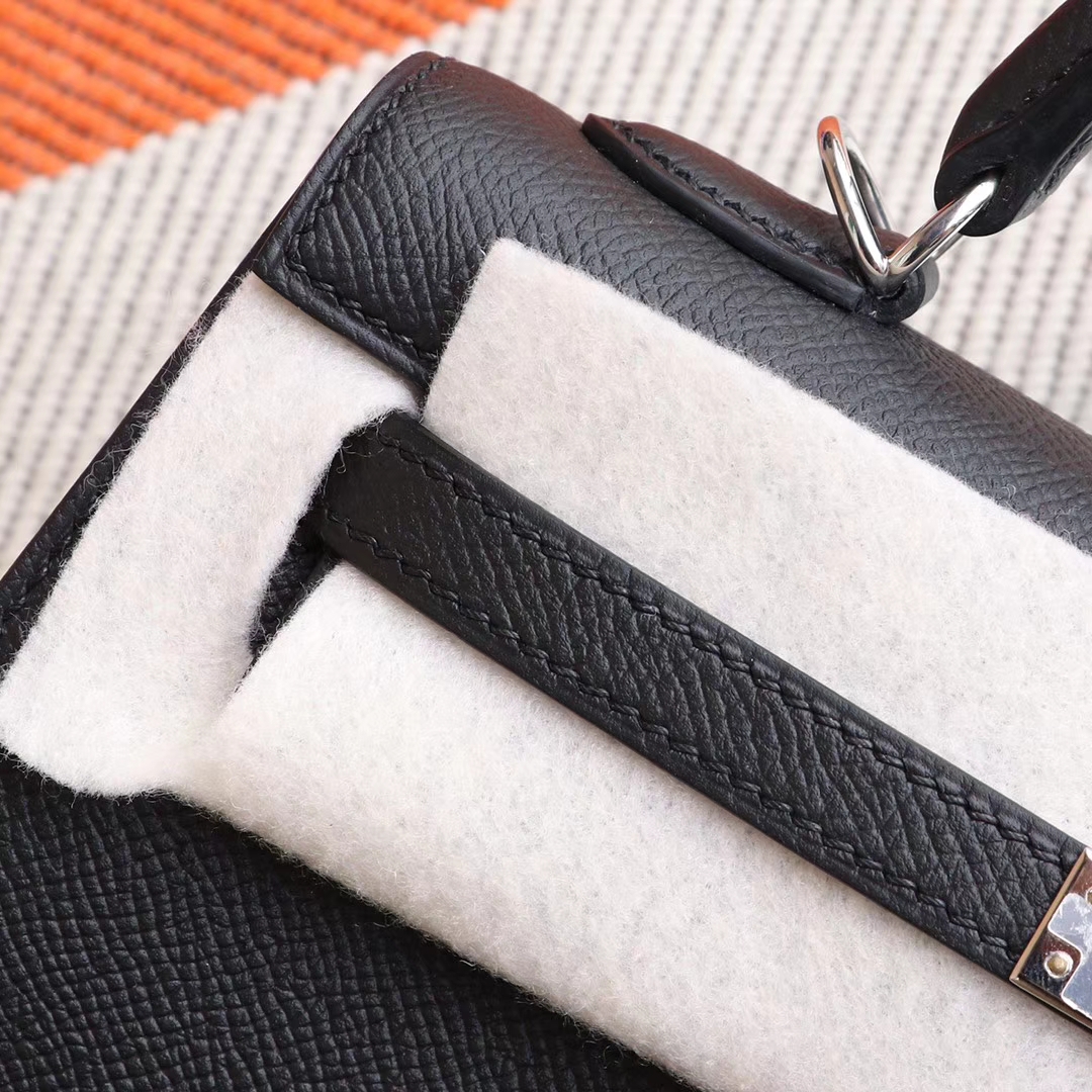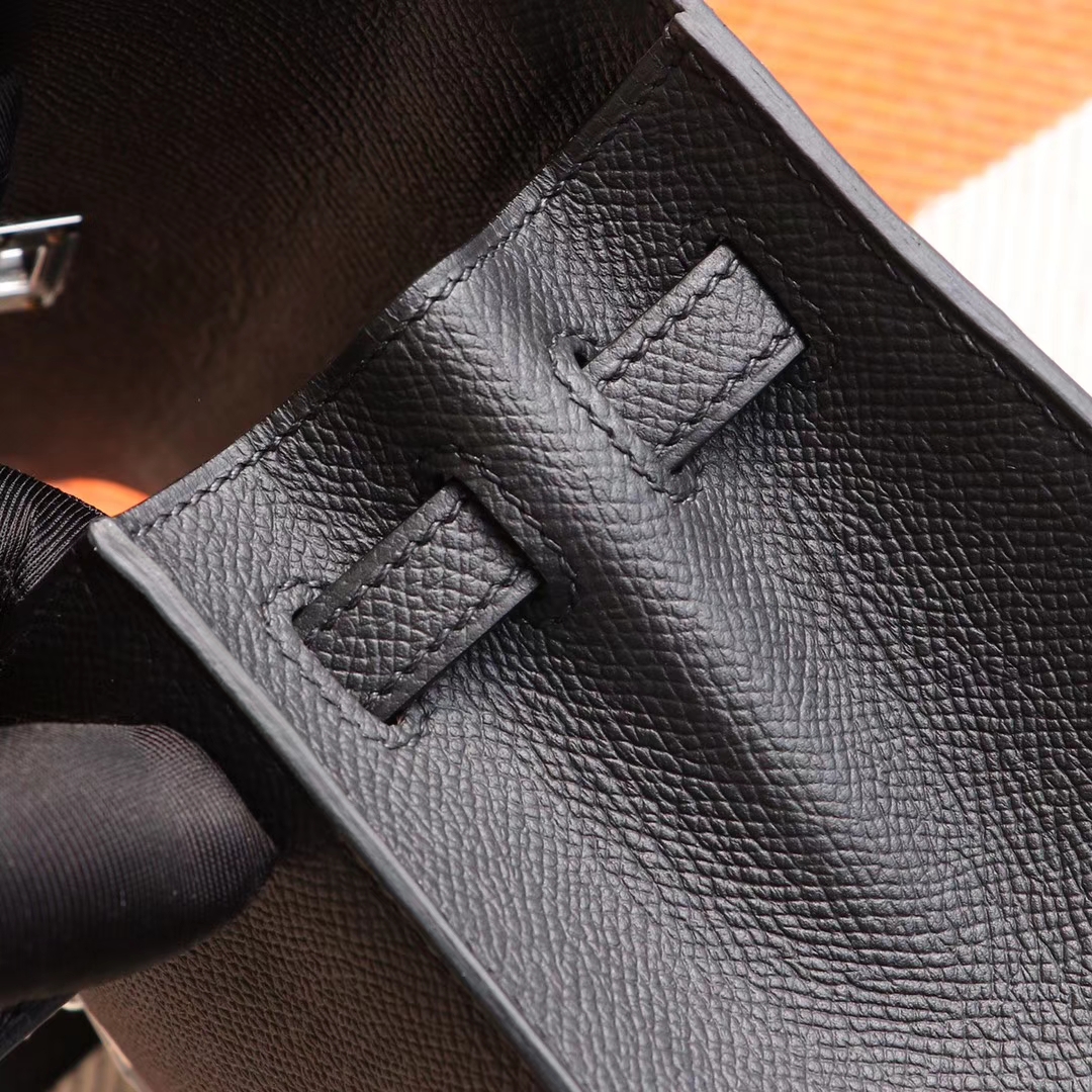 Guangzhou Baiyun Leather City HERMES CC89 Black Silver Buckle Kelly 25CM Original Factory Epsom Leather Hand-sewn Craftsmanship