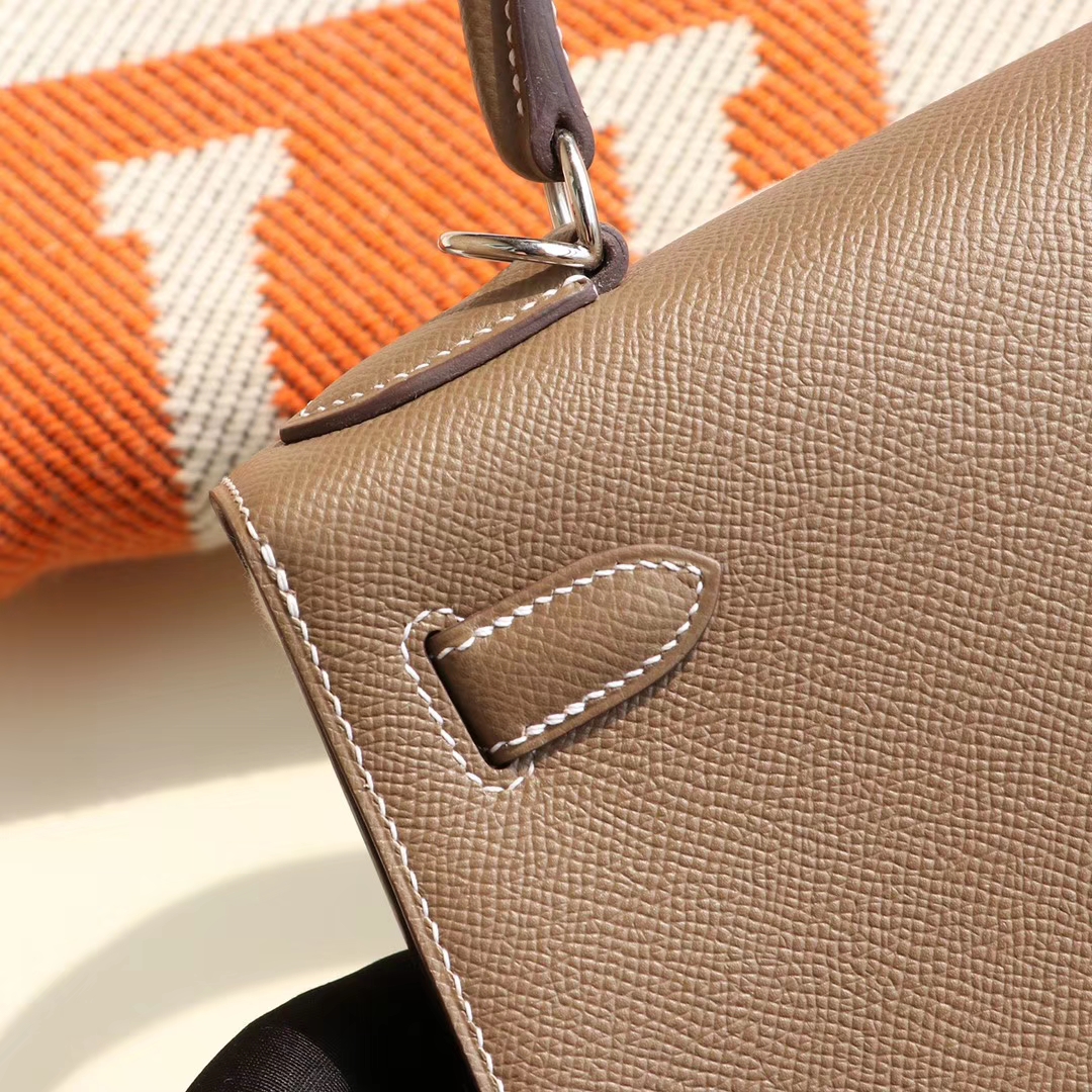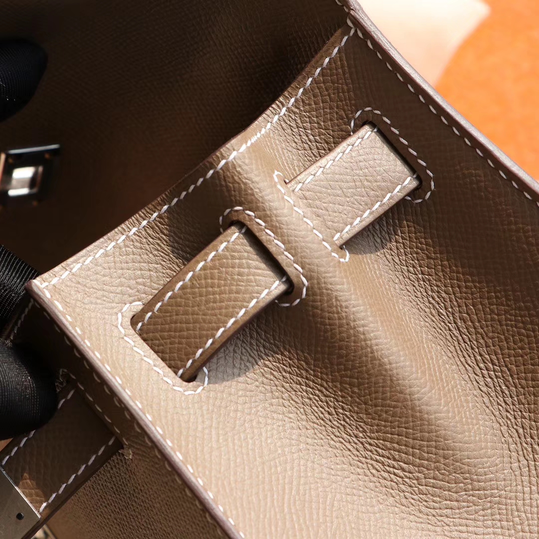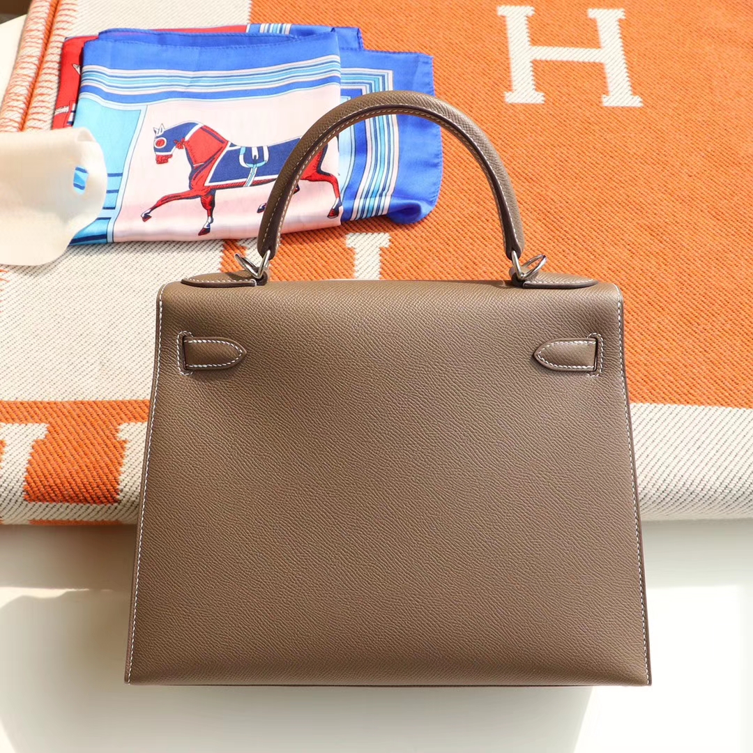 Guangzhou Baiyun Leather Goods Hermes CK18 Elephant Grey Silver Buckle Kelly 28CM Original Factory Epsom Leather Pure Handicraft