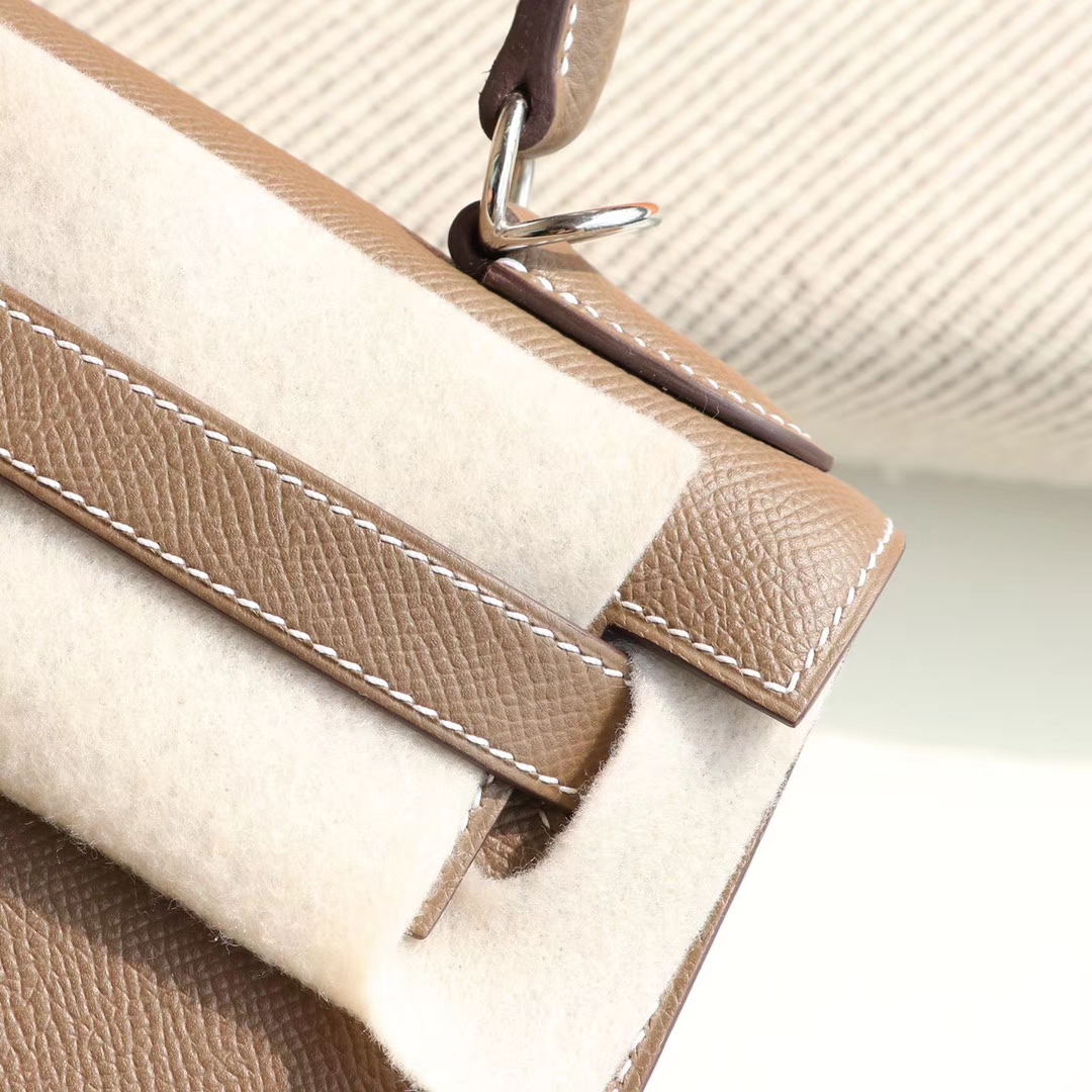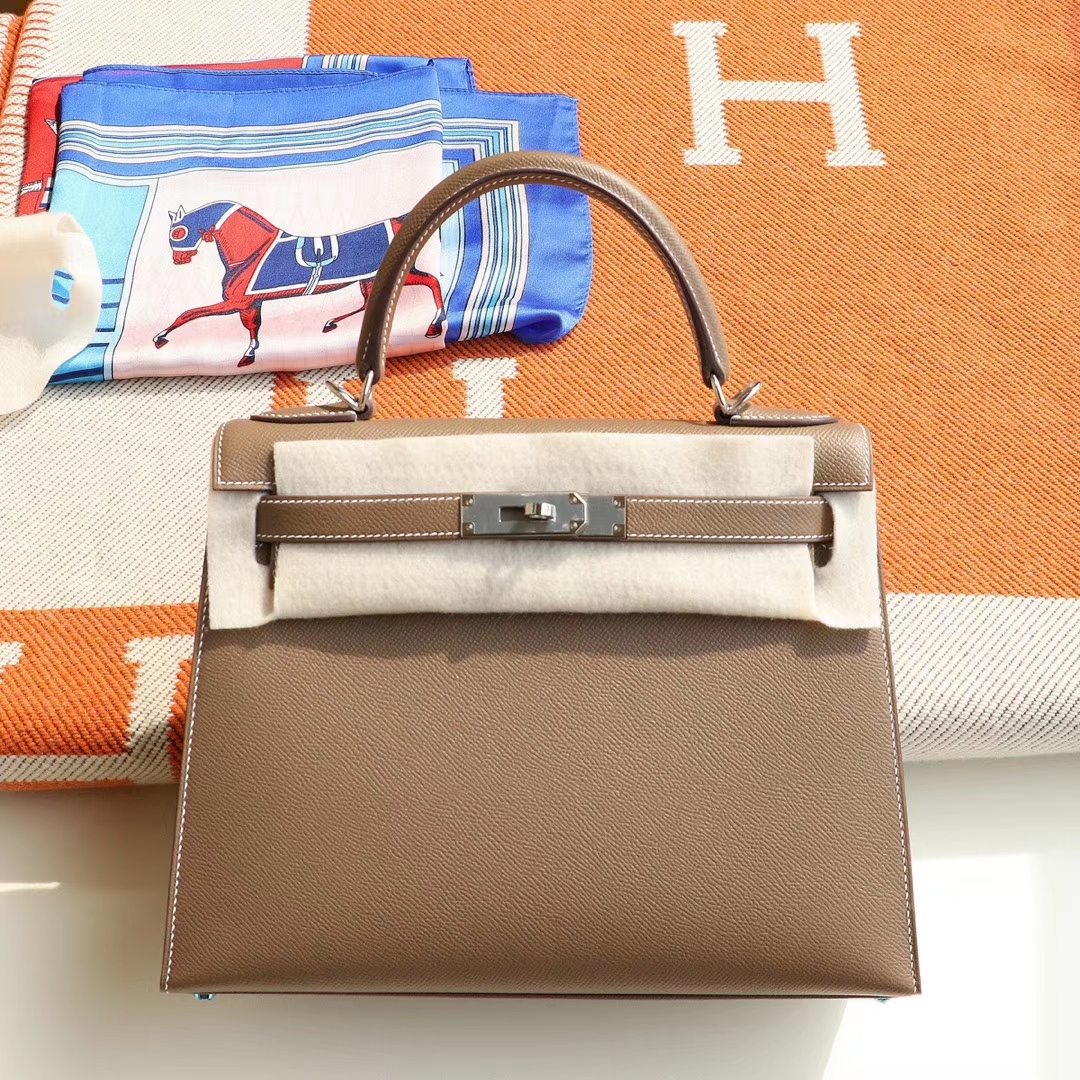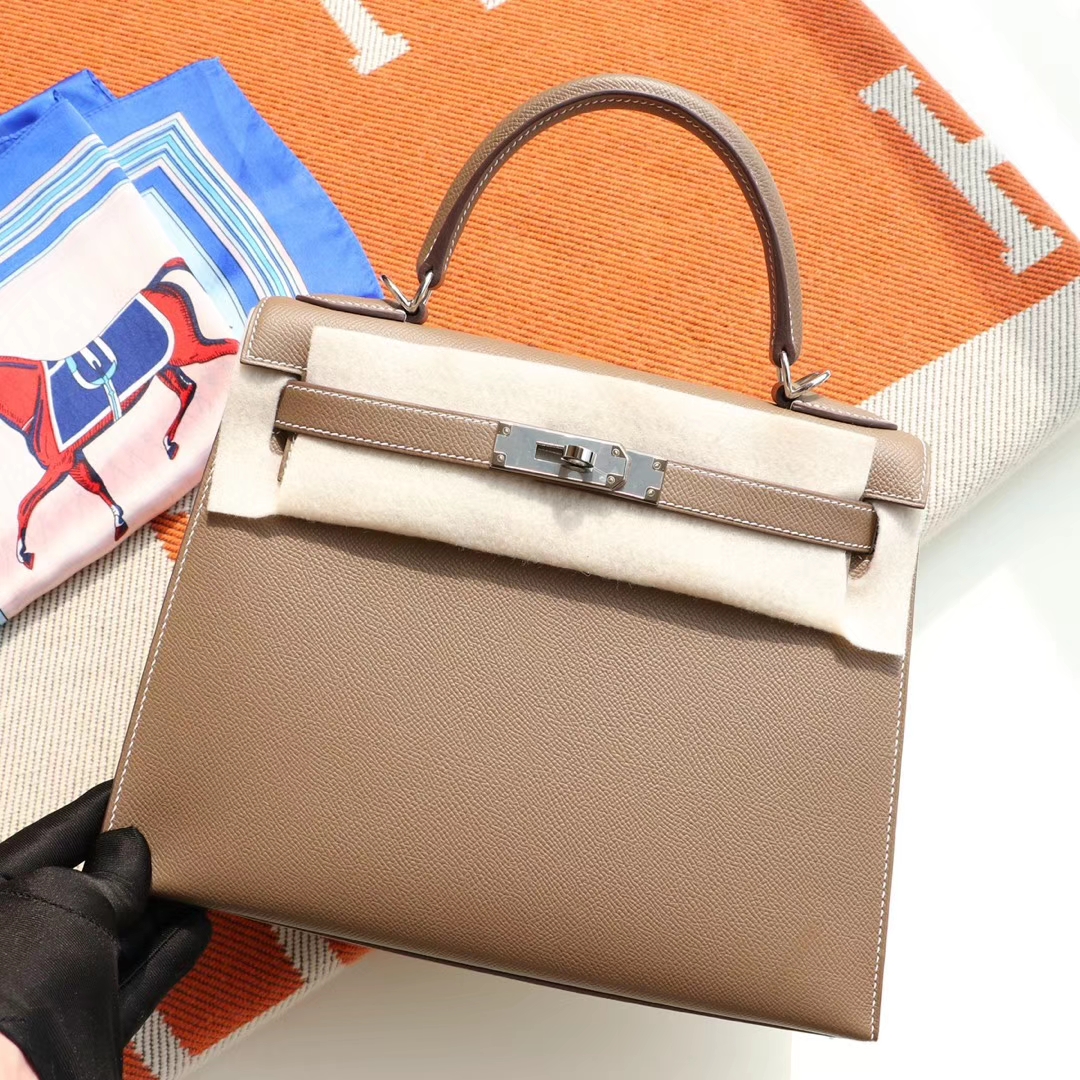 Guangzhou Baiyun Leather Goods Hermes CK18 Elephant Grey Silver Buckle Kelly 28CM Original Factory Epsom Leather Pure Handicraft