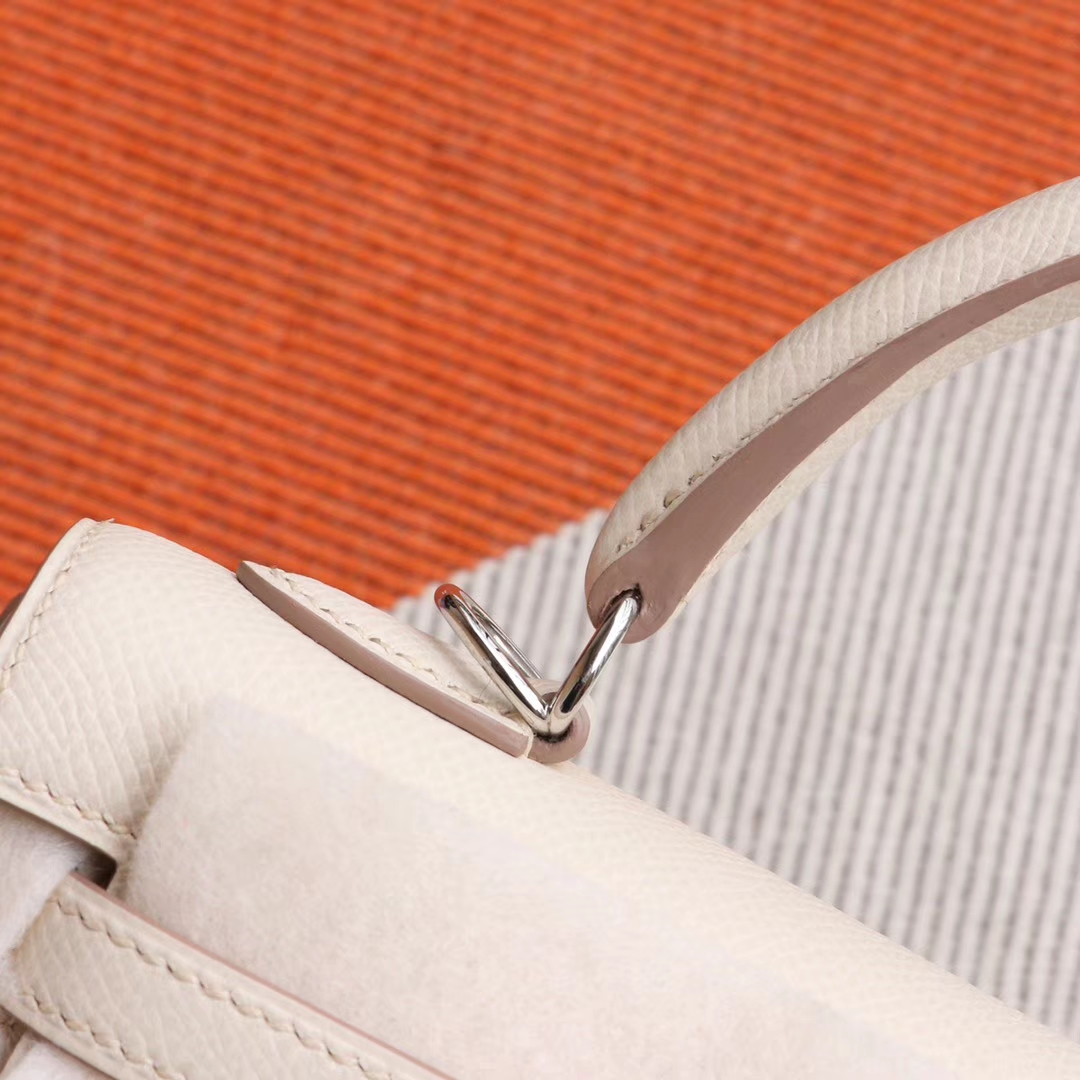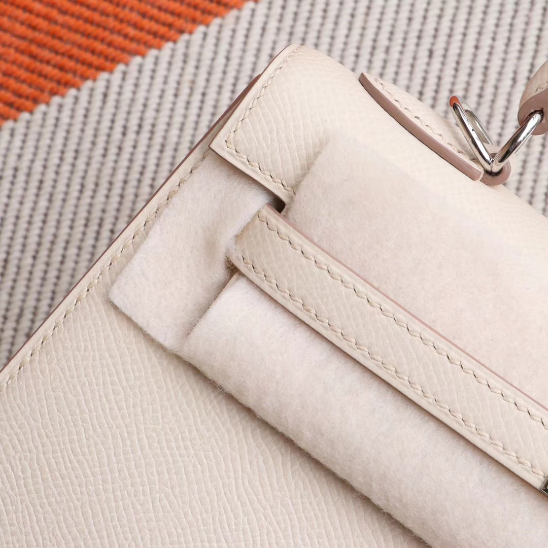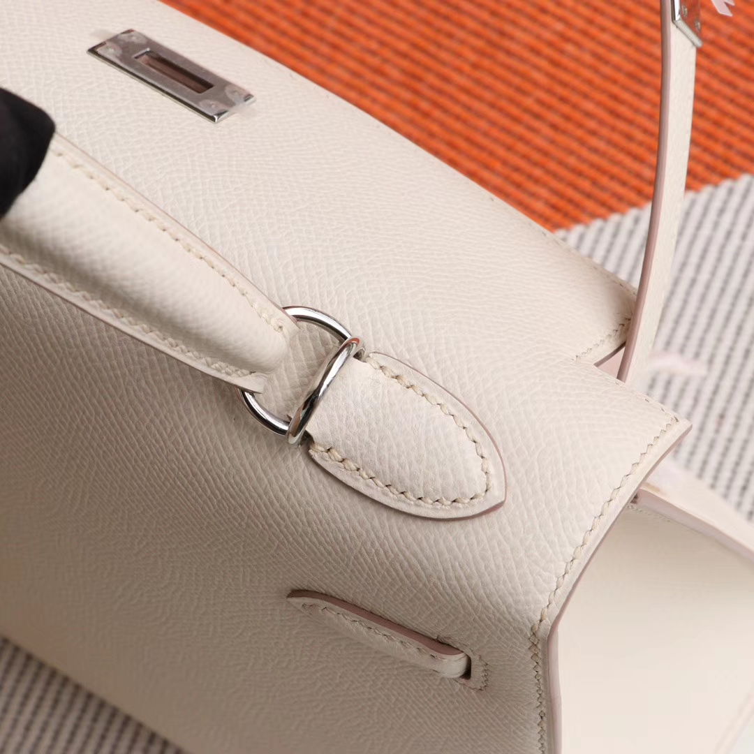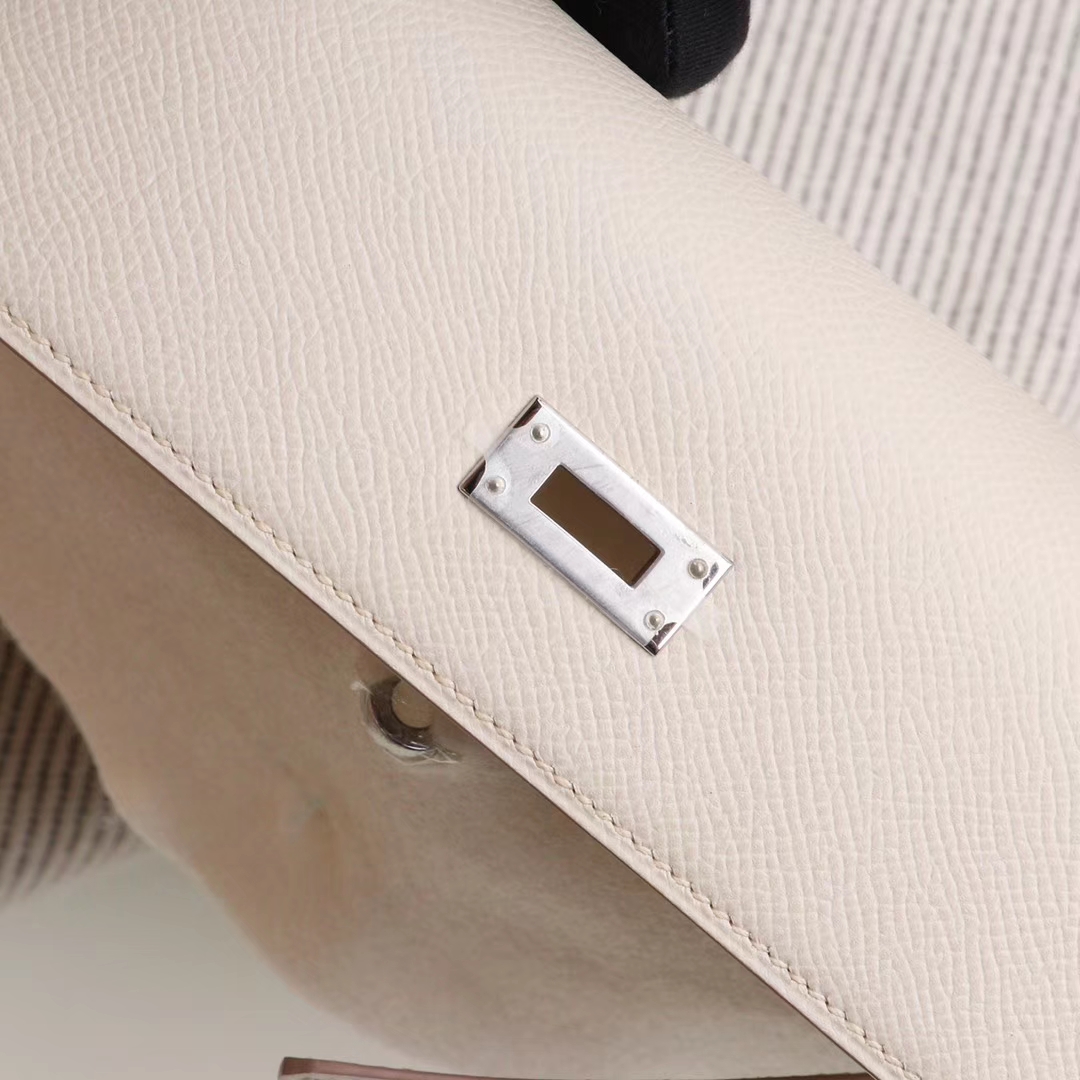 Guangzhou Baiyun Leather Goods City HERMES CC10 Milkshake White, Silver Buckle, Kelly 25CM, Original Factory Epsom Leather, Pure Hand Sewn