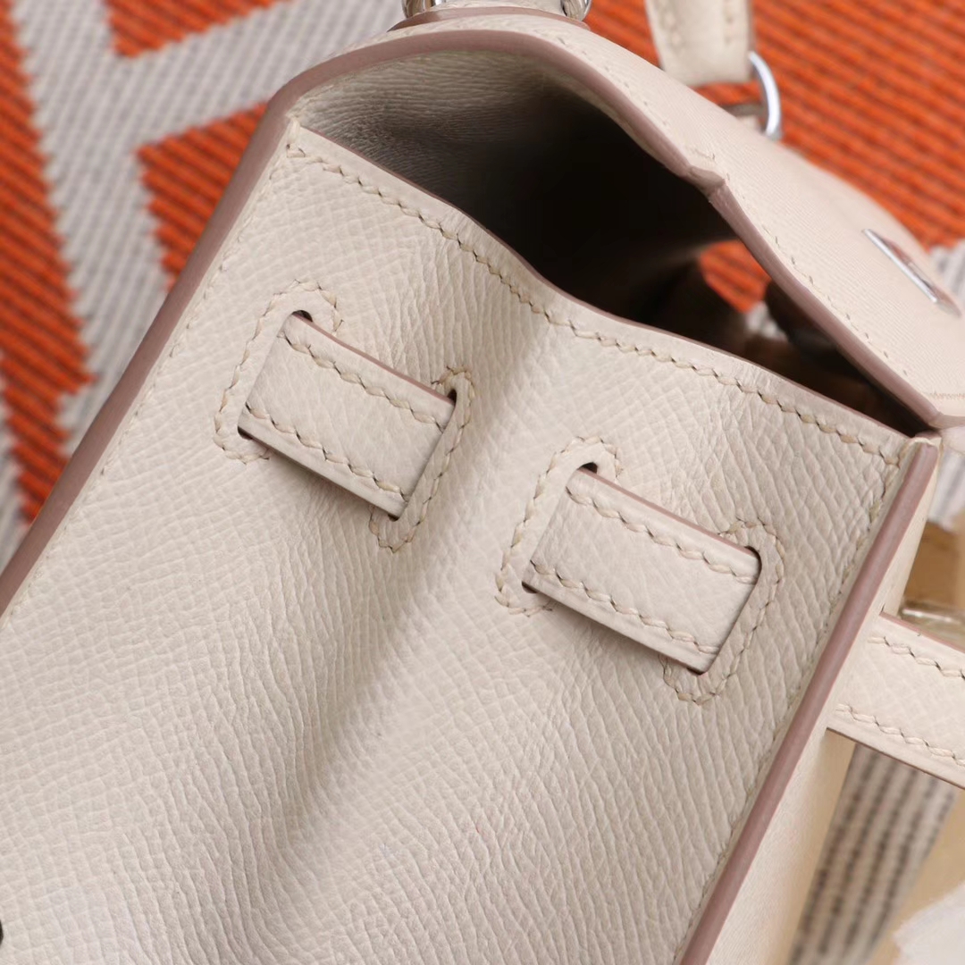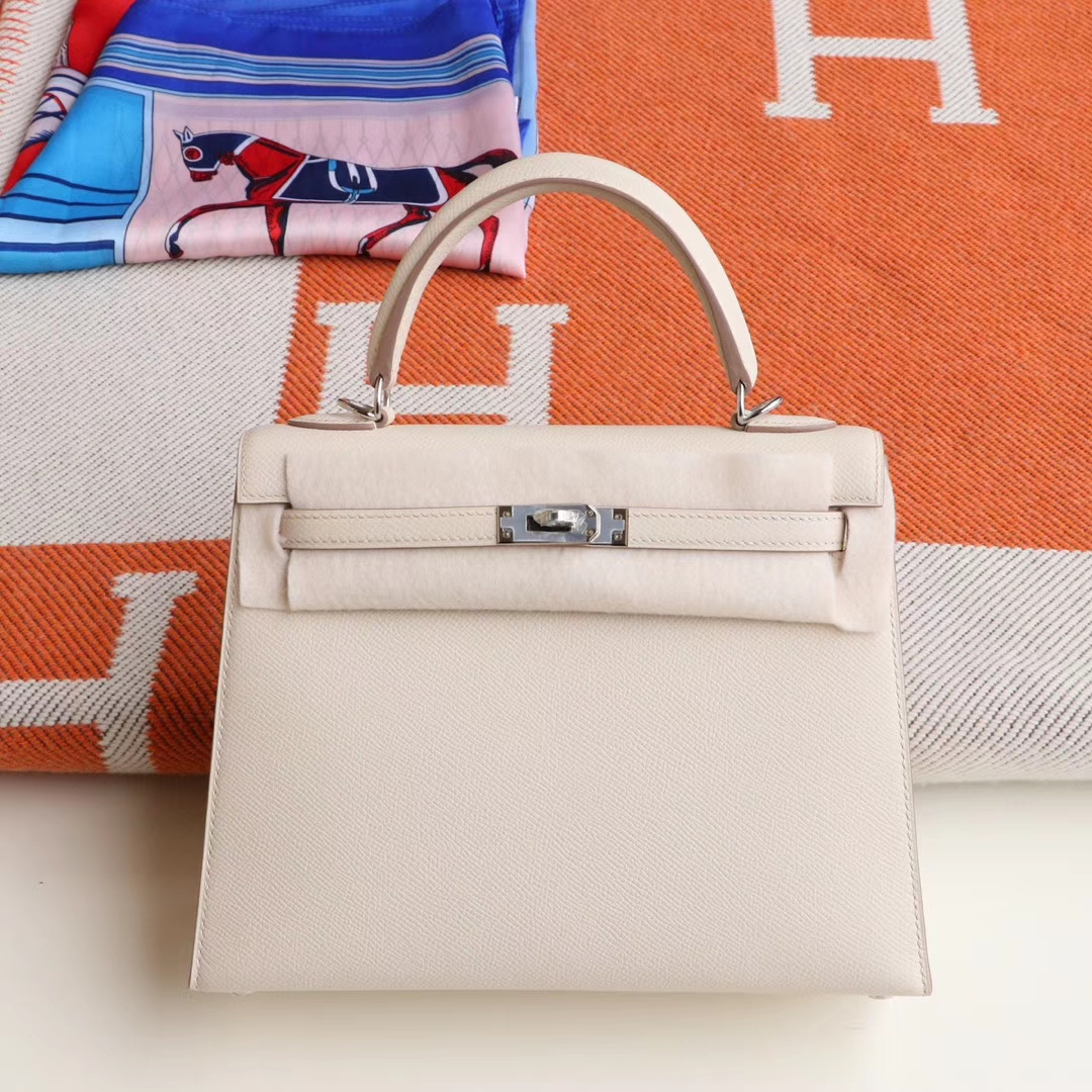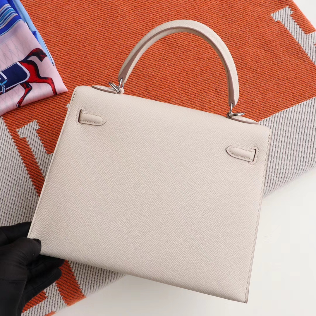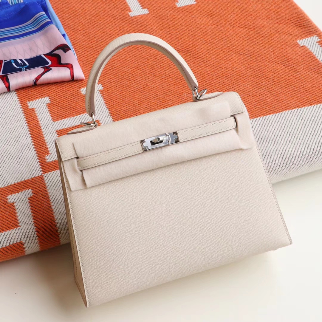 Guangzhou Baiyun Leather Goods City HERMES CC10 Milkshake White, Silver Buckle, Kelly 25CM, Original Factory Epsom Leather, Pure Hand Sewn