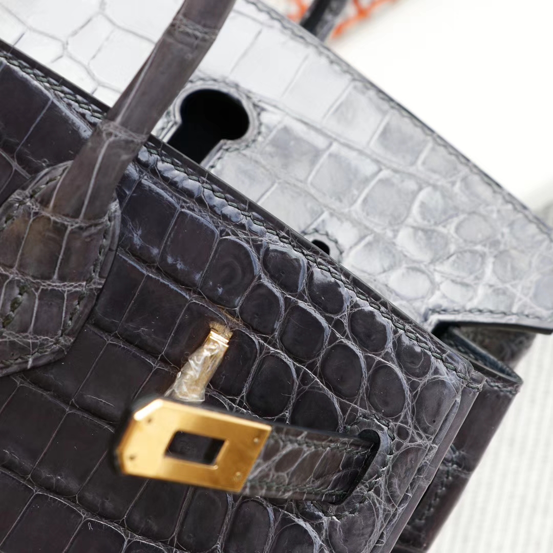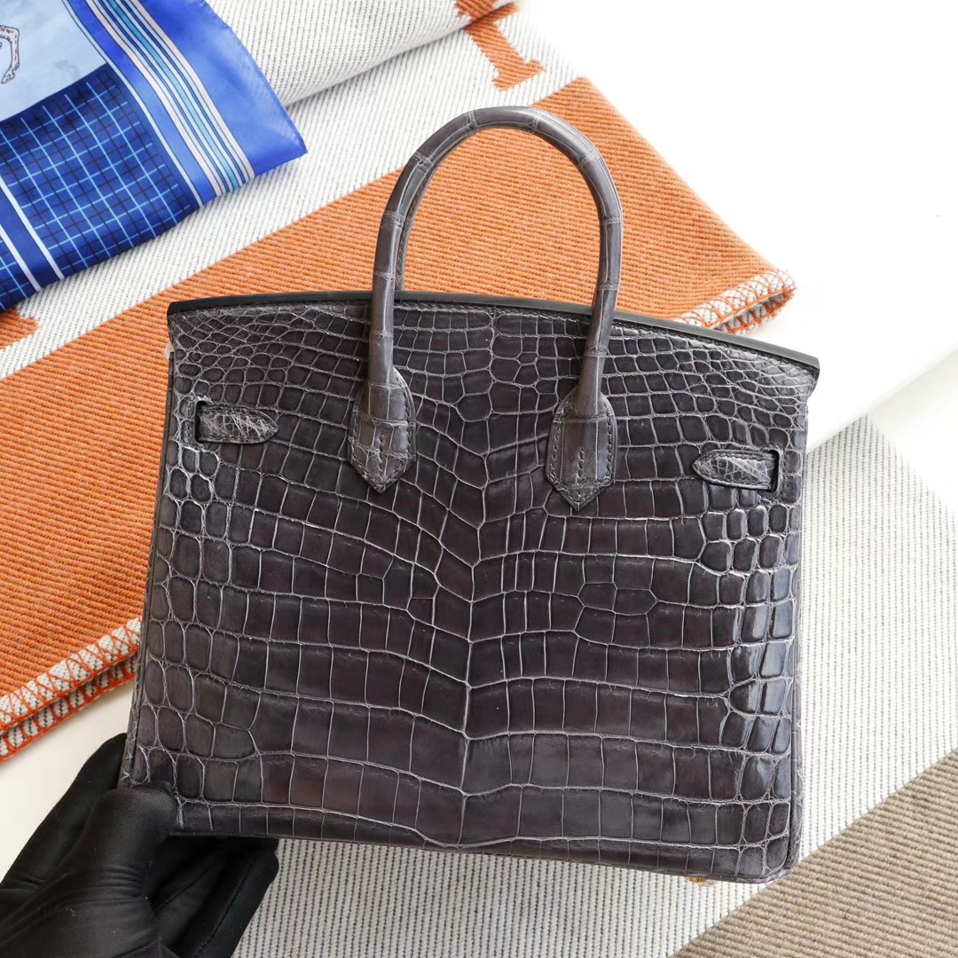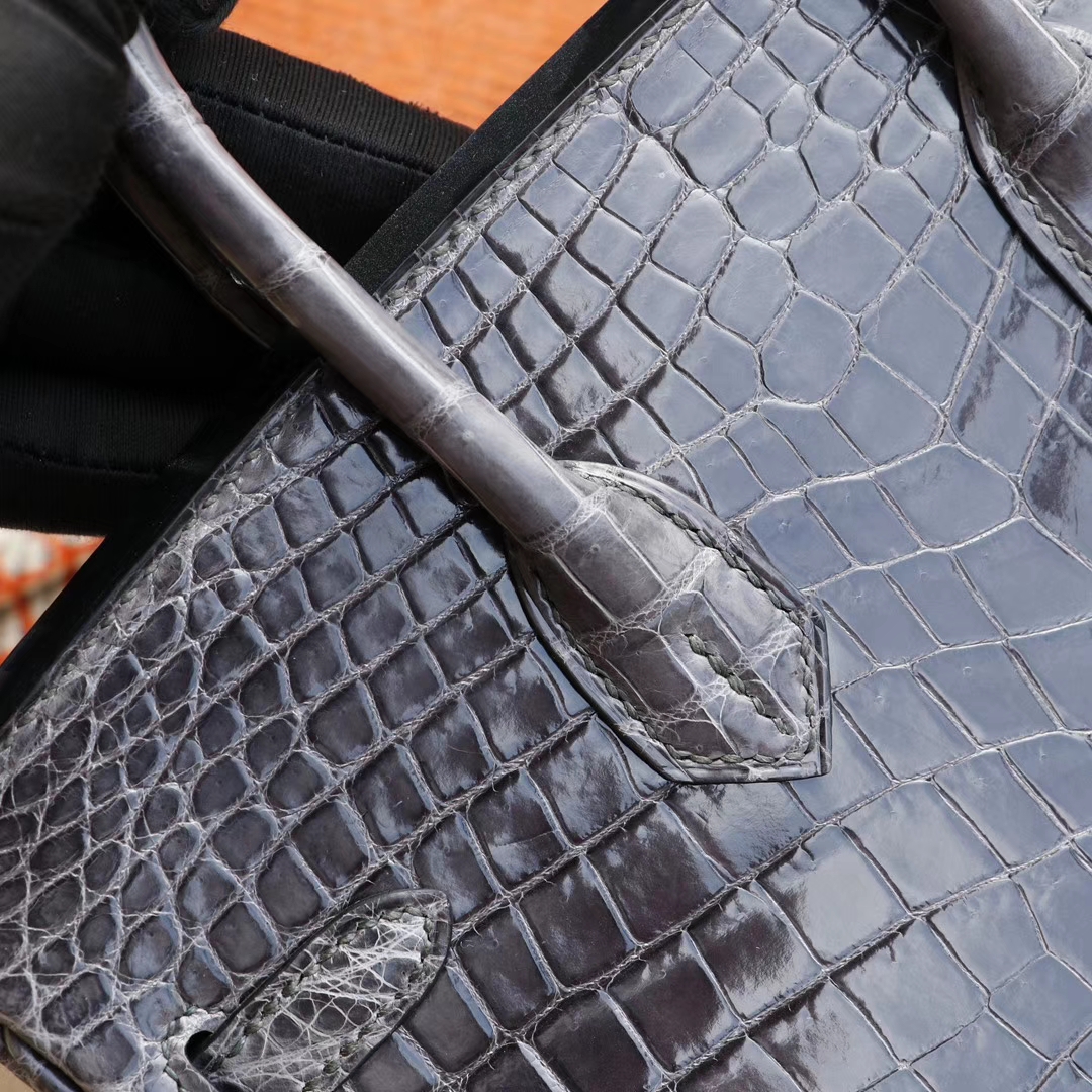 Guangzhou Baiyun Leather Goods City, Hermès Graphite Pencil Gray/Graphite Gray Birkin 25CM Platinum Bag, Glossy Crocodile, Hand-sewn Craftsmanship
