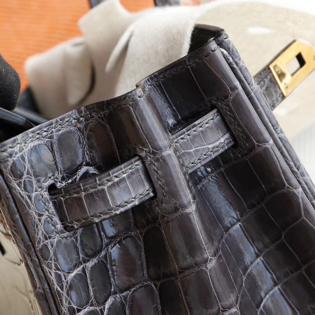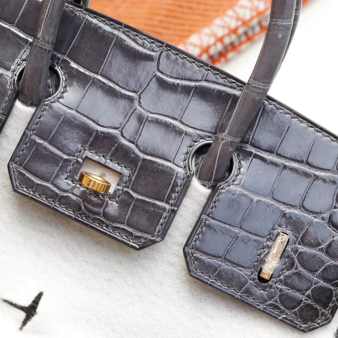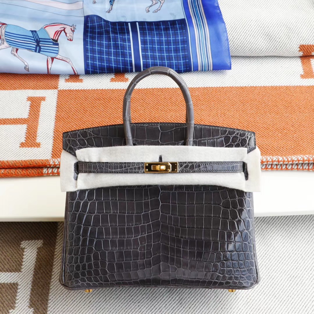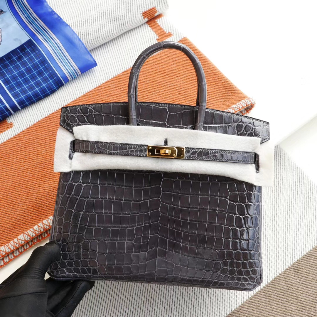 Guangzhou Baiyun Leather Goods City, Hermès Graphite Pencil Gray/Graphite Gray Birkin 25CM Platinum Bag, Glossy Crocodile, Hand-sewn Craftsmanship