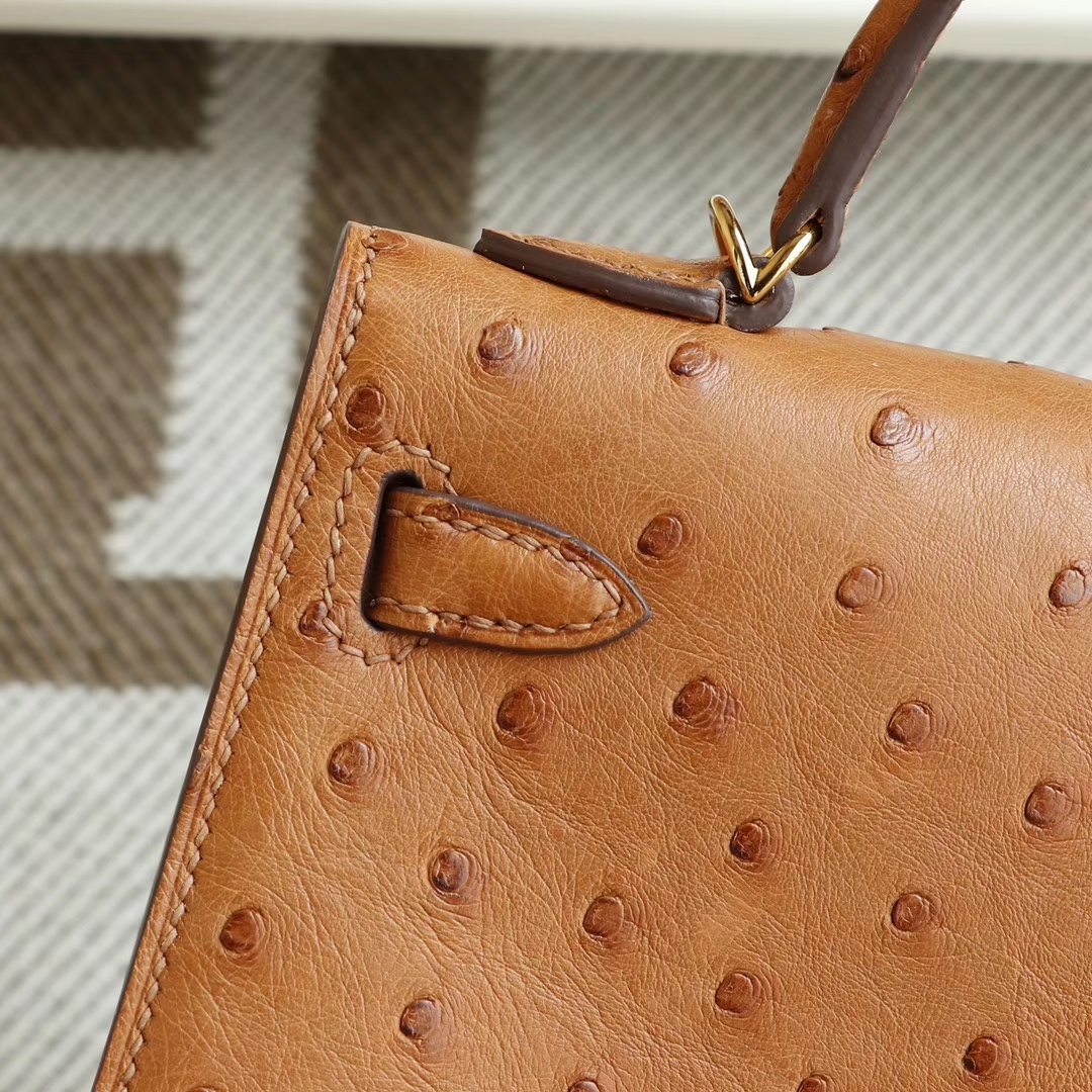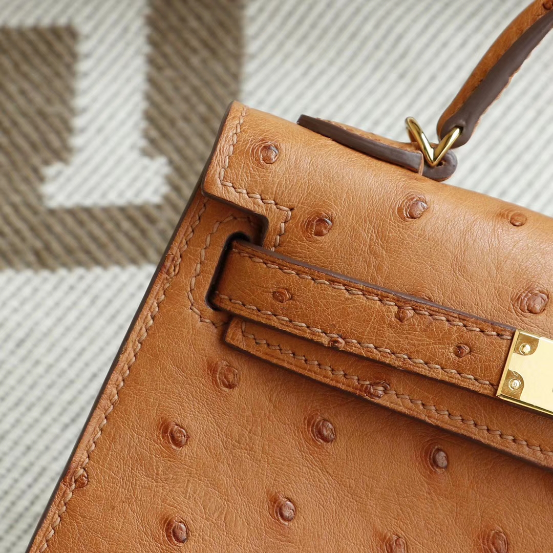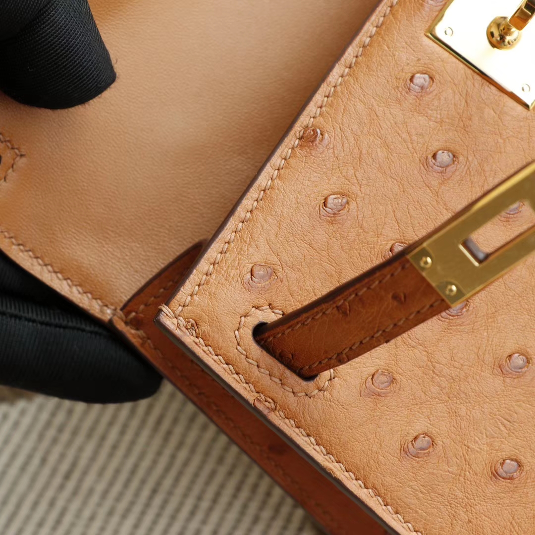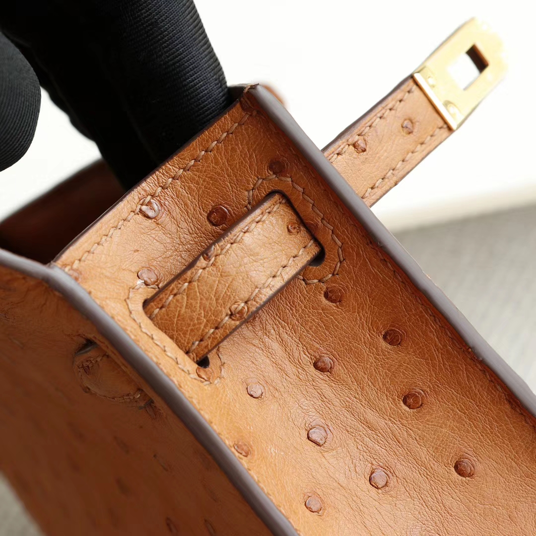 Luxury handbags in Guangzhou - HERMES Ck37 Gold Brown with Gold Hardware, Minikelly II, South African ostrich leather, wax-sewn