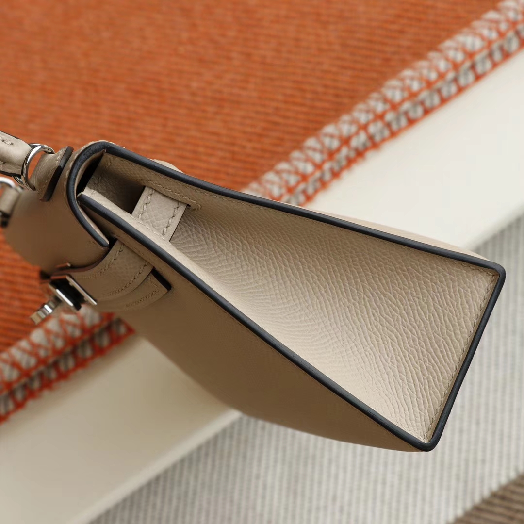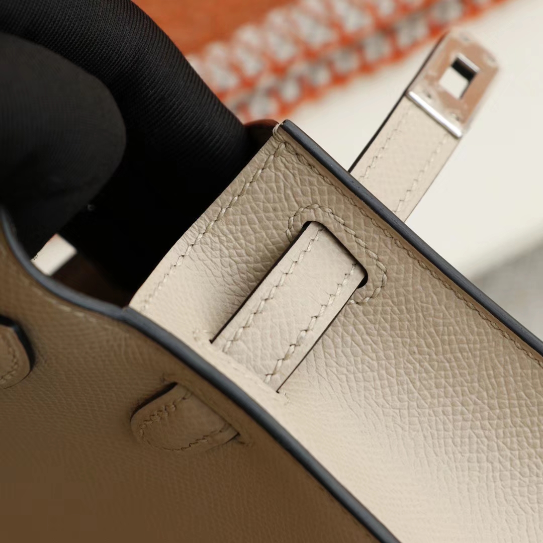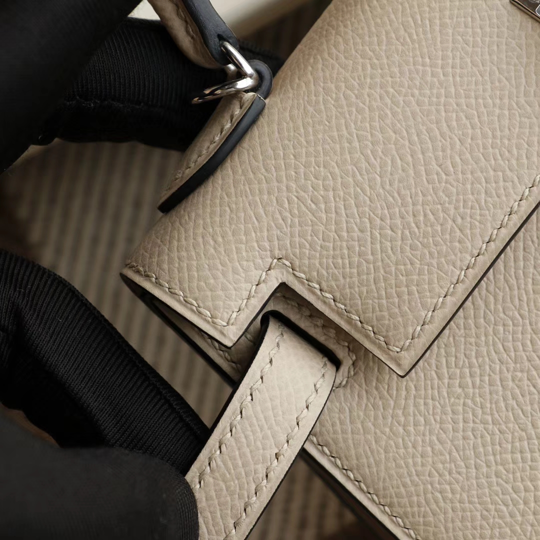 Luxury bags in Guangzhou. Hermès S2 trench coat grey with silver buckle, Mini Kelly II, original factory Epsom leather, hand - sewn craftsmanship