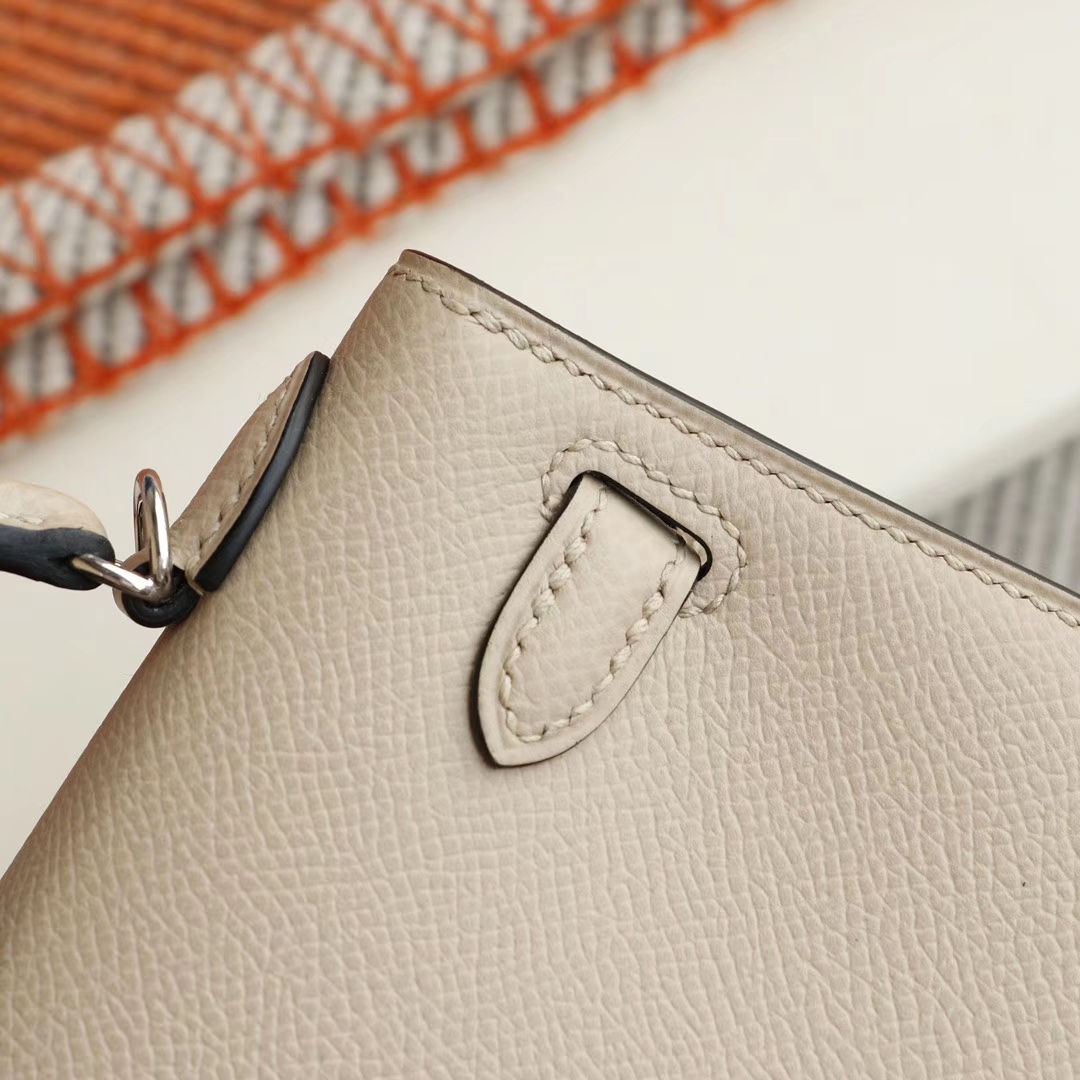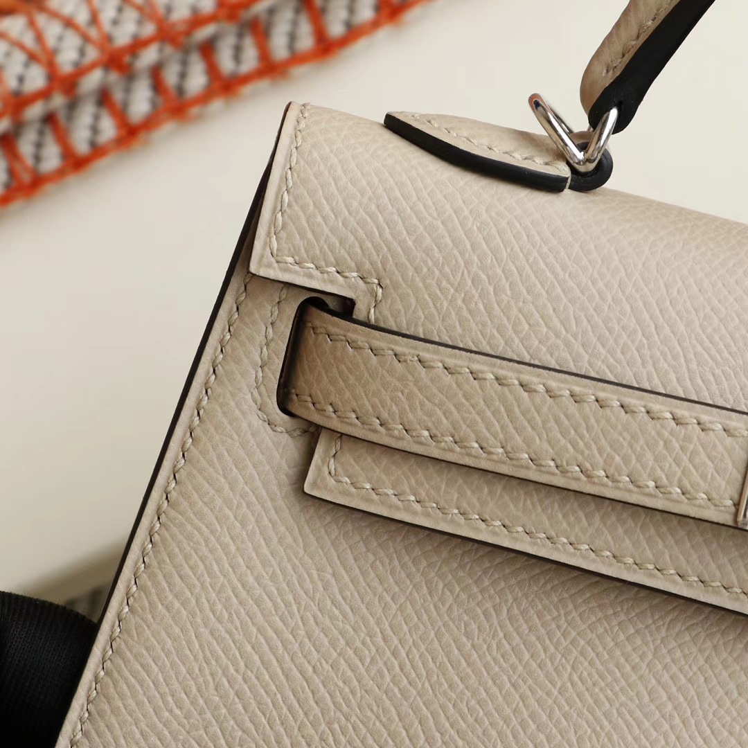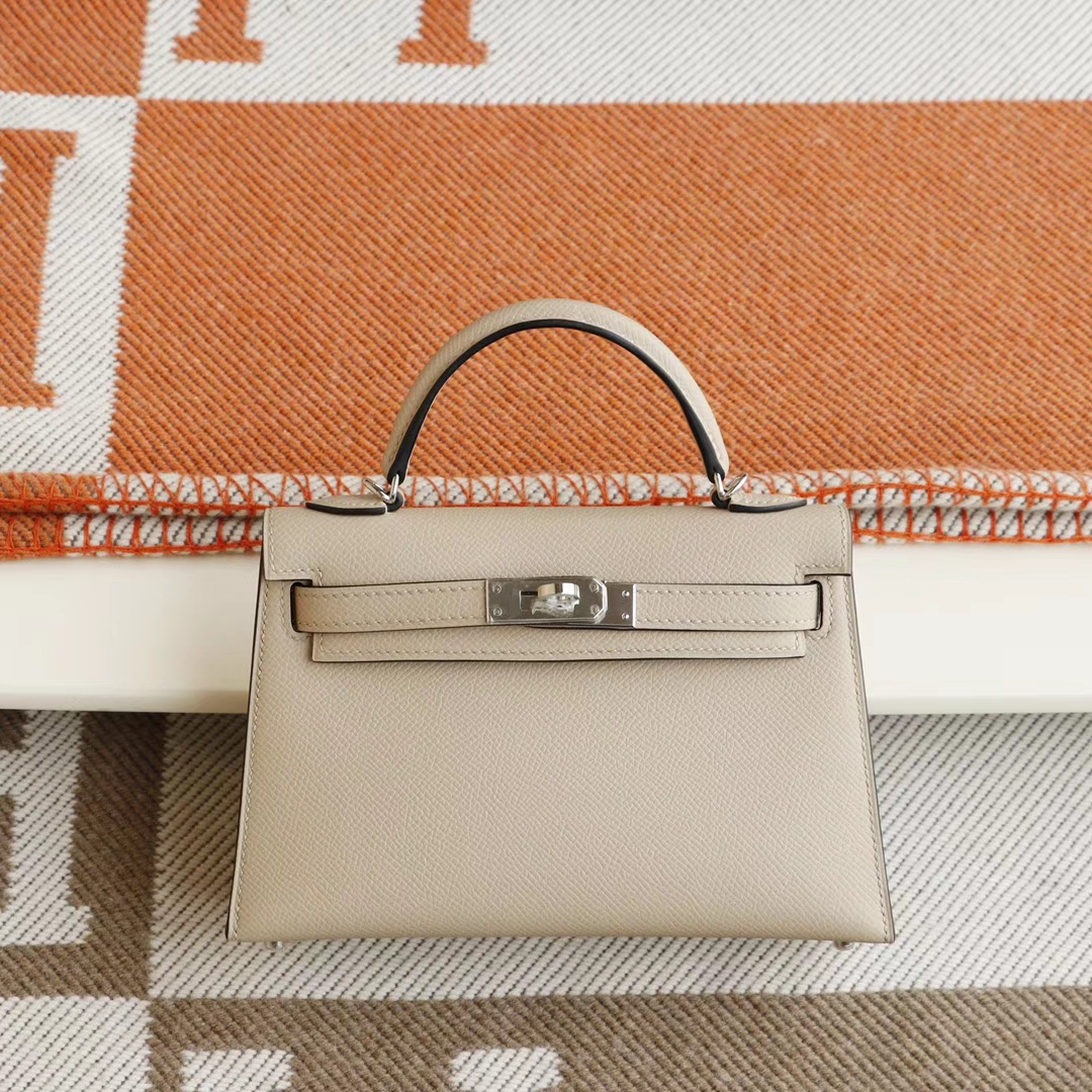 Luxury bags in Guangzhou. Hermès S2 trench coat grey with silver buckle, Mini Kelly II, original factory Epsom leather, hand - sewn craftsmanship