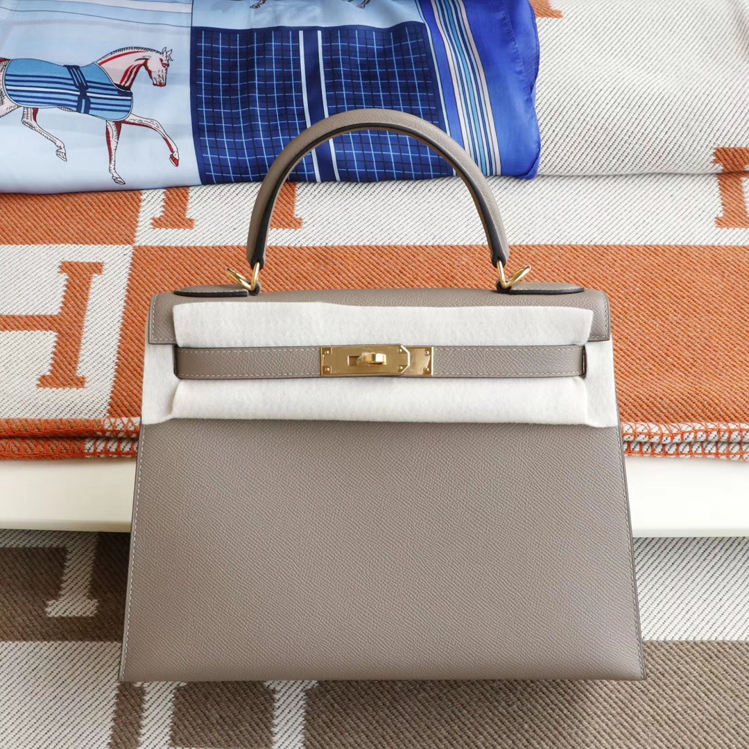 Baiyun Leather City, Hermès, asphalt ash Kelly28CM original Epsom leather, Kelly bag, hand sewing process