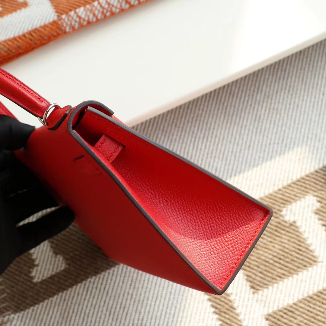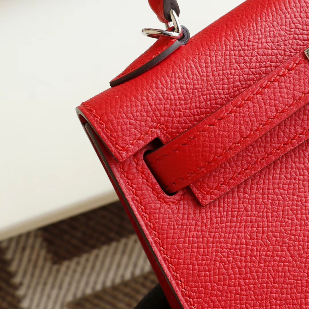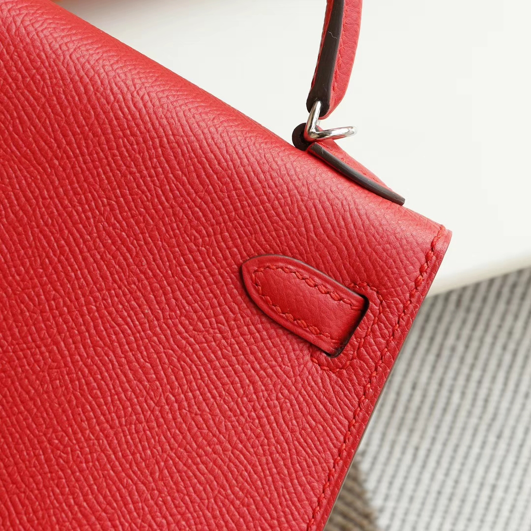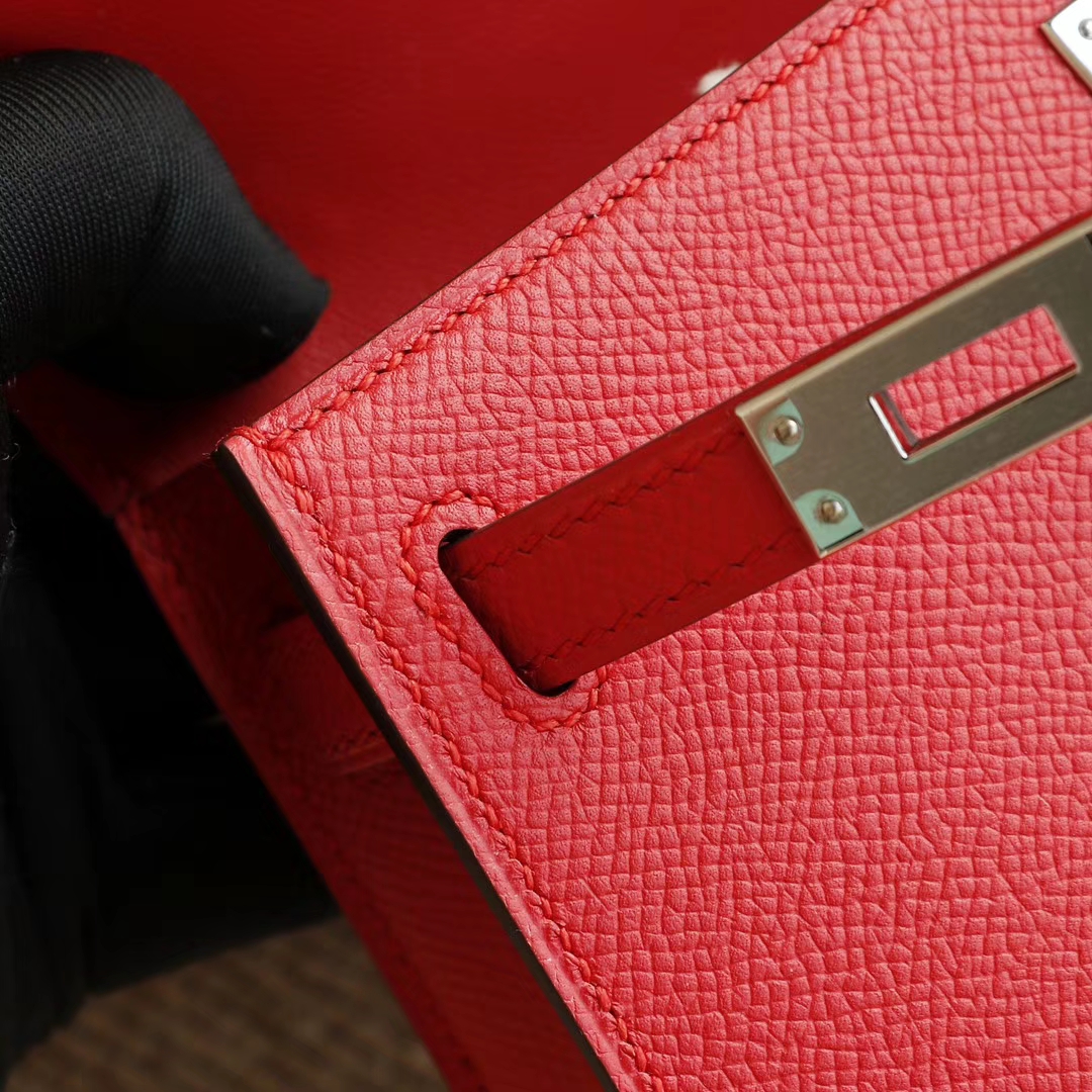 Luxury handbags in Guangzhou. Hermès S3 Rouge Coeur, silver buckle, Mini Kelly II, original factory Epsom leather, sewing craftsmanship