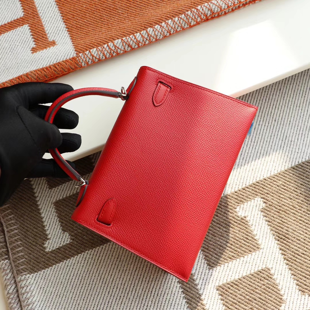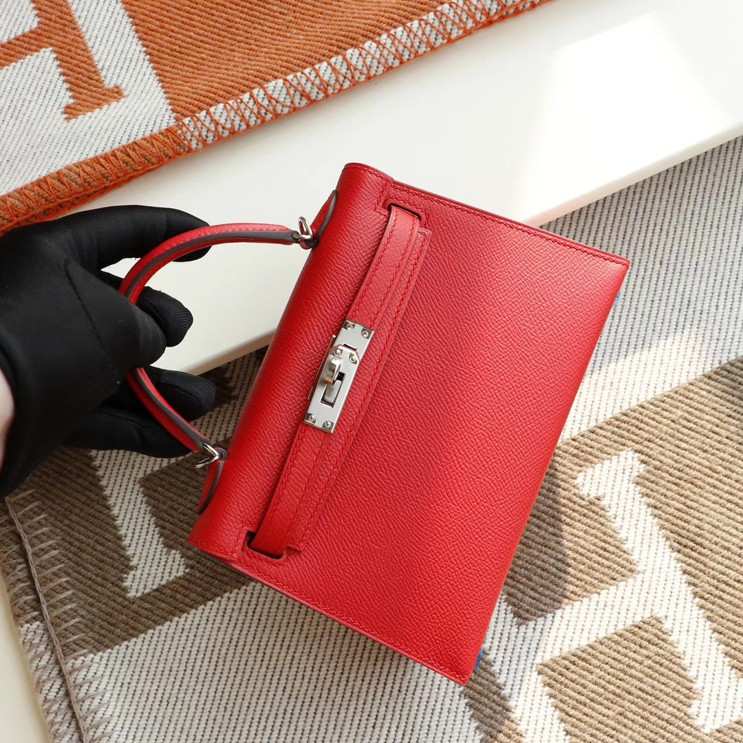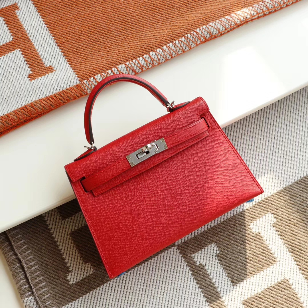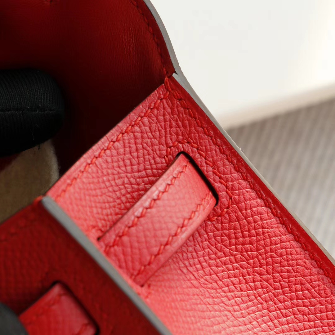 Luxury handbags in Guangzhou. Hermès S3 Rouge Coeur, silver buckle, Mini Kelly II, original factory Epsom leather, sewing craftsmanship