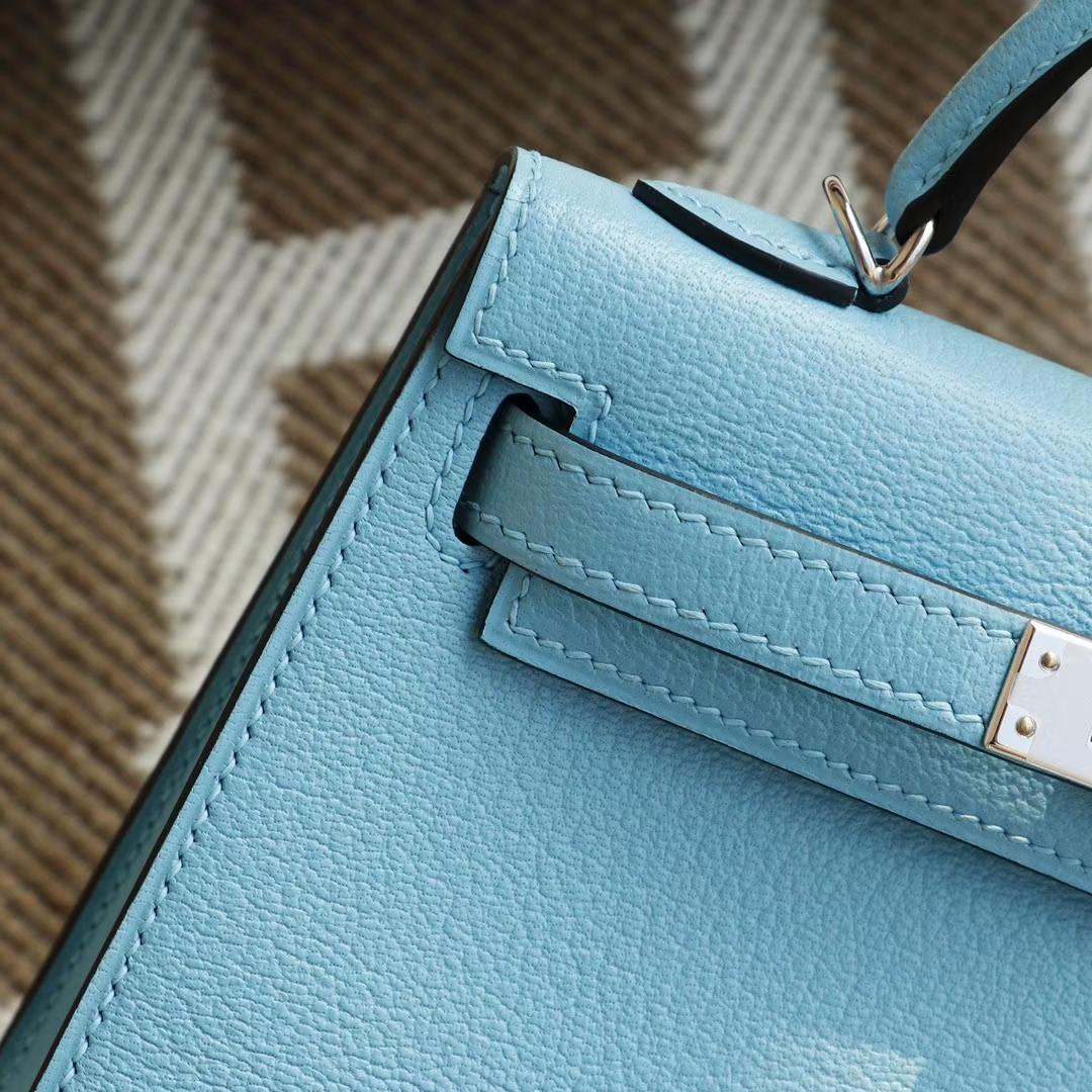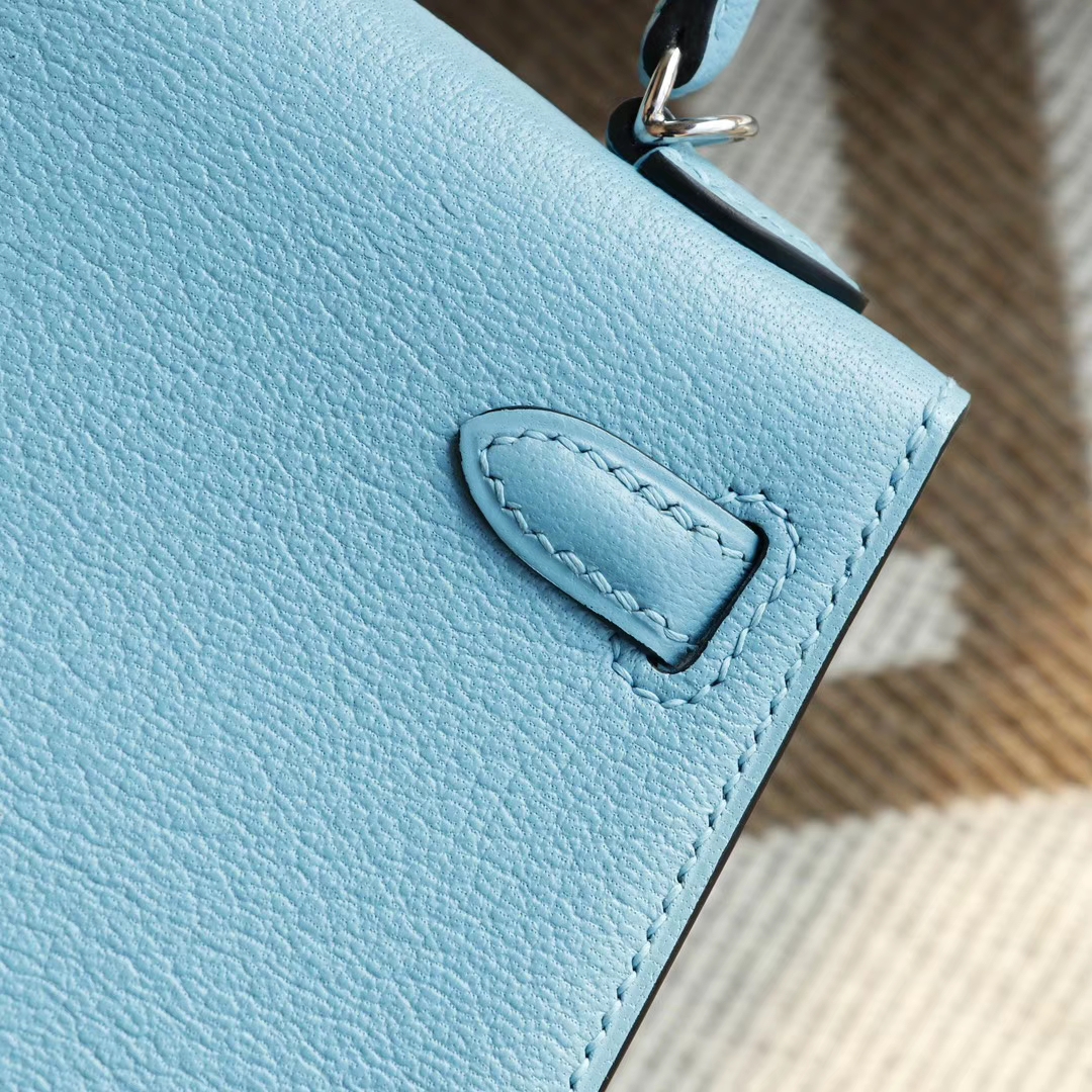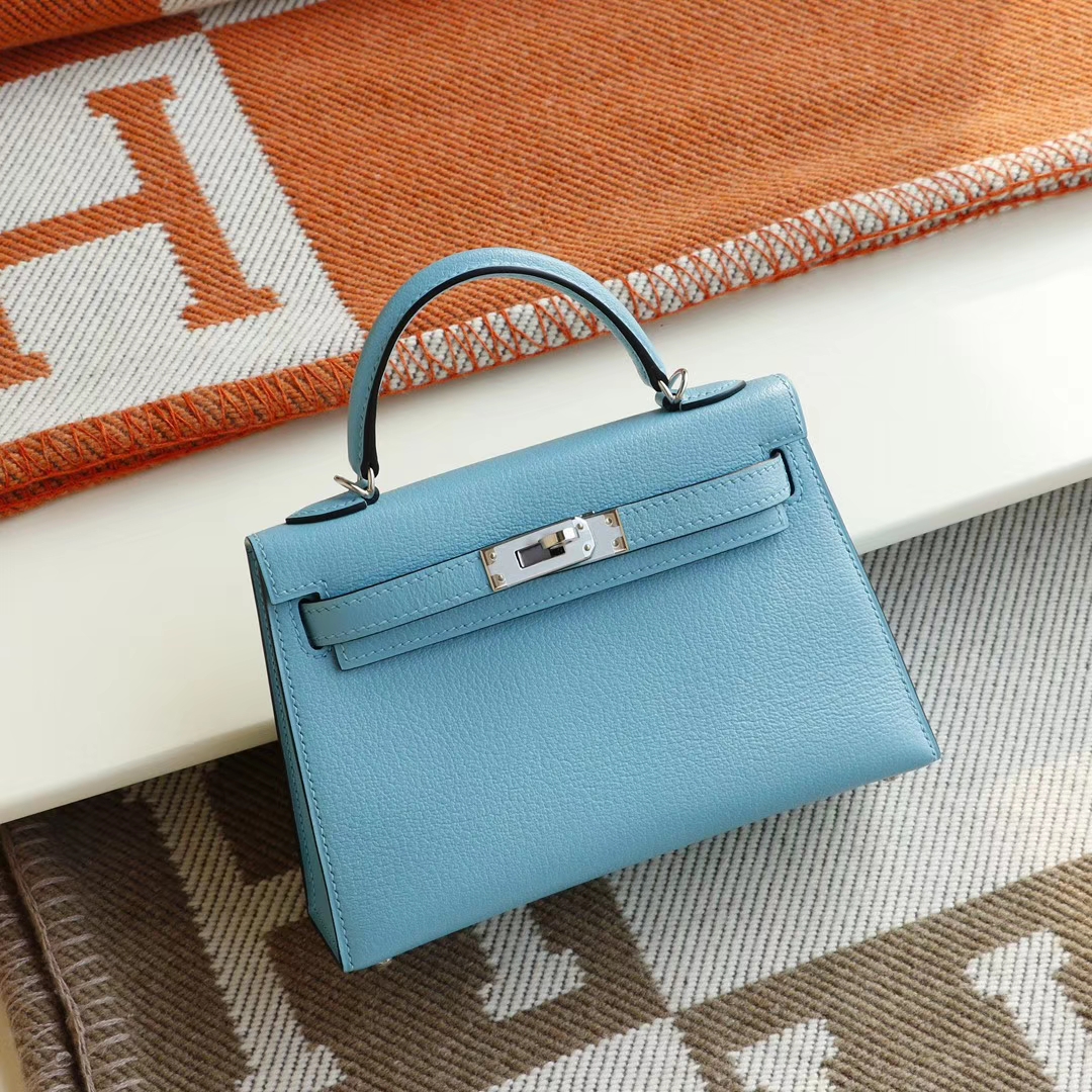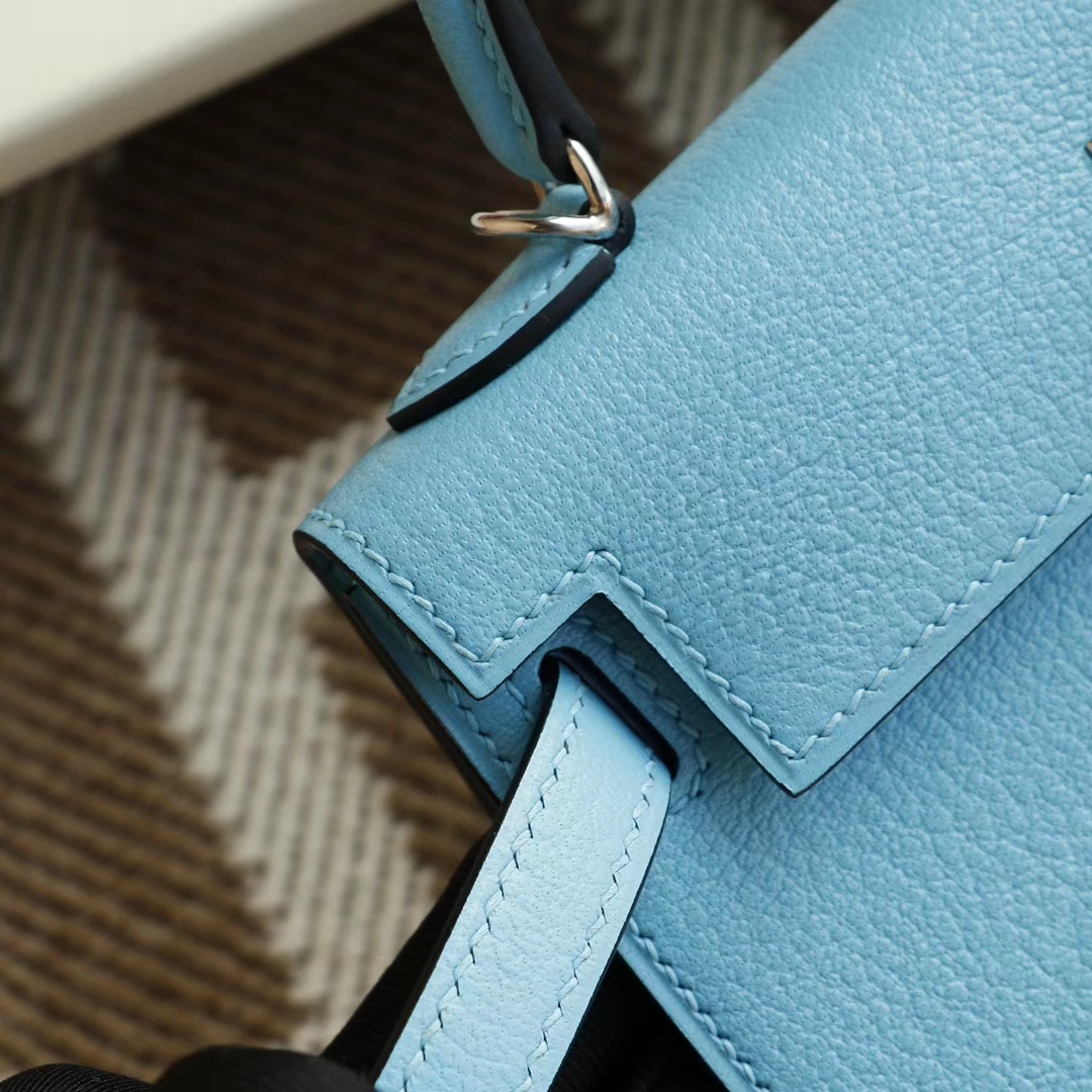 Guangzhou bags HERMES P3 Northern Blue Silver buckle Minikelly II Original factory goat leather Mini Kelly bag Purely hand-sewn