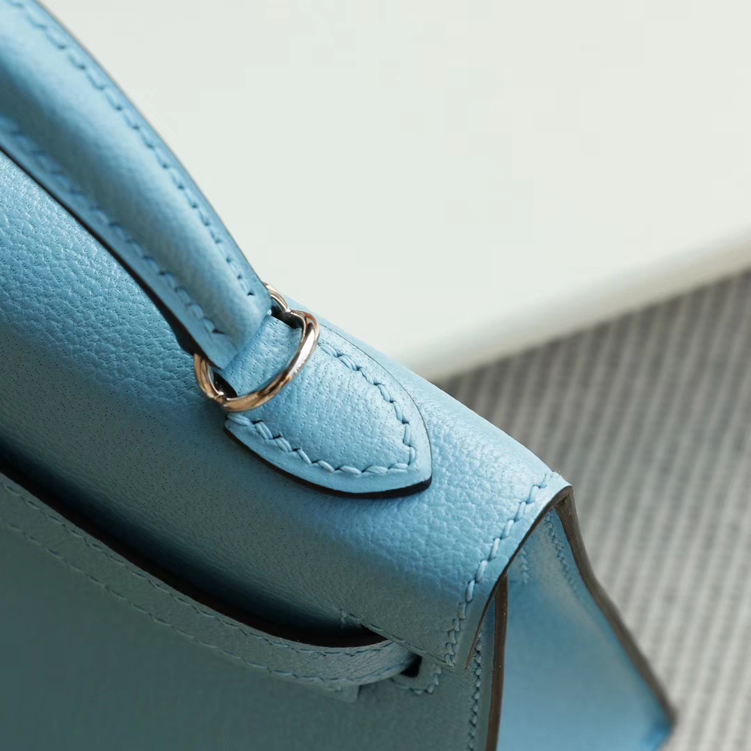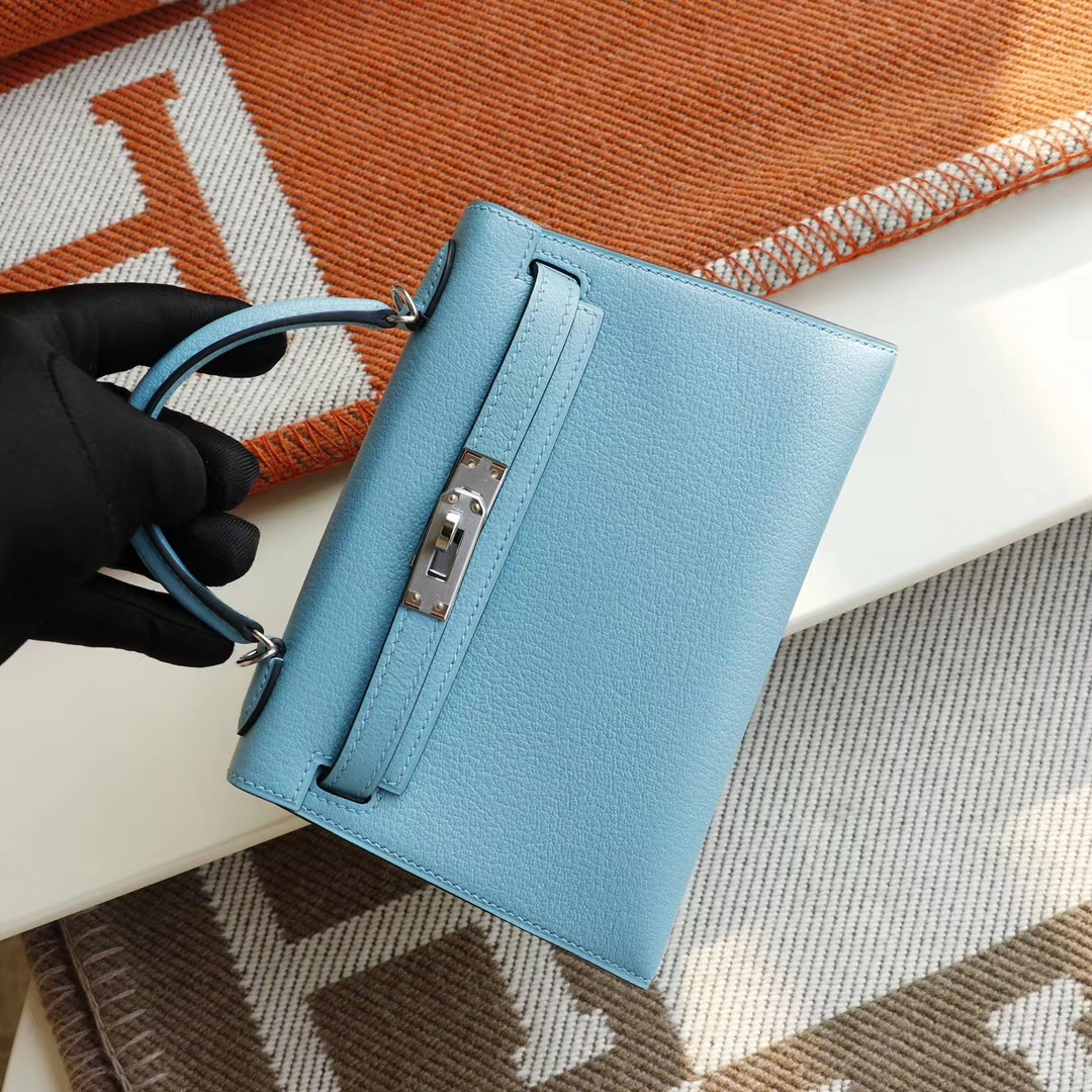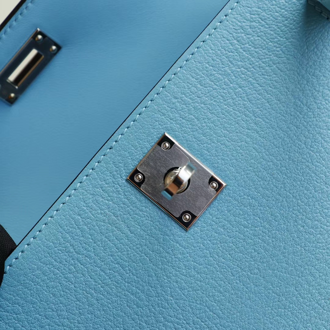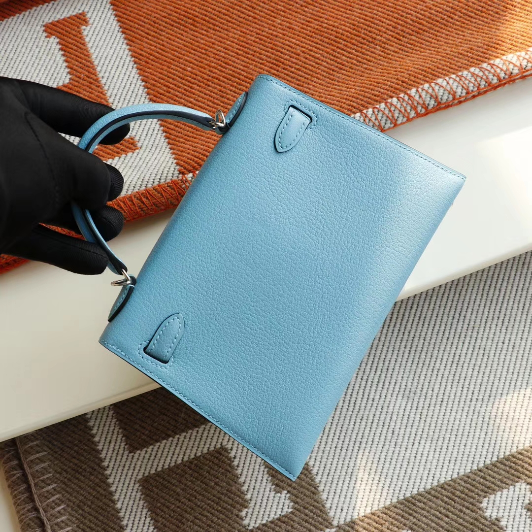 Guangzhou bags HERMES P3 Northern Blue Silver buckle Minikelly II Original factory goat leather Mini Kelly bag Purely hand-sewn
